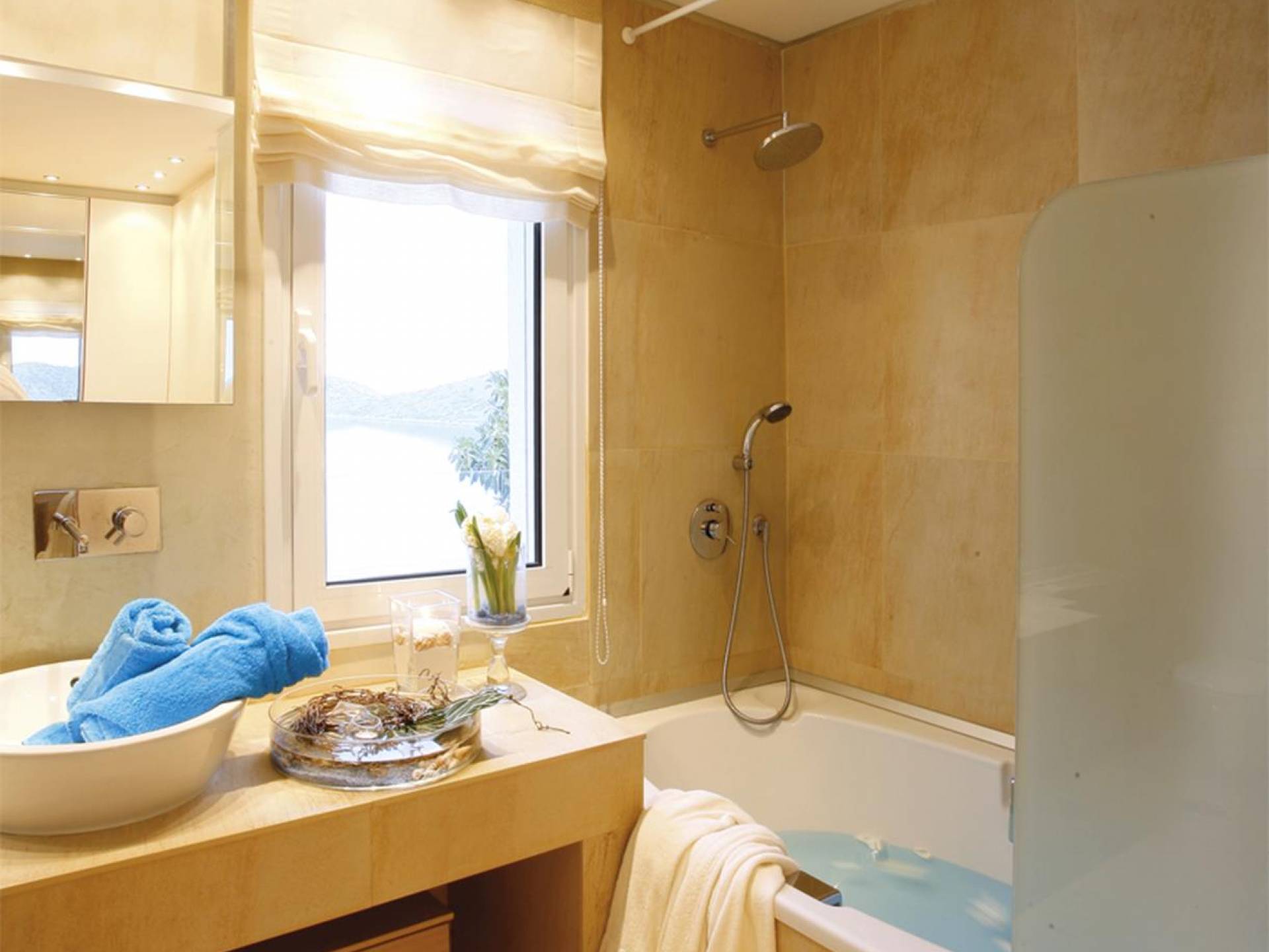 Ένας μεγάλος ενιαίος χώρος με τραπεζαρία και καθιστικό κυριαρχεί σε αυτόν τον όροφο, διακοσμημένο με γήινες αποχρώσεις και πολυτελή έπιπλα από ακριβά ξύλινα υλικά. Η απεριόριστη θέα προς τη θάλασσα και τη νησίδα Σπιναλόγκα δεν έχει καμία σχέση σε όλους τους χώρους, ακόμη και στο υπέροχο υπνοδωμάτιο που βρίσκεται εδώ. Ένα κρεβάτι king size και ένα μεγάλο, μοντέρνο μπάνιο με μπανιέρα είναι στη διάθεση των επισκεπτών. Ένα δεύτερο WC βρίσκεται επίσης σε αυτόν τον όροφο. Η μεγάλη βεράντα του είναι προσβάσιμη τόσο από το κυρίως υπνοδωμάτιο όσο και από το καθιστικό.