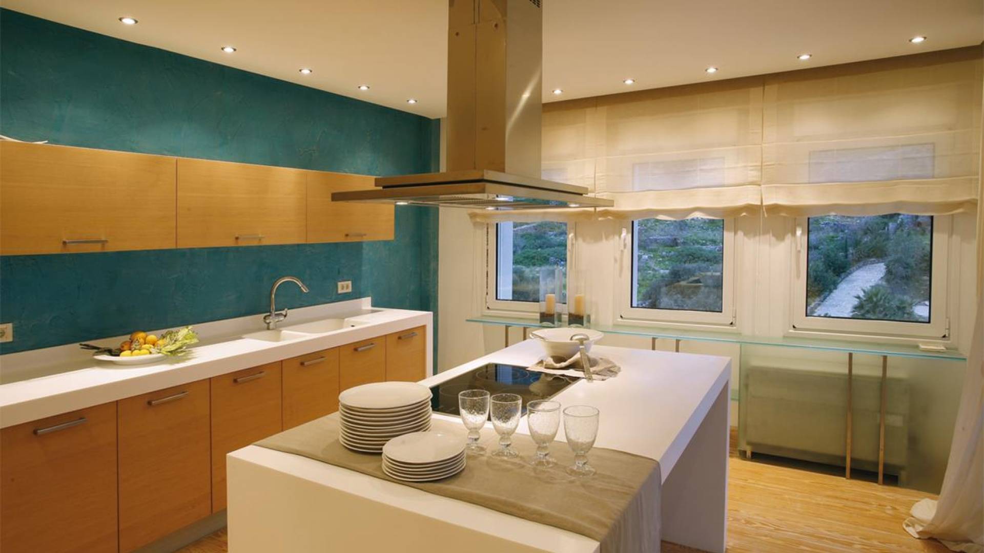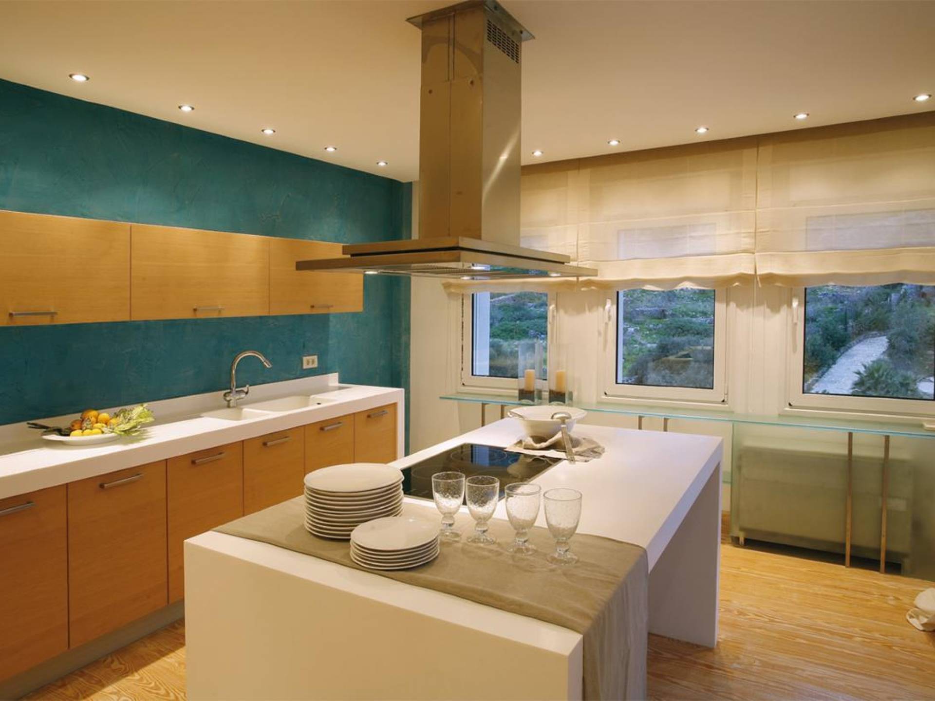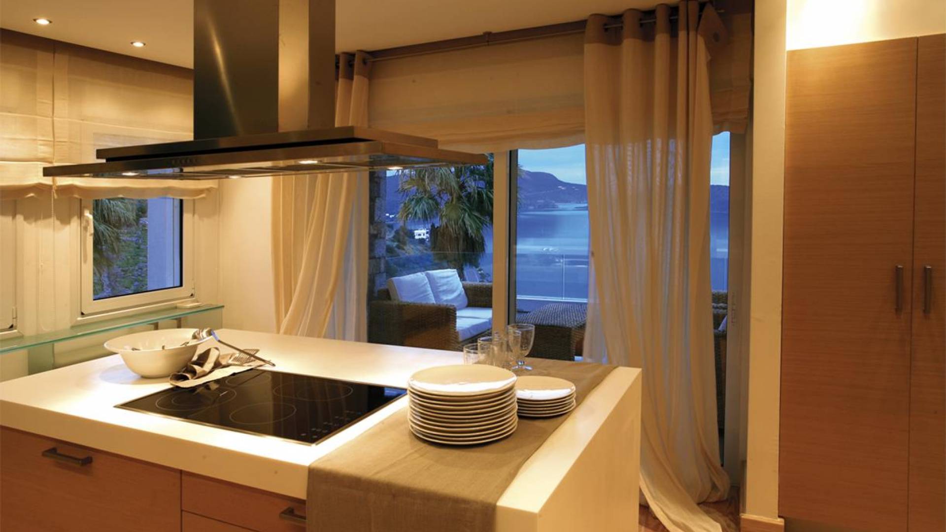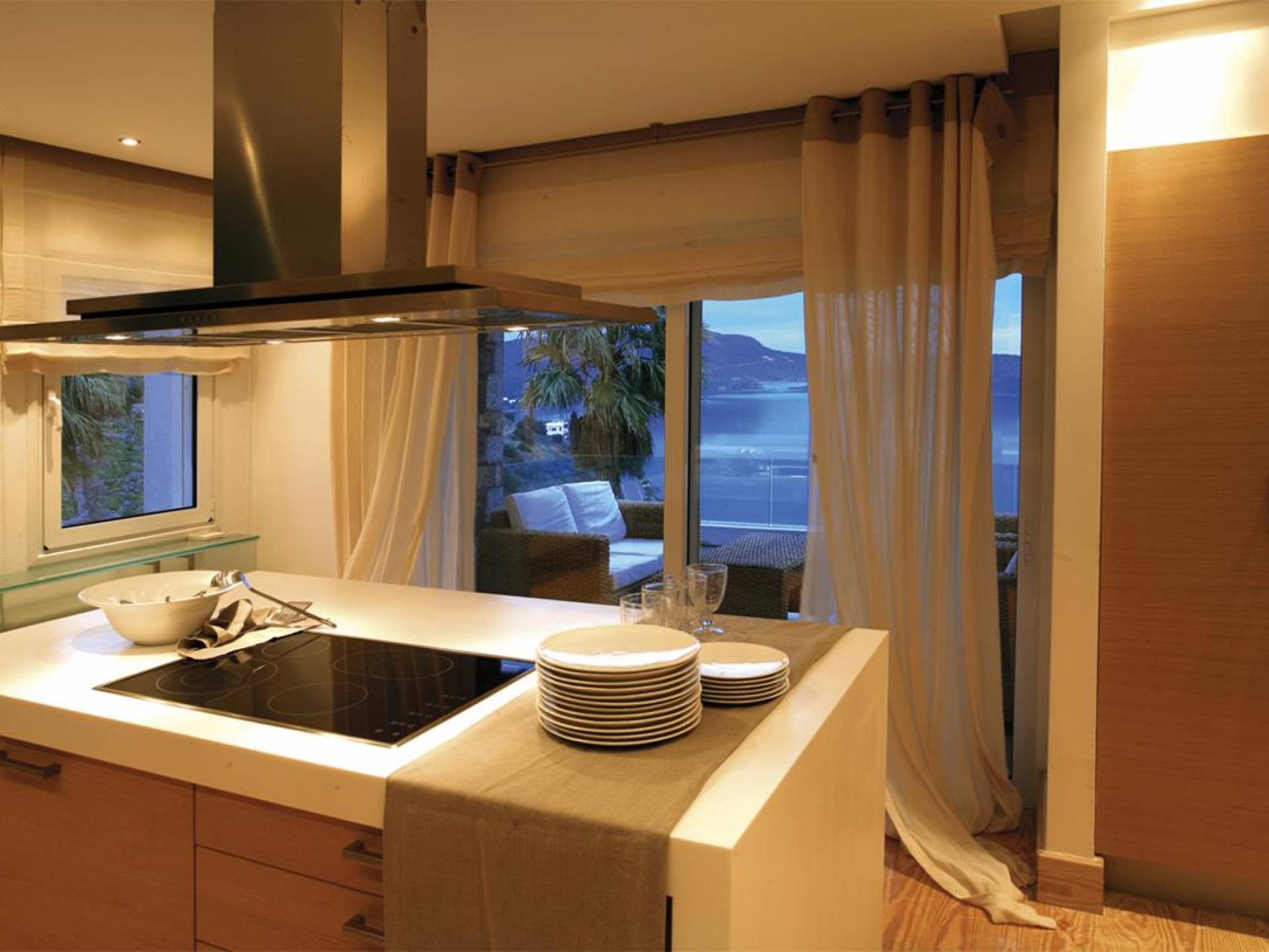 Ανεβαίνοντας μια σκάλα στον πρώτο όροφο της Villa Marina, η πολυτέλεια ανεβαίνει ένα επίπεδο. Η μεγάλη κουζίνα βρίσκεται εδώ που προσφέρει τη δική της βεράντα με τραπέζι φαγητού για όσους θέλουν να απολαύσουν το γεύμα τους σε εξωτερικούς χώρους, κάτω από τα χρώματα του ηλιοβασιλέματος με φόντο την υπέροχη θέα στον κόλπο της Ελούντας. Η κουζίνα είναι πλήρως εξοπλισμένη και προσφέρει μεταξύ άλλων φούρνο μικροκυμάτων, πλυντήριο πιάτων και όλες τις απαραίτητες συσκευές.