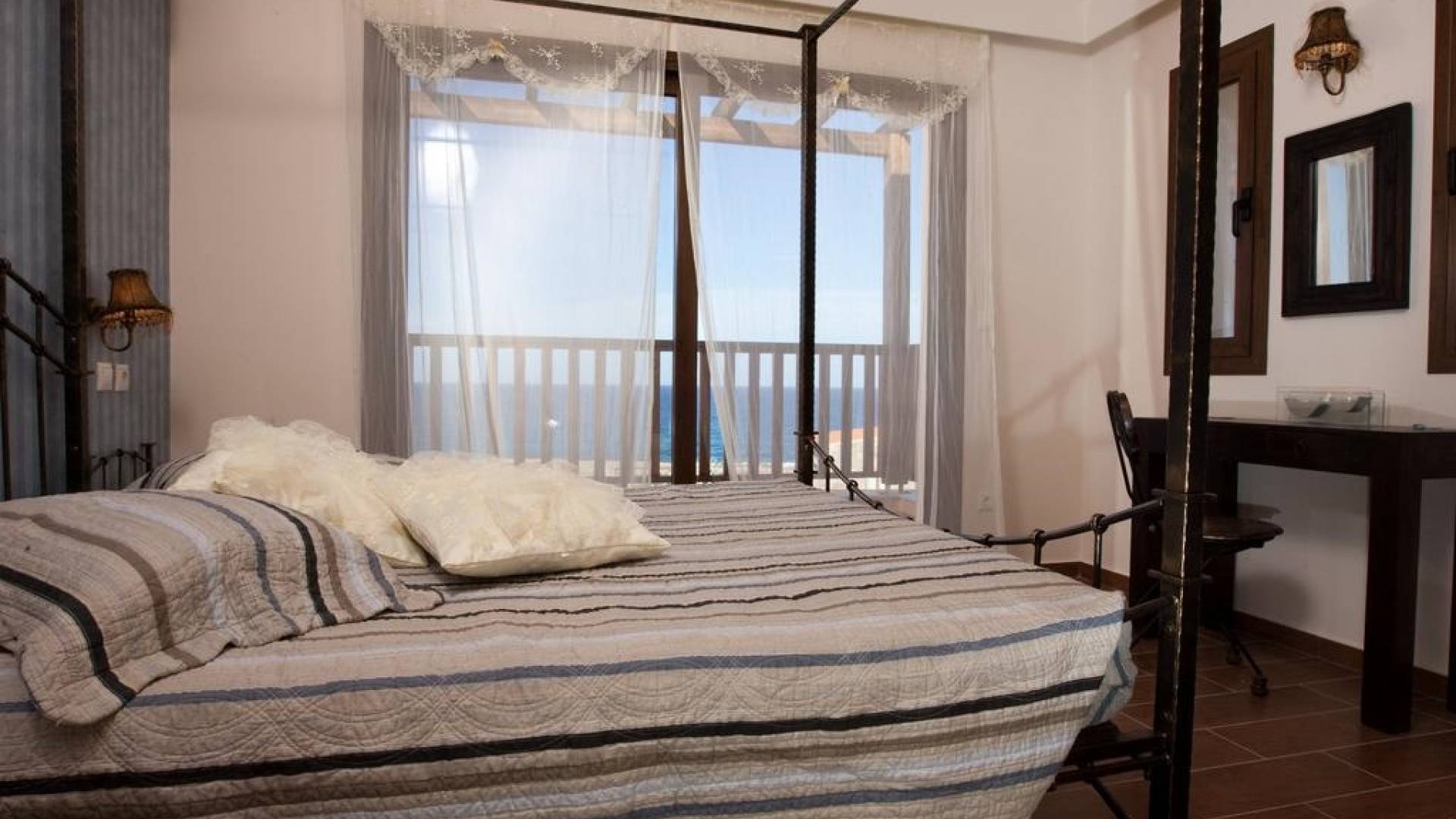 Ο επάνω όροφος έχει ένα κύριο υπνοδωμάτιο με διπλό κρεβάτι με ιδιωτικό μπάνιο, ένα δίκλινο δωμάτιο με 2 μονά κρεβάτια και ένα δίκλινο δωμάτιο και ένα ξεχωριστό μπάνιο. Σε κάθε βίλα μπορούν να φιλοξενηθούν έως 6 άτομα – παιδικά κρεβάτια/κούνια κατόπιν αιτήματος.