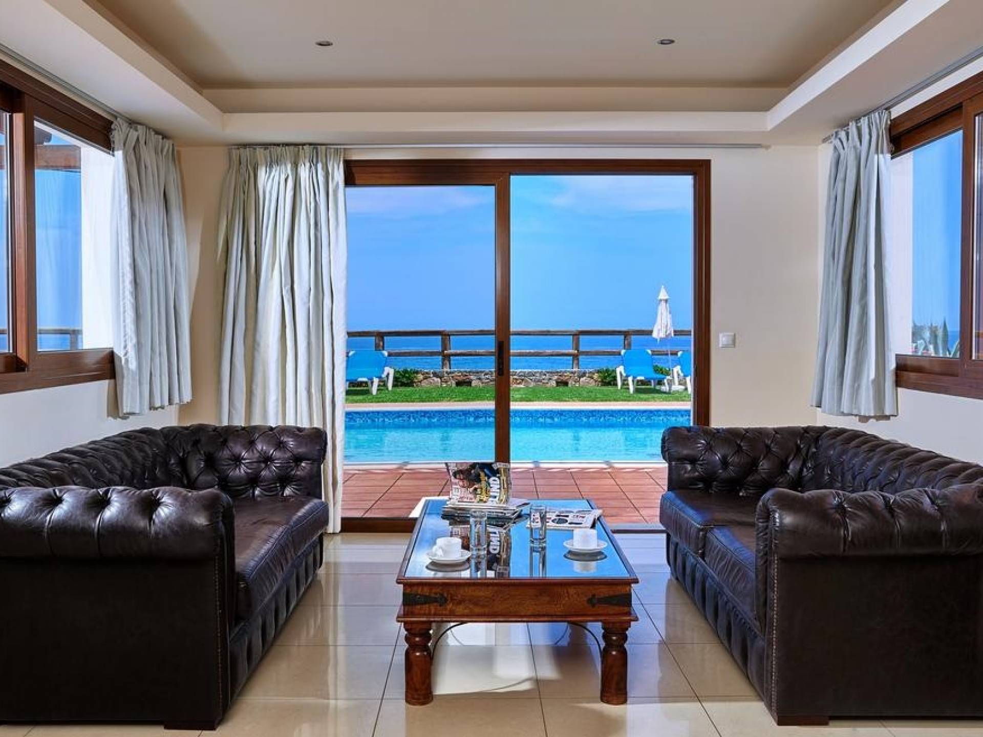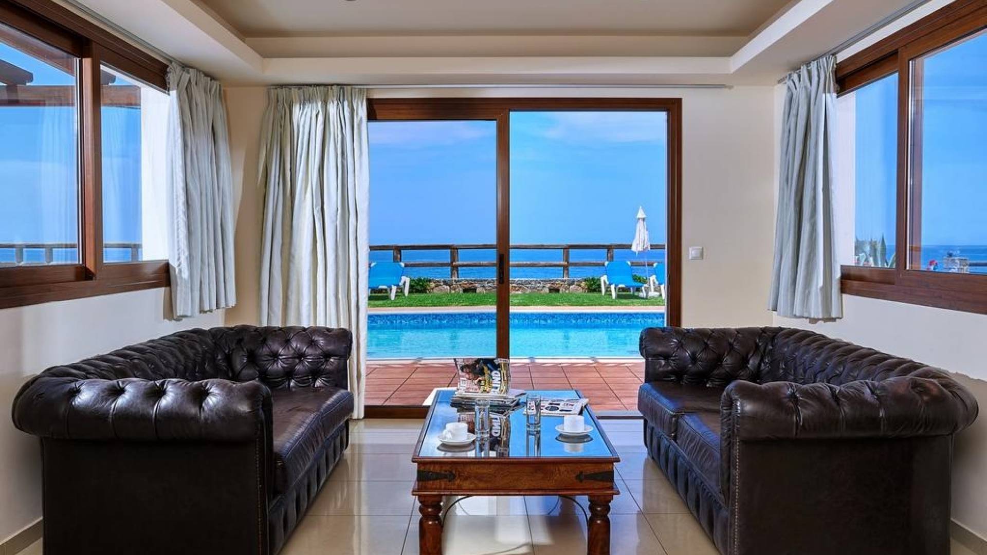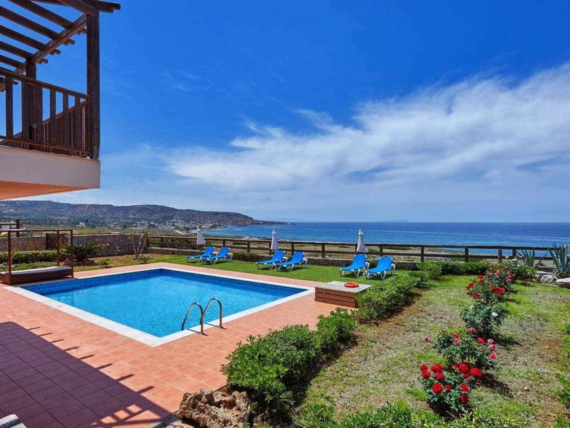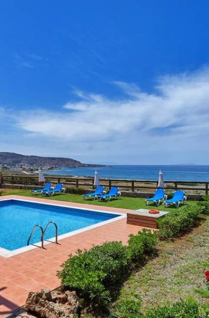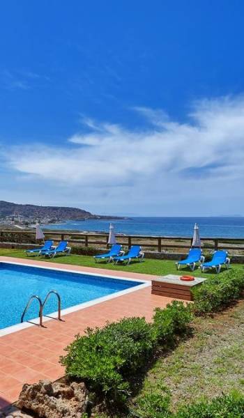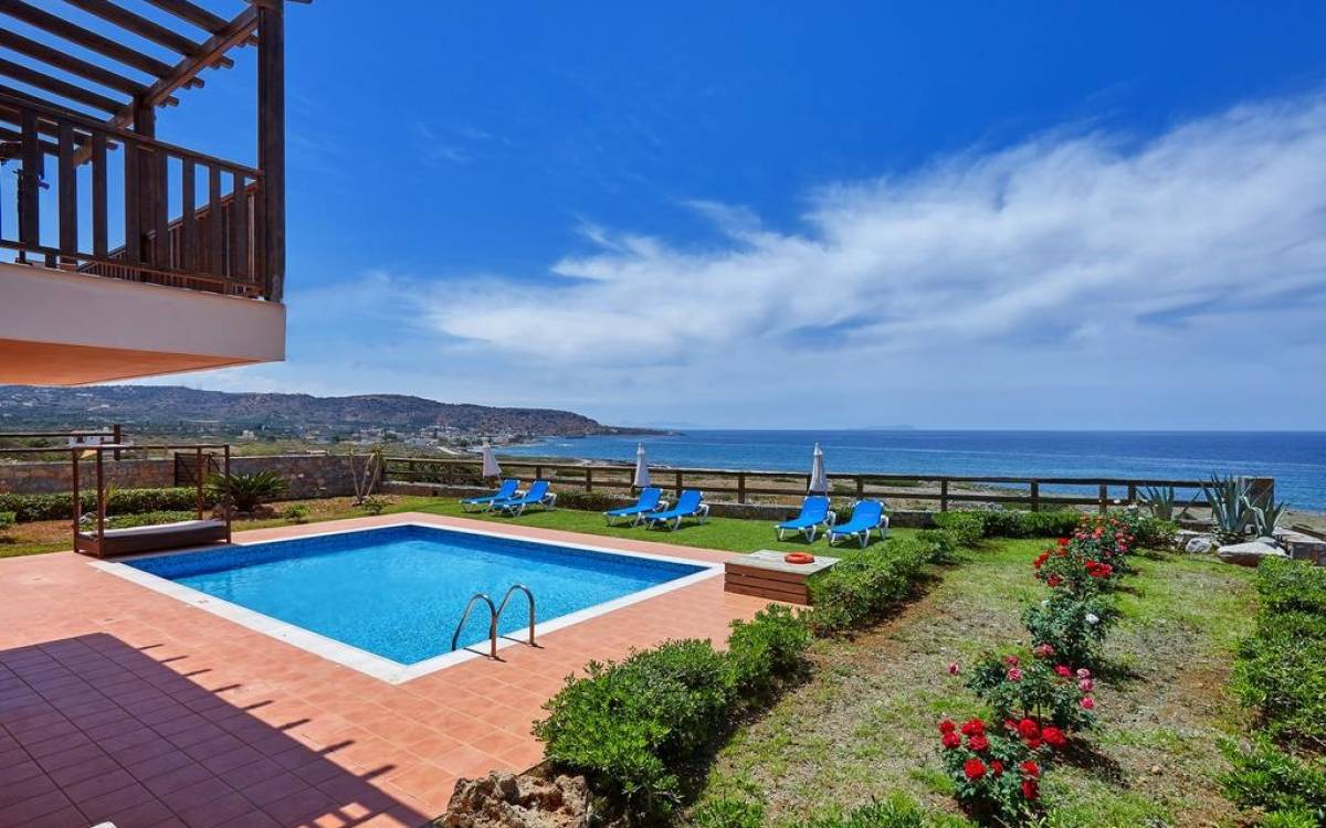 Κάθε βίλα είναι μια κομψά διακοσμημένη 160τ.μ. κατασκευής, σε συνολική έκταση 1500 τ.μ., προσφέροντας στους επισκέπτες υψηλές προδιαγραφές άνεσης και χαλάρωσης. Οι Βίλες αποτελούνται από δύο ορόφους: το ισόγειο έχει ξεχωριστό WC και ευάερη ενιαία κουζίνα/τραπεζαρία/σαλόνι, που οδηγεί σε μια βεράντα όπου θα βρείτε υπαίθρια έπιπλα για φαγητό και χαλάρωση. Υπάρχει επίσης 45 τ.μ. πισίνα στον όμορφο κήπο, με εκπληκτική θέα στο Κρητικό Πέλαγος και στο παραδοσιακό παρεκκλήσι του Αγίου Νικολάου.