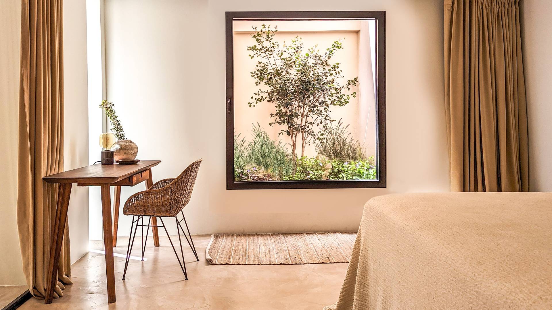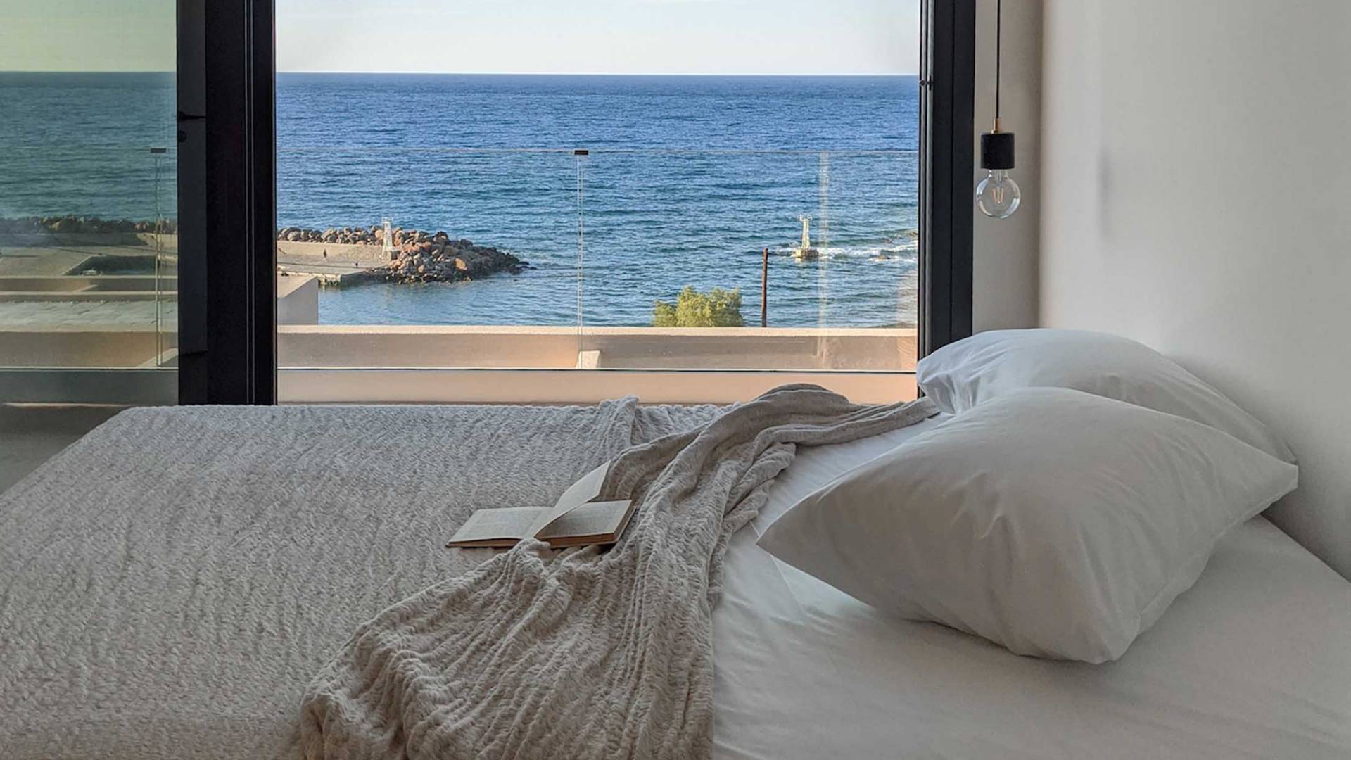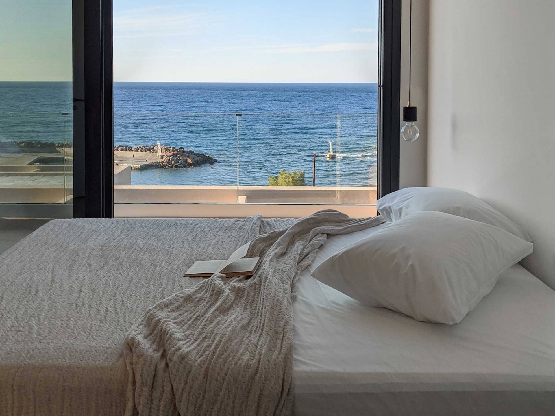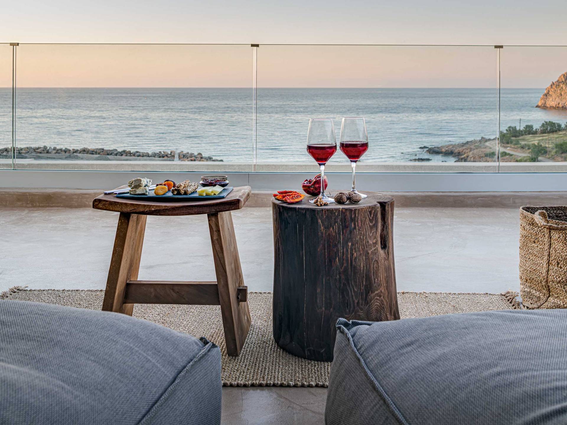 Το Sense Two Villa Crete είναι πραγματική απόδειξη ότι υπάρχει ομορφιά στην απλότητα. Οι δημιουργοί πίσω από αυτό το ολοκαίνουργιο έργο εμπνεύστηκαν από το φυσικό περιβάλλον καθώς και από την ακατέργαστη ομορφιά του κρητικού τοπίου. Η έκθεση στη θάλασσα και η αίσθηση του αλμυρού αέρα κατά μήκος των γήινων και απαλών μυρωδιών των τοπικών αρωματικών βοτάνων δένουν αρμονικά με την αρχιτεκτονική γλώσσα των δύο ιδιοκτησιών. Ένα μείγμα από οργανικά υφάσματα, βαμβάκι και λινά κοσμούν το κρεβάτι και τις κουρτίνες, ενώ τα ξύλινα έπιπλα και τα γήινα χρώματα δημιουργούν ένα ιδιωτικό χαλαρωτικό καταφύγιο Η αίσθηση ηρεμίας και χαλάρωσης ενισχύεται χάρη στα ξύλινα έπιπλα, το κονίαμα και την αντίθεση μεταξύ του ουδέτερου γκρι, της άμμου και του ιβουάρ»
