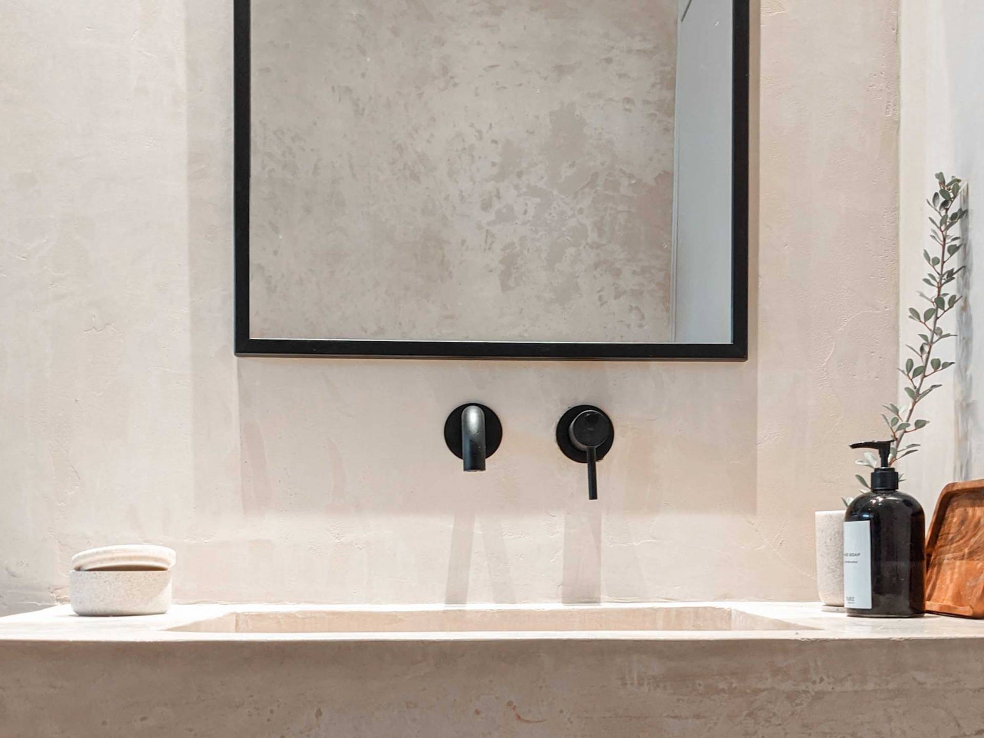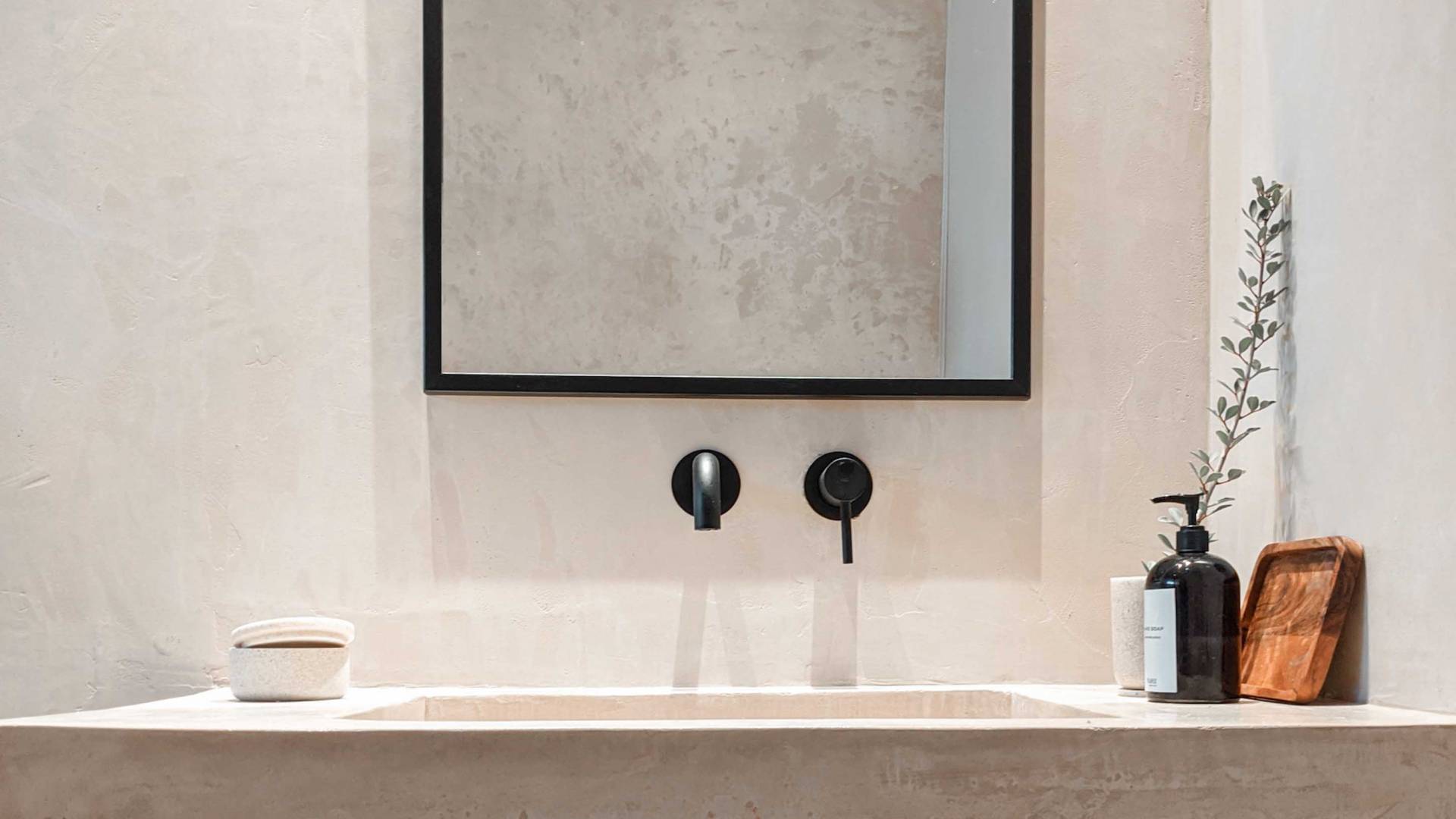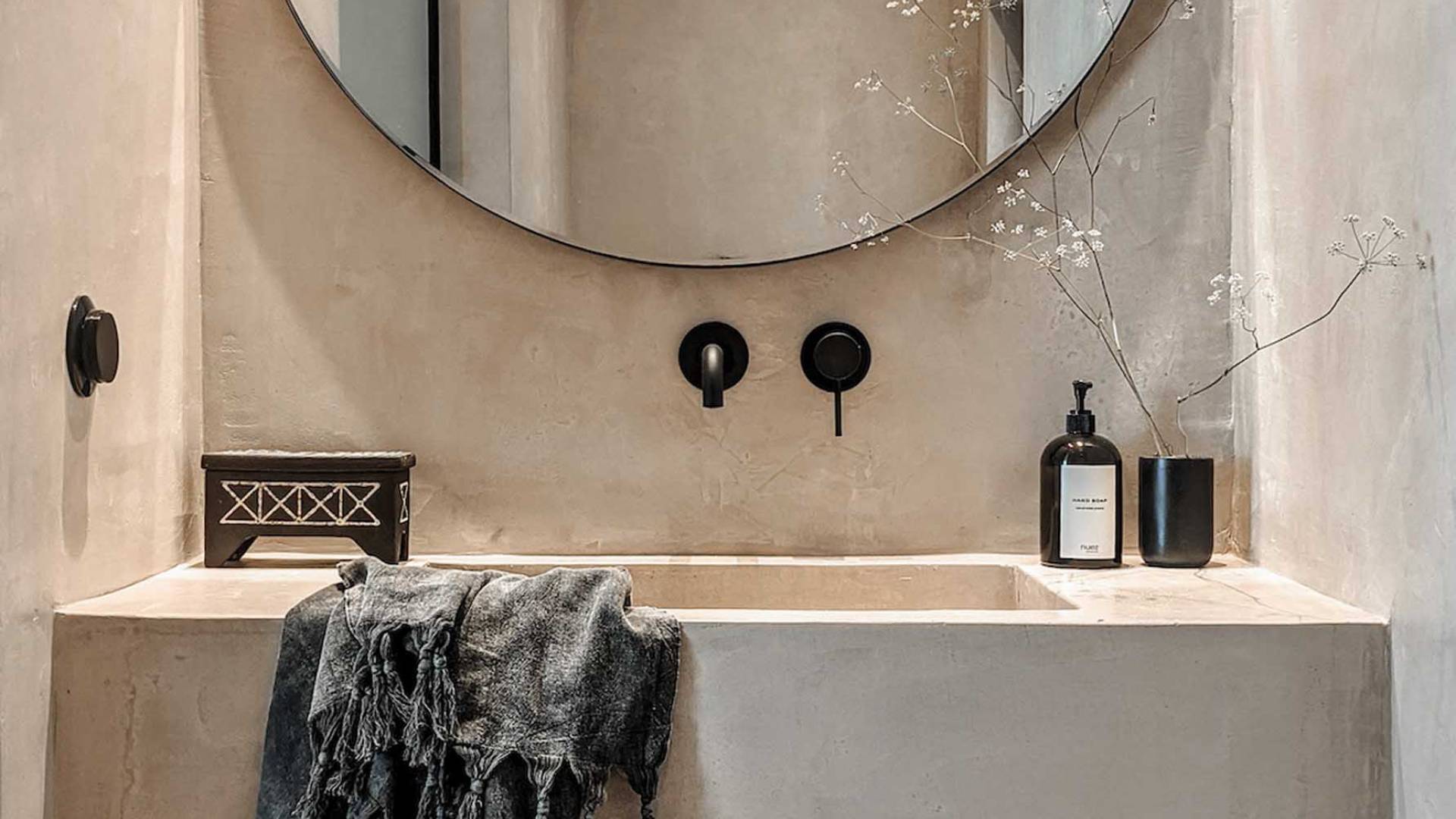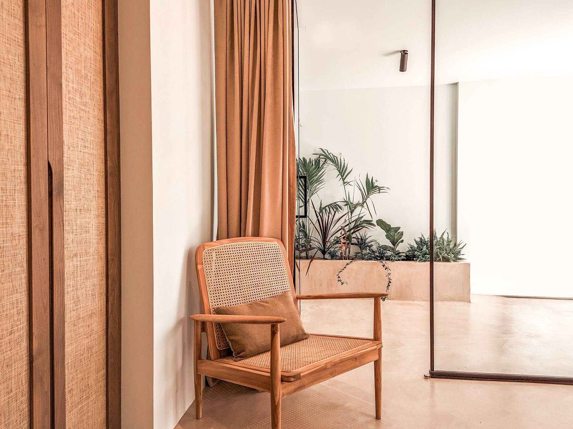 Οι φυσικές επιφάνειες και η χαλαρωτική παλέτα αποχρώσεων είναι συνεπείς στα μπάνια όπου η ενσωματωμένη μπανιέρα και τα πολυτελή ντους βροχής αναδεικνύουν τη σαγηνευτική ατμόσφαιρα των εσωτερικών χώρων. Προσθέστε ένα επιπλέον στρώμα βάθους στα μαύρα μεταλλικά φινιρίσματα και προσφέρετε μια κομψή και μινιμαλιστική αίσθηση. Προχωρώντας από το εξωτερικό στους εσωτερικούς χώρους, η έννοια της εσωτερικής-εξωτερικής διαβίωσης μεταφράζεται σε μια δομή με ογκώδεις συρόμενες πόρτες που συνδέουν το εσωτερικό με το τοπίο και δίνουν την ψευδαίσθηση της ζωής στη φύση