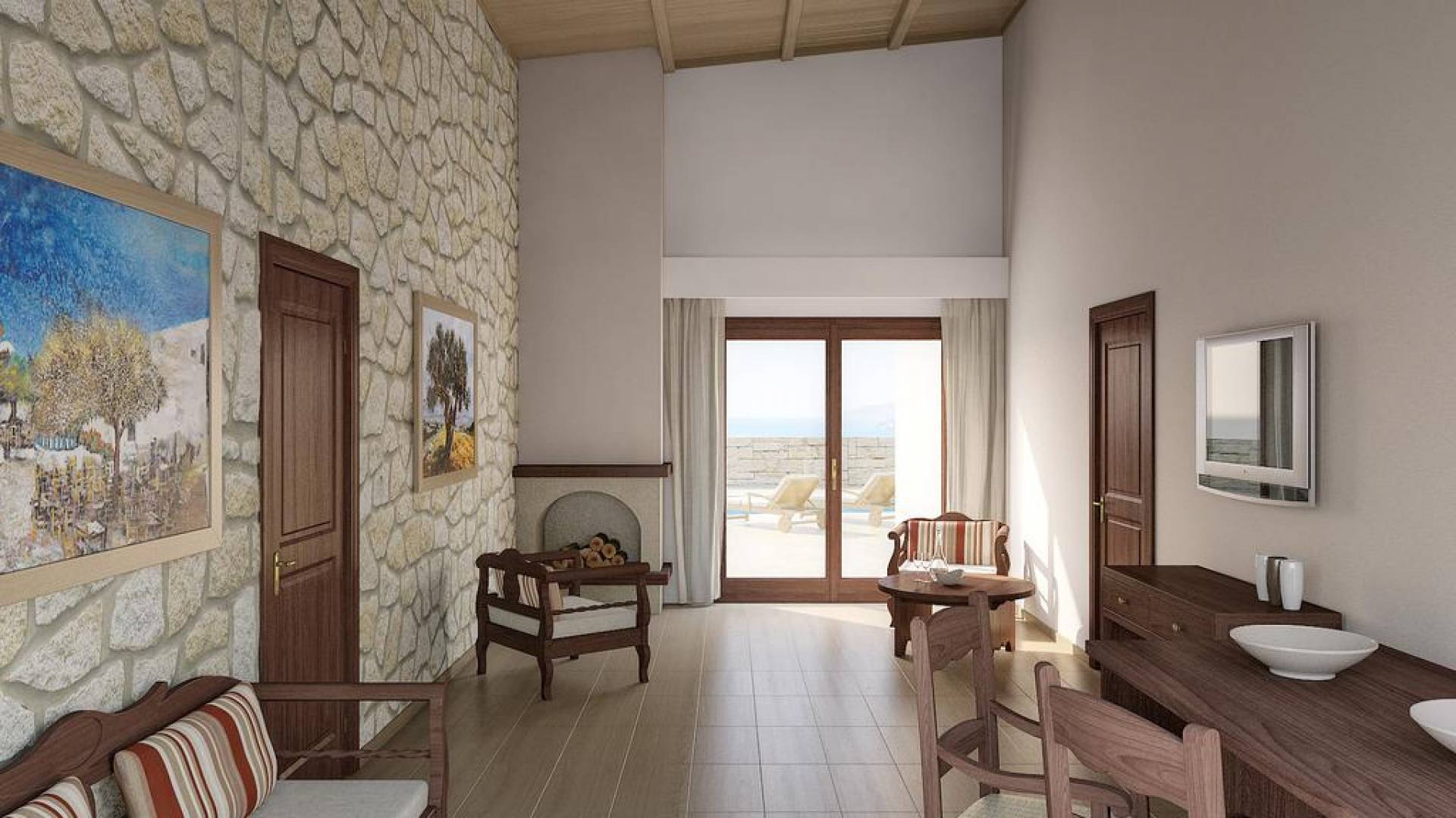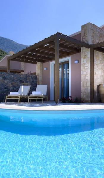 Αναζωογονητικά χρώματα, μοντέρνα στοιχεία διακόσμησης, δωμάτια γεμάτα ήλιο που προσφέρουν υπέροχη θέα. Οι βίλες είναι χτισμένες σε παραδοσιακό πέτρινο στυλ με μέγεθος 85τ.μ και προσφέρουν την πολυτέλεια μιας ατομικής πισίνας, βεράντας και κήπου με μπάρμπεκιου, διαθέτουν ιδιωτική είσοδο, ευρύχωρο σαλόνι με τζάκι, δύο υπνοδωμάτια με king-size ή μονά κρεβάτια και 2 μπάνια που μπορούν να φιλοξενήσουν έως 6 ενήλικες.