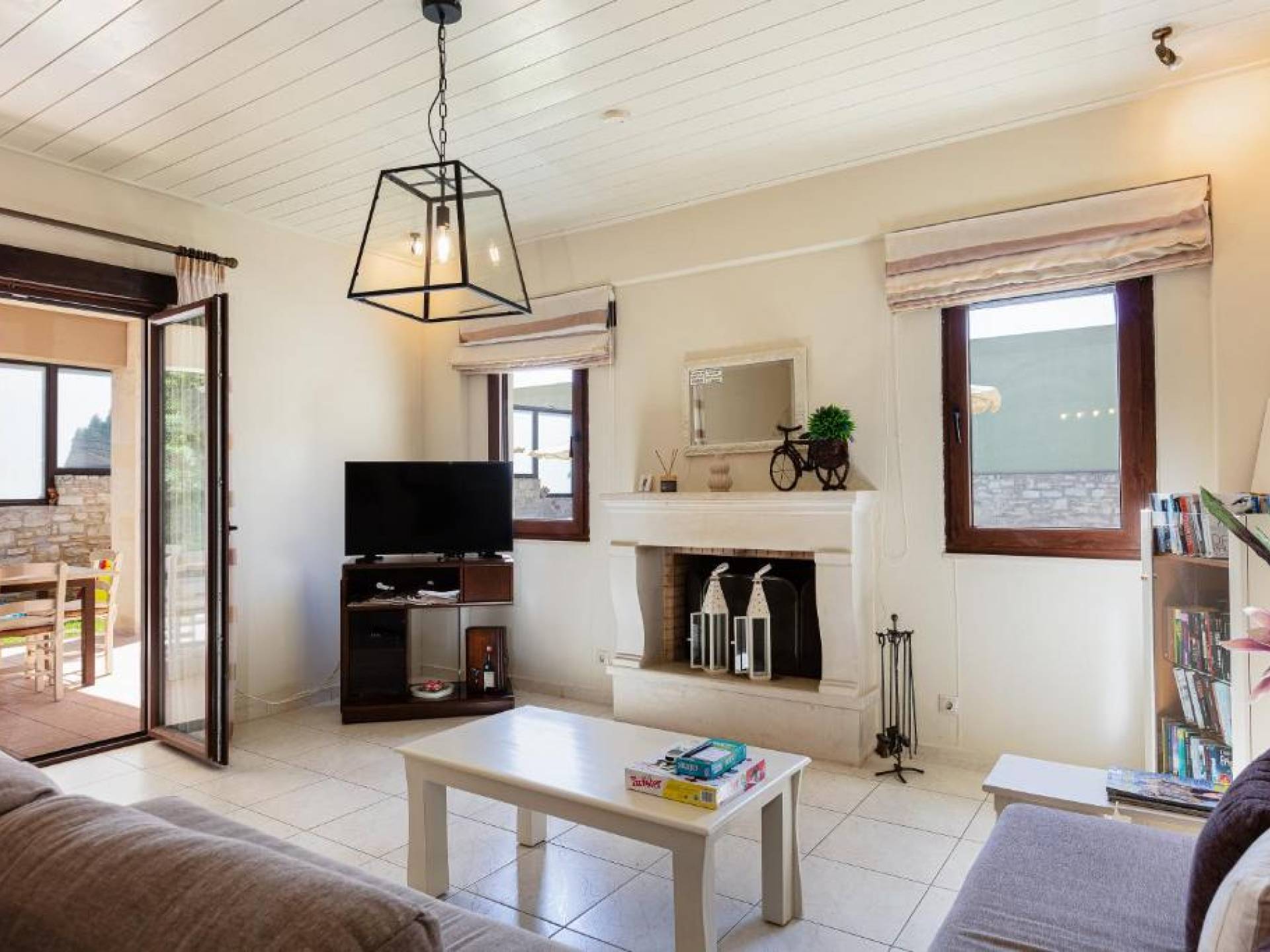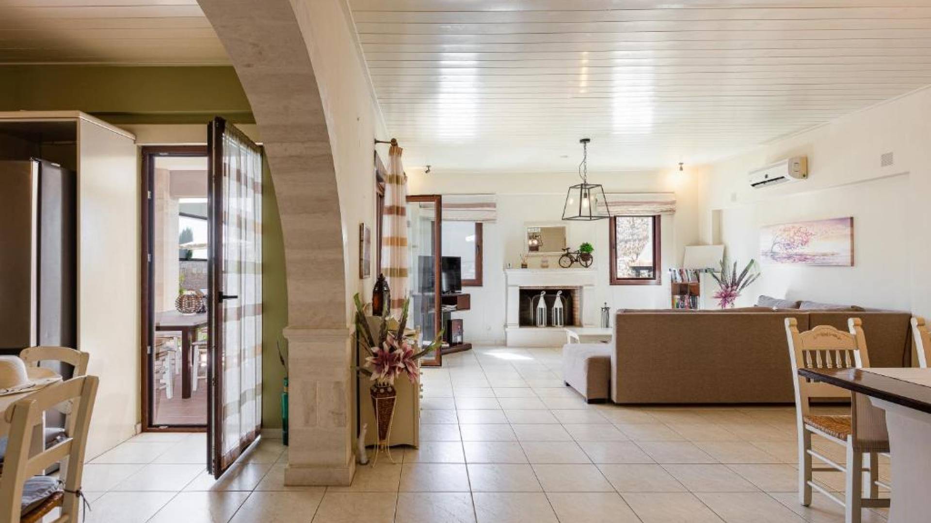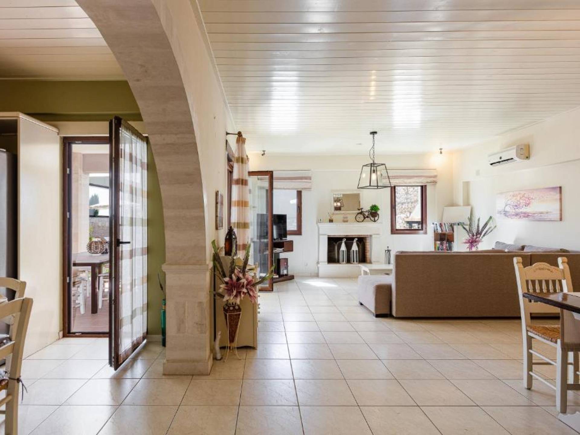 Η βίλα διαθέτει μεγάλο καθιστικό με ενιαία διαρρύθμιση και άρτια εξοπλισμένη κουζίνα. Μια πόρτα ανοίγει στον χώρο της πισίνας. Απέναντι από την κουζίνα, υπάρχει ένα βοηθητικό δωμάτιο όπου θα βρείτε ηλεκτρική σκούπα και σιδερώστρα. Η ξύλινη σκάλα οδηγεί σε 2 επιπλέον υπνοδωμάτια, και τα δύο ανοίγουν σε μεγάλα μπαλκόνια που προσφέρουν όμορφη θέα στα βουνά και την παρθένα εξοχή. Κατά την άφιξη προσφέρεται ένα καλάθι καλωσορίσματος.