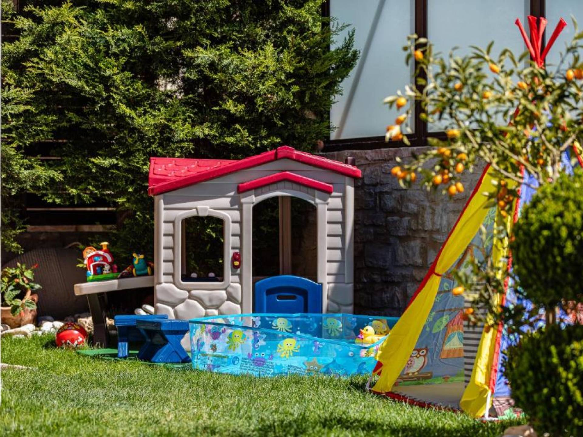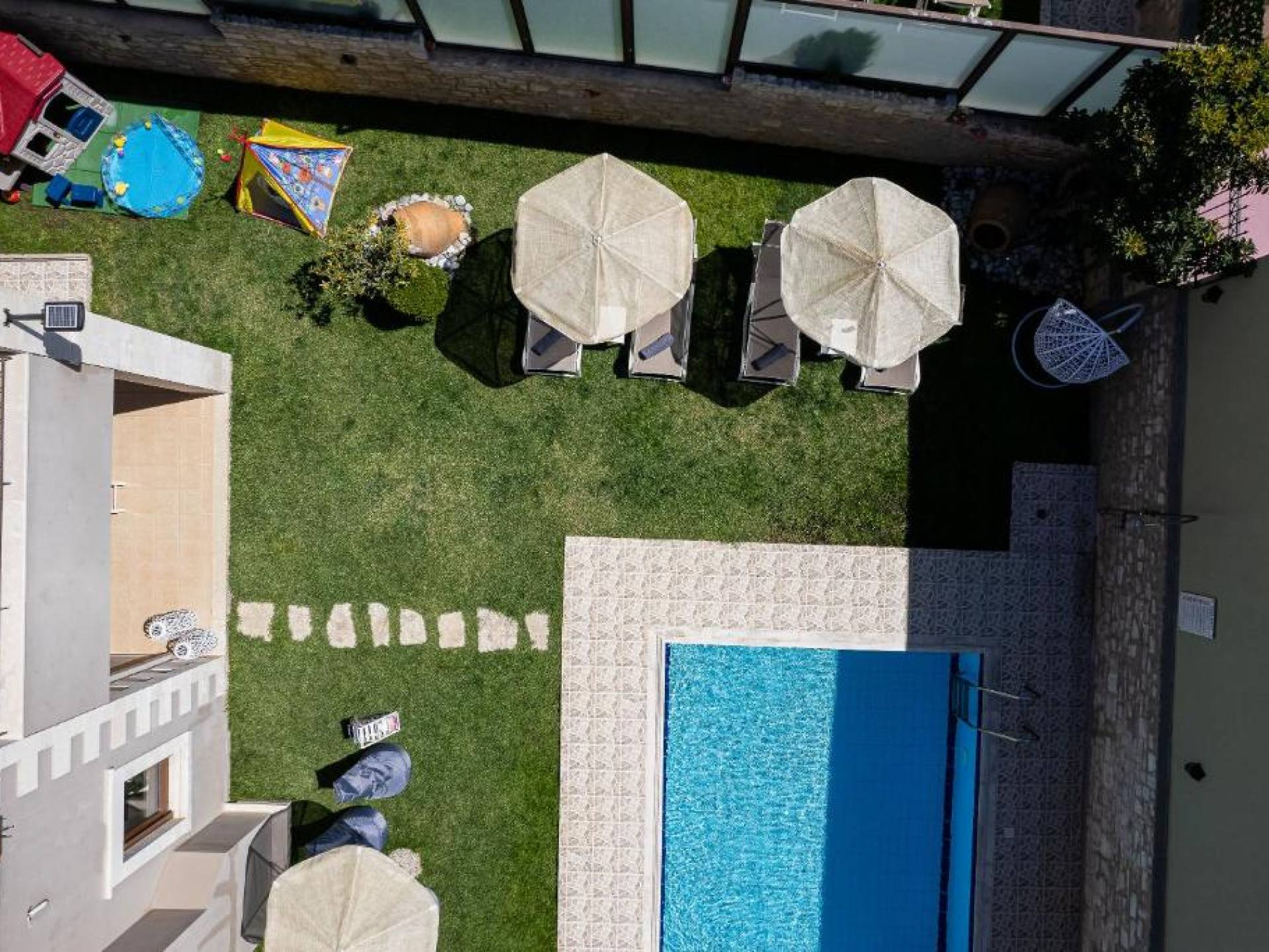 Η βίλα ανοίγει σε ιδιωτική πισίνα και διαθέτει μεγάλο καθιστικό με ενιαία διαρρύθμιση και άρτια εξοπλισμένη κουζίνα. Η ξύλινη σκάλα οδηγεί στα υπνοδωμάτια, τα οποία ανοίγουν σε μεγάλα μπαλκόνια που προσφέρουν όμορφη θέα στα βουνά και την παρθένα εξοχή.
