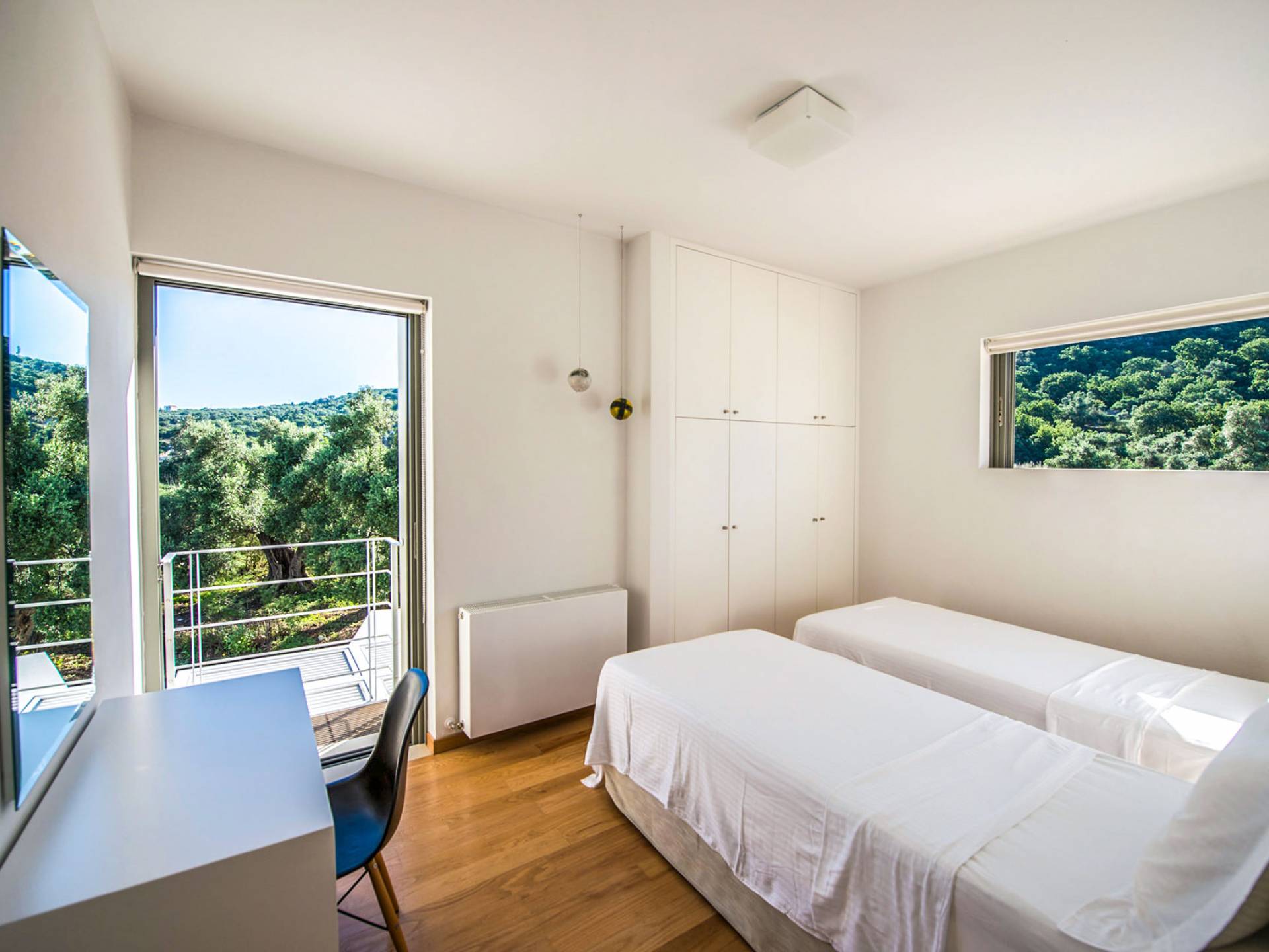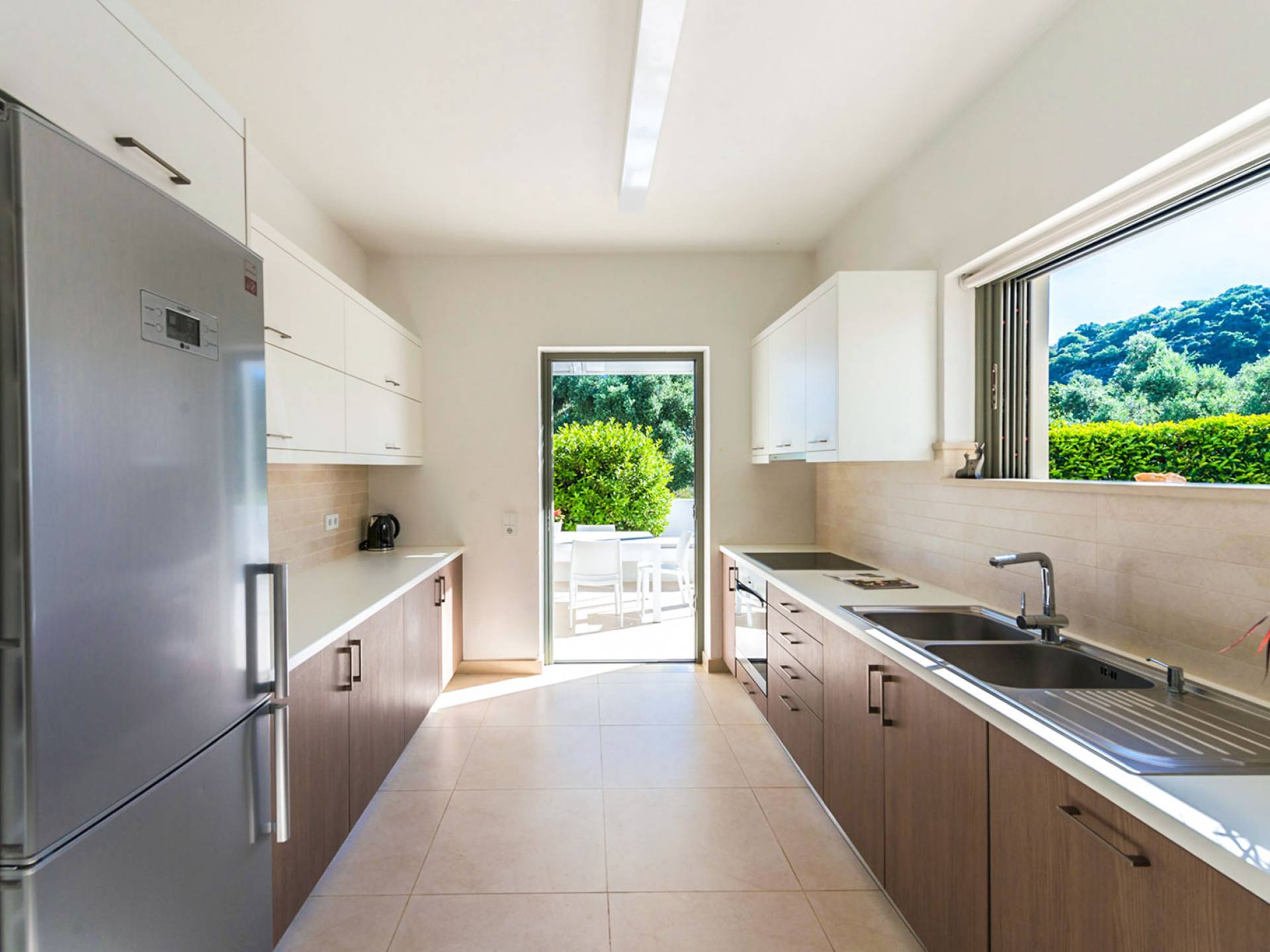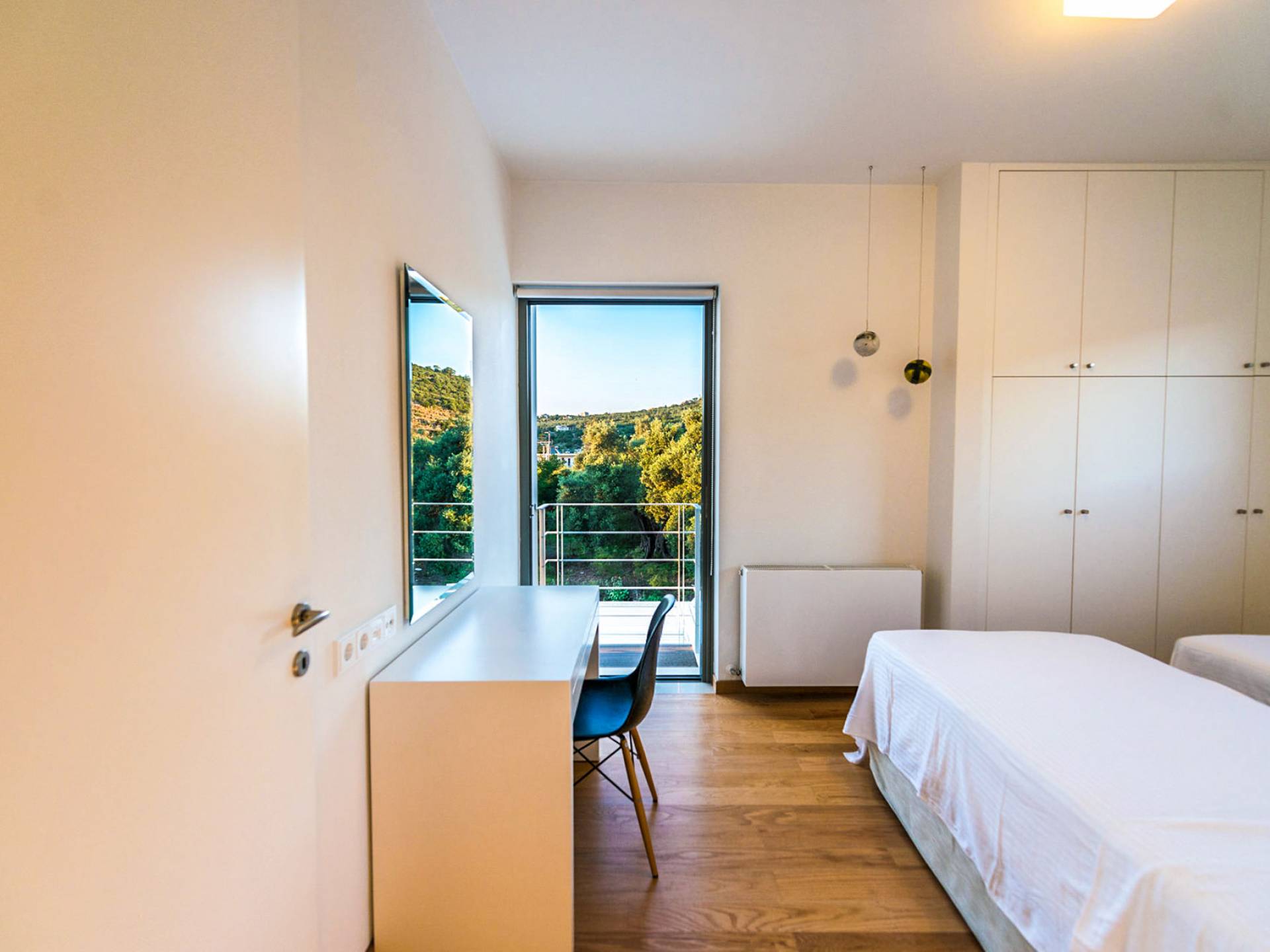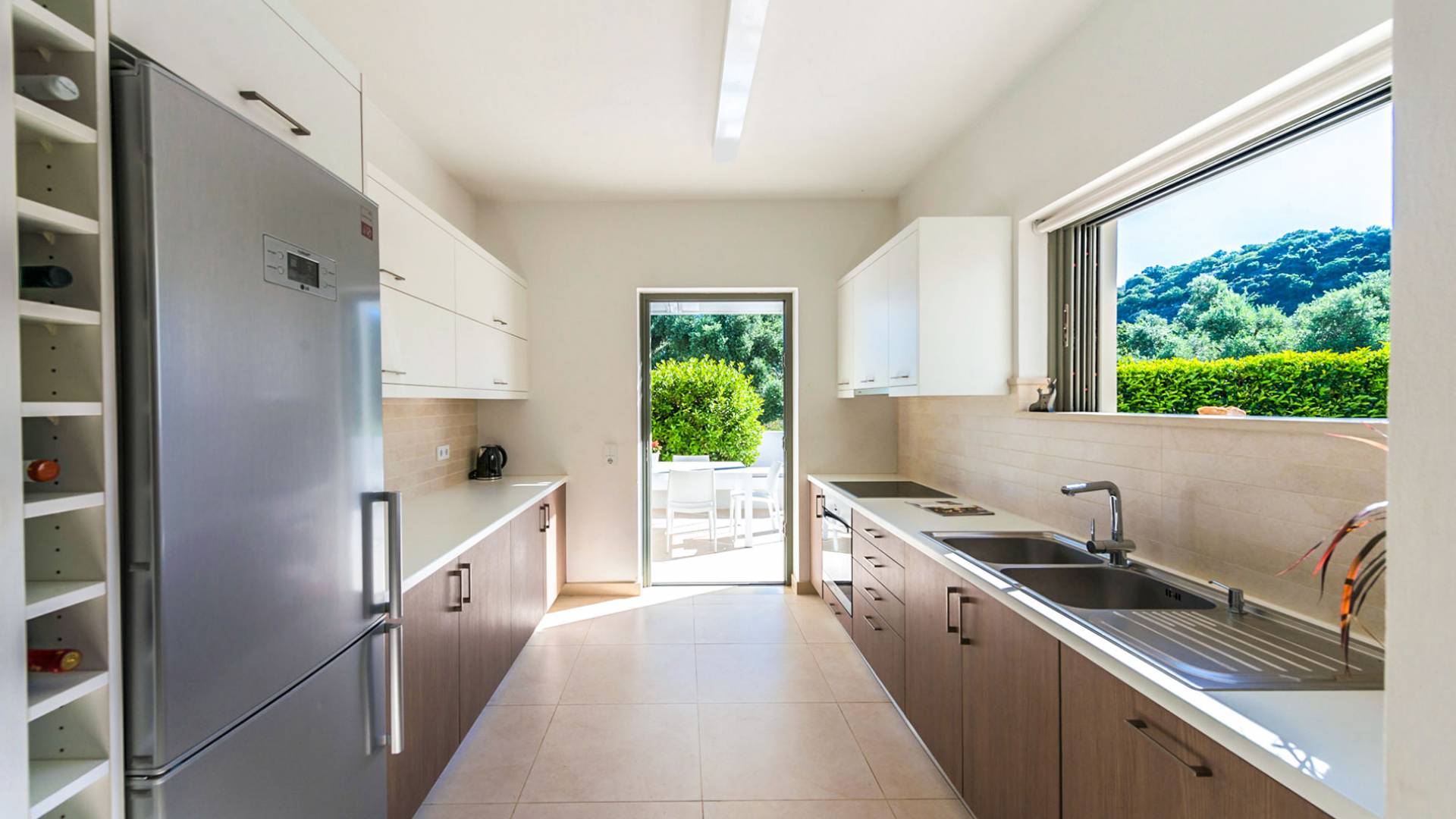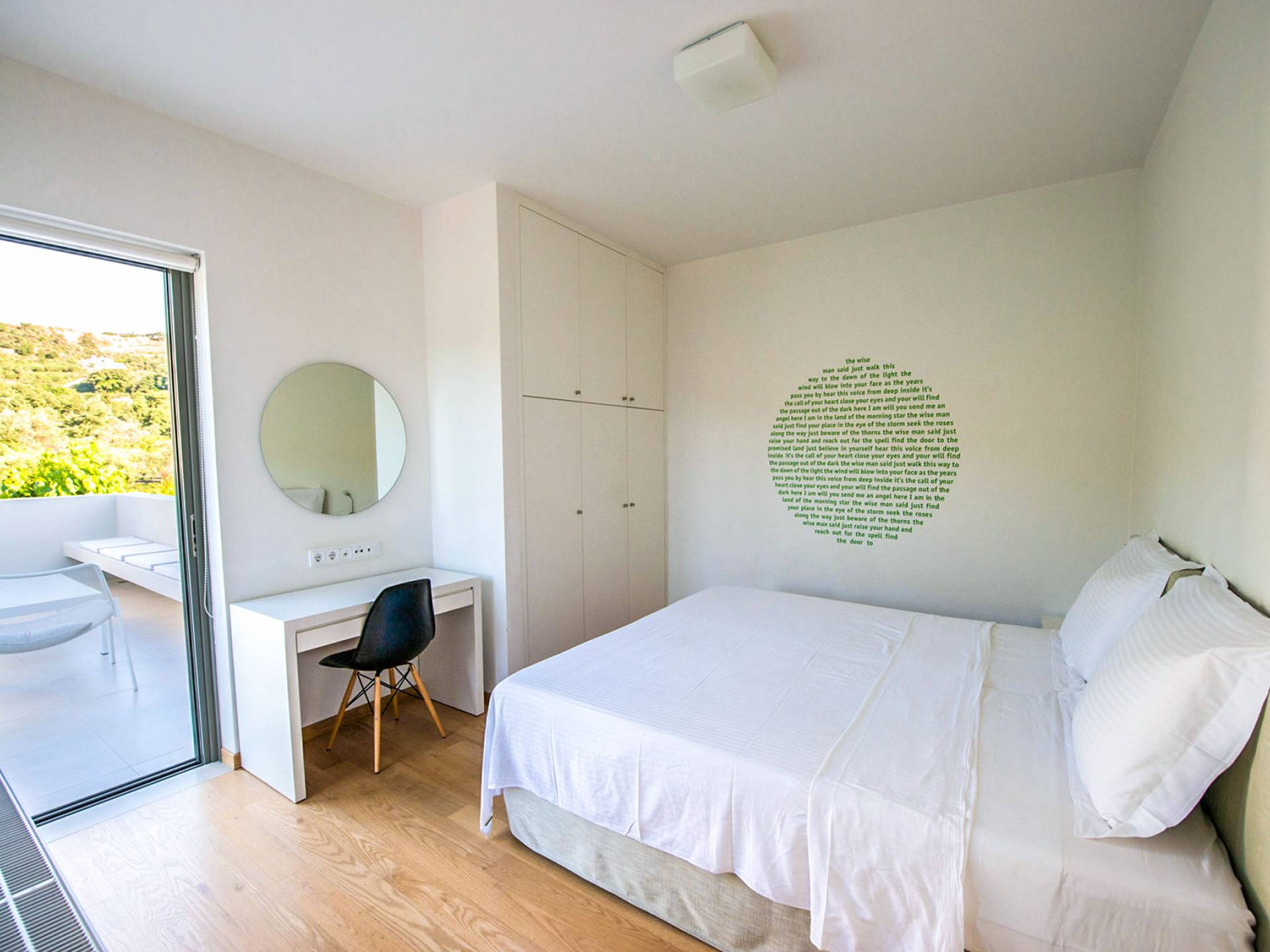 Στο ισόγειο, οι ευρύχωροι χώροι και τα μεγάλα παράθυρα που αφήνουν το φως να εισέλθει, ενισχύουν την πολυτέλεια και τα μοντέρνα χαρακτηριστικά. Το ενιαίο σχέδιο επιβάλλεται από την πλήρως εξοπλισμένη μοντέρνα κουζίνα και τα πολυτελή υλικά που χρησιμοποιούνται για την επίπλωση του καθιστικού. Το Eco Villa Rethymno διαθέτει 3 ευρύχωρα υπνοδωμάτια με ένα ιδιωτικό μπάνιο και ευρύχωρες βεράντες με θέα απέραντο πράσινο που εκτείνεται στις κορυφές των βουνών.