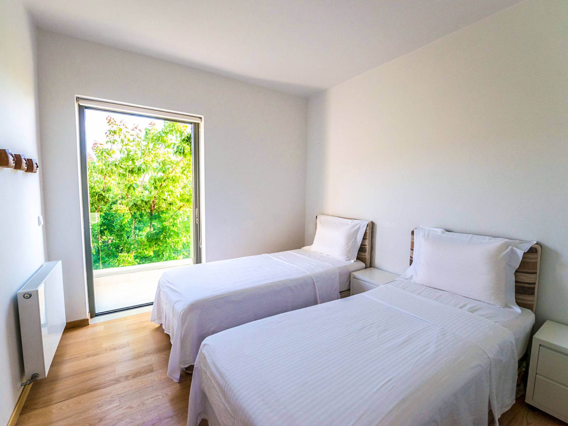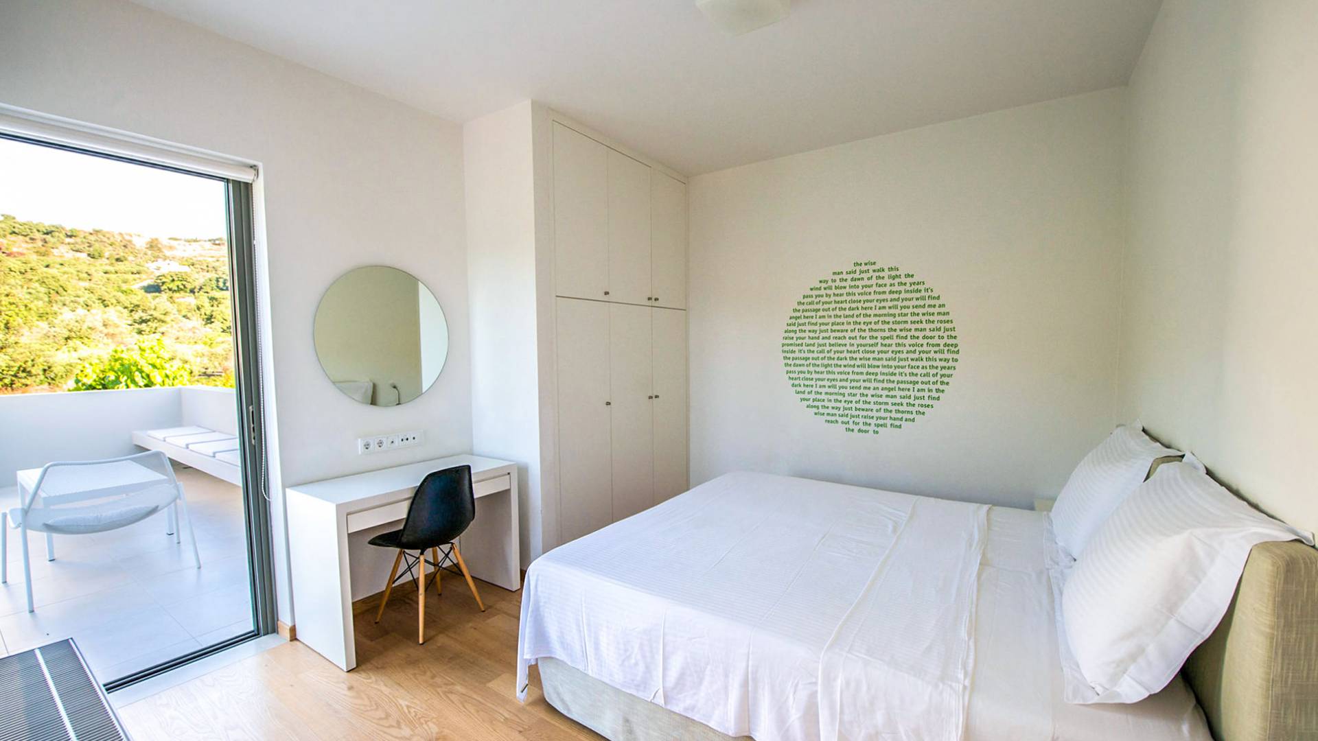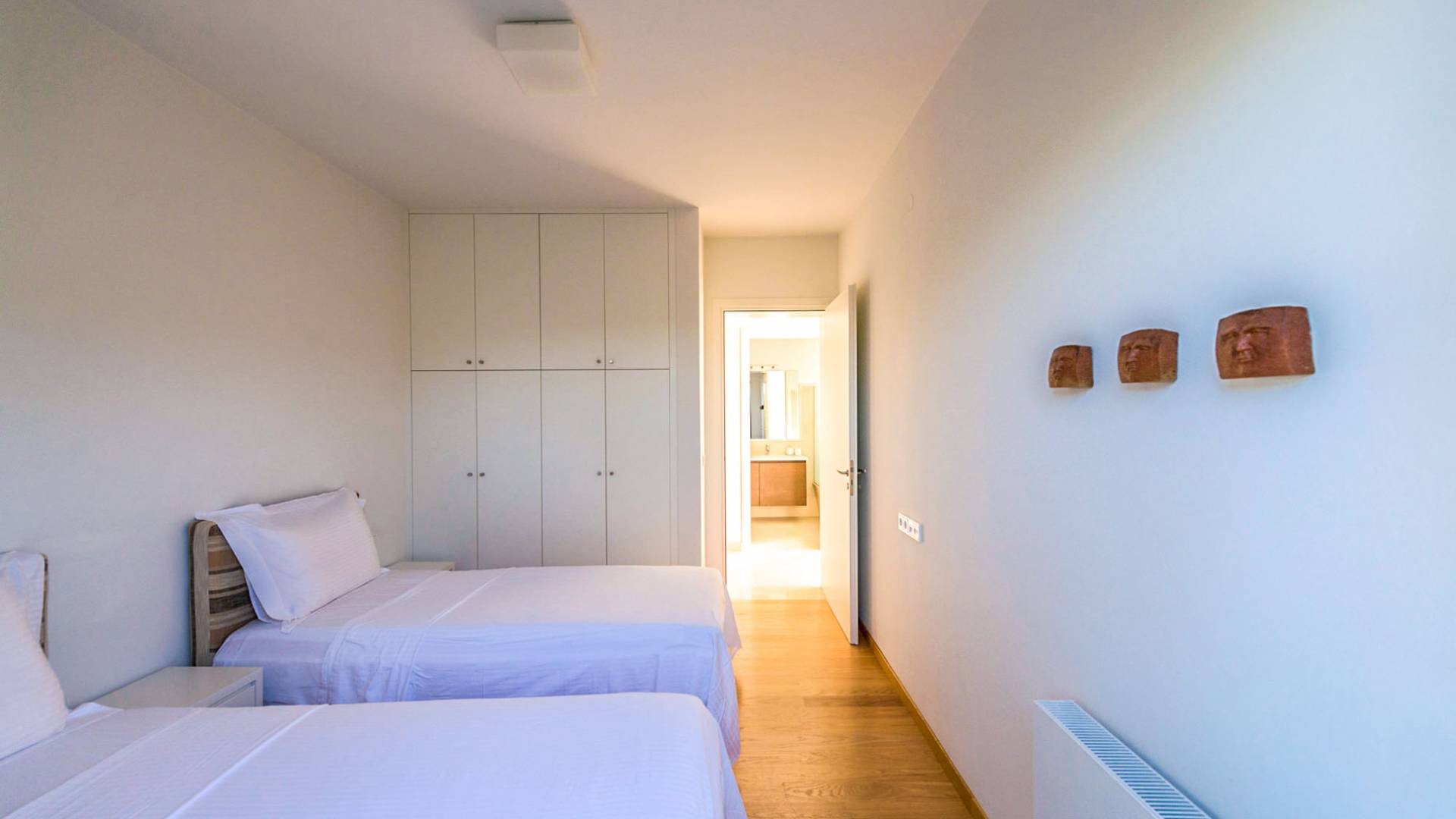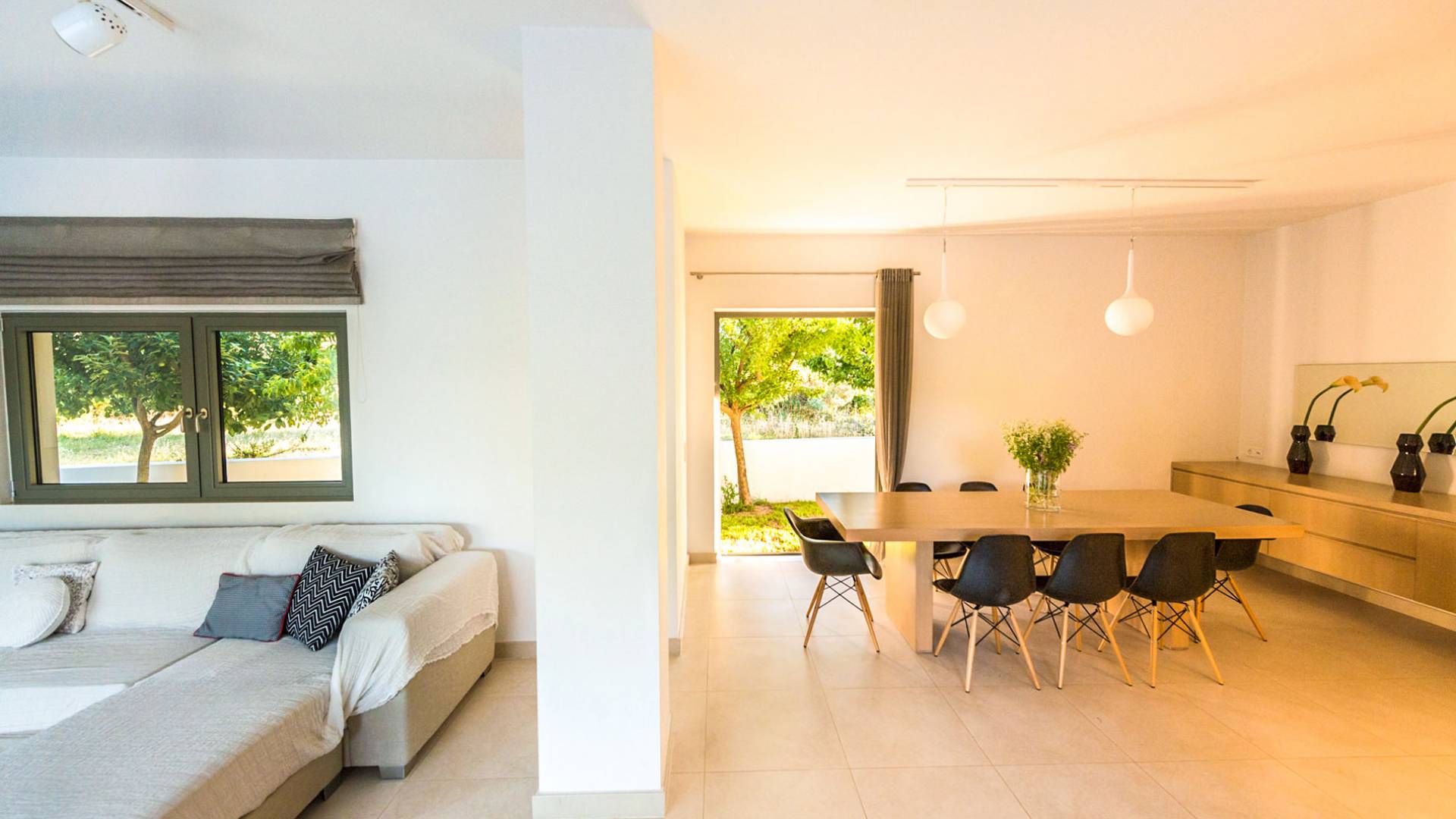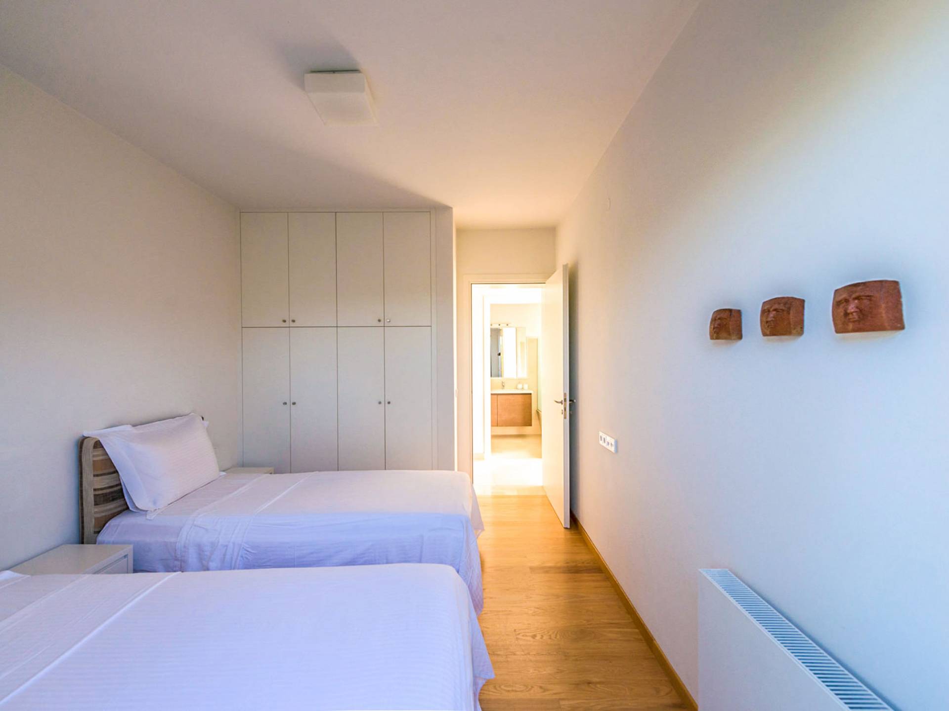 Στο ισόγειο, οι ευρύχωροι χώροι και τα μεγάλα παράθυρα που αφήνουν το φως να εισέλθει, ενισχύουν την πολυτέλεια και τα μοντέρνα χαρακτηριστικά. Το ενιαίο σχέδιο επιβάλλεται από την πλήρως εξοπλισμένη μοντέρνα κουζίνα και τα πολυτελή υλικά που χρησιμοποιούνται για την επίπλωση του καθιστικού. Το Eco Villa Rethymno διαθέτει 3 ευρύχωρα υπνοδωμάτια με ένα ιδιωτικό μπάνιο και ευρύχωρες βεράντες με θέα απέραντο πράσινο που εκτείνεται στις κορυφές των βουνών.