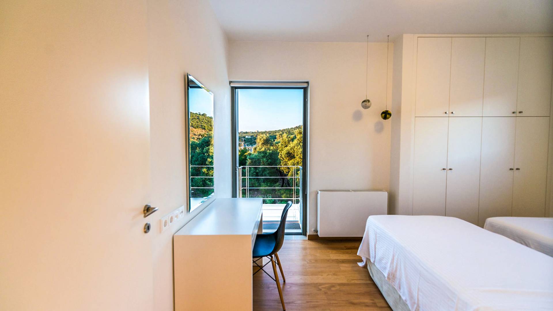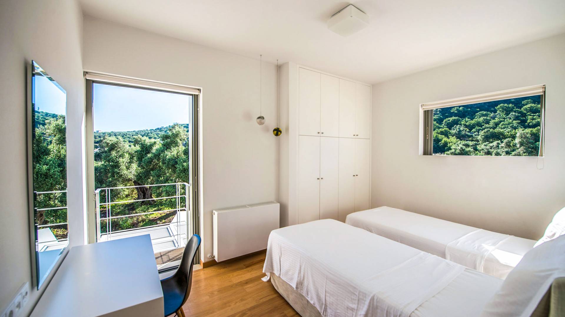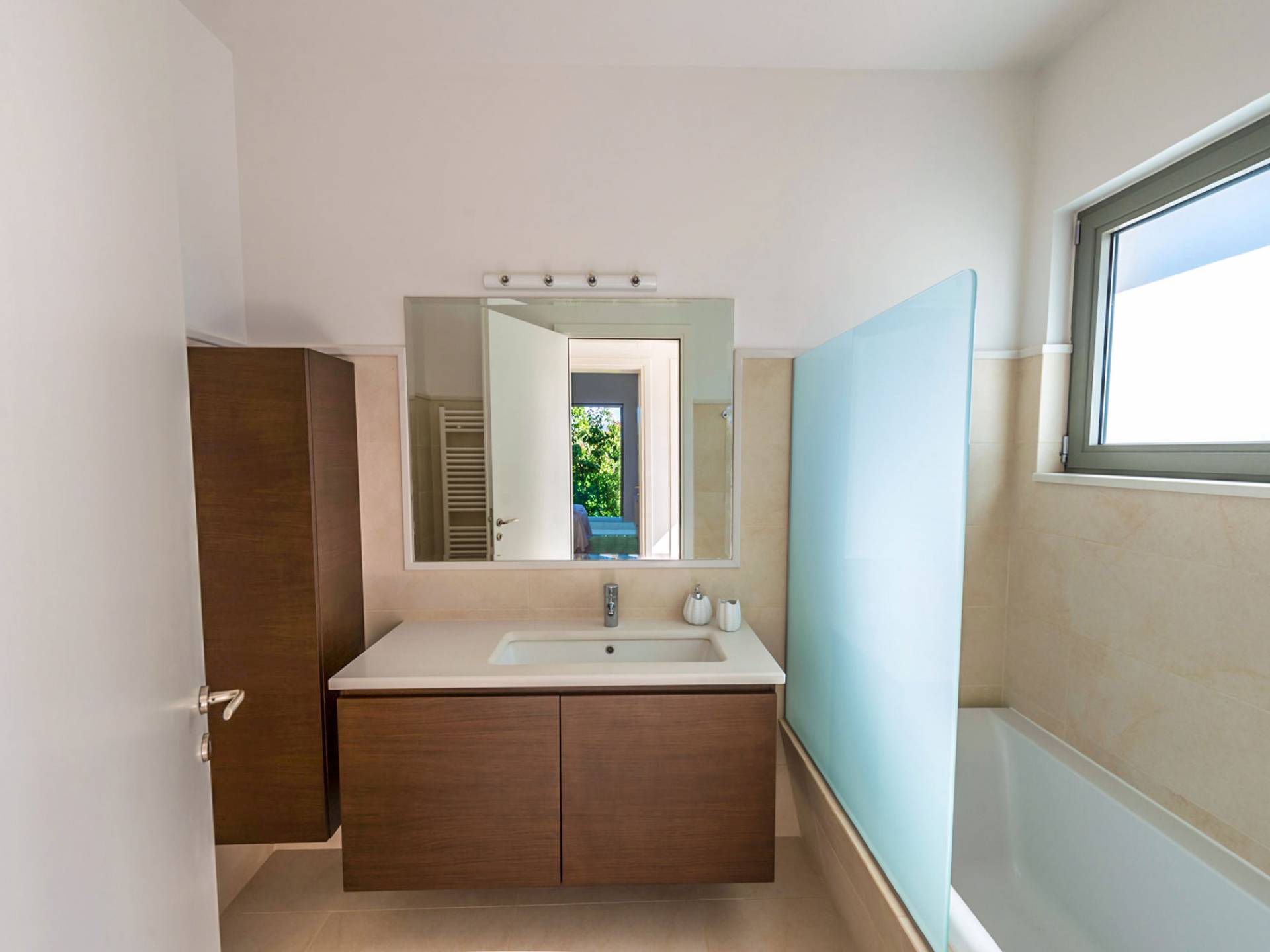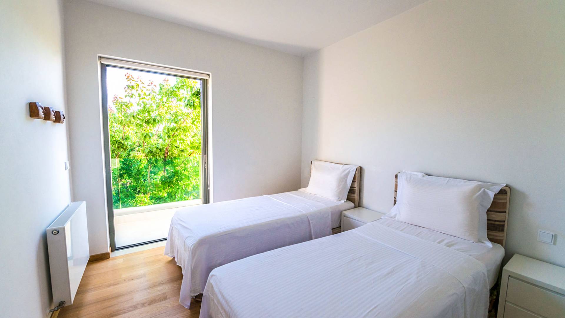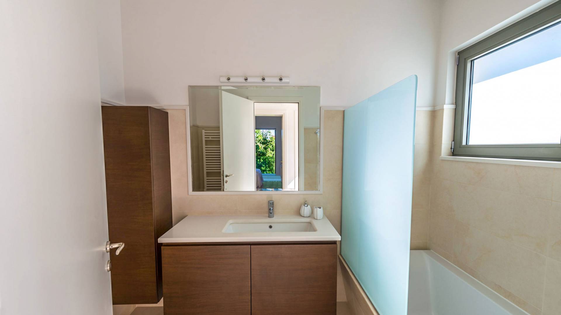 Στο ισόγειο, οι ευρύχωροι χώροι και τα μεγάλα παράθυρα που αφήνουν το φως να εισέλθει, ενισχύουν την πολυτέλεια και τα μοντέρνα χαρακτηριστικά. Το ενιαίο σχέδιο επιβάλλεται από την πλήρως εξοπλισμένη μοντέρνα κουζίνα και τα πολυτελή υλικά που χρησιμοποιούνται για την επίπλωση του καθιστικού. Το Eco Villa Rethymno διαθέτει 3 ευρύχωρα υπνοδωμάτια με ένα ιδιωτικό μπάνιο και ευρύχωρες βεράντες με θέα απέραντο πράσινο που εκτείνεται στις κορυφές των βουνών.
