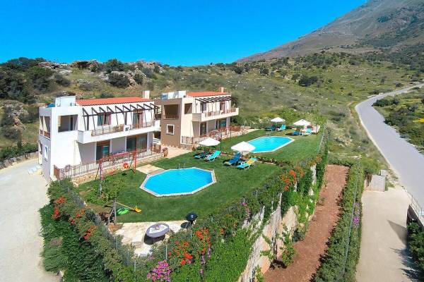 Triopetra View Villas Crete complex - Escape to these extraordinary villas on the southern coast of Crete. Perfect for families, couples, or friends, these sun-soaked retreat accommodates up to 5 guests and is nestled in a serene setting just minutes from the crystal-clear waters of Triopetra Beach.