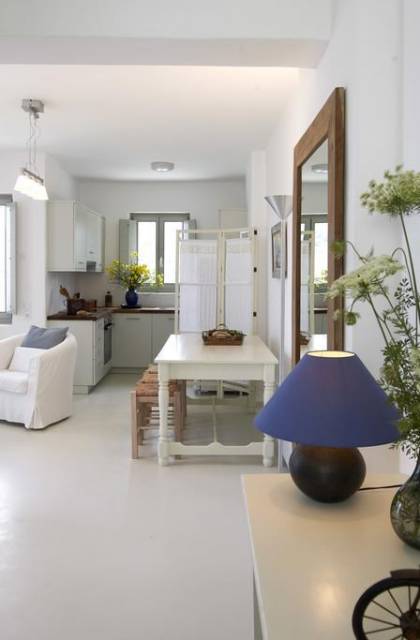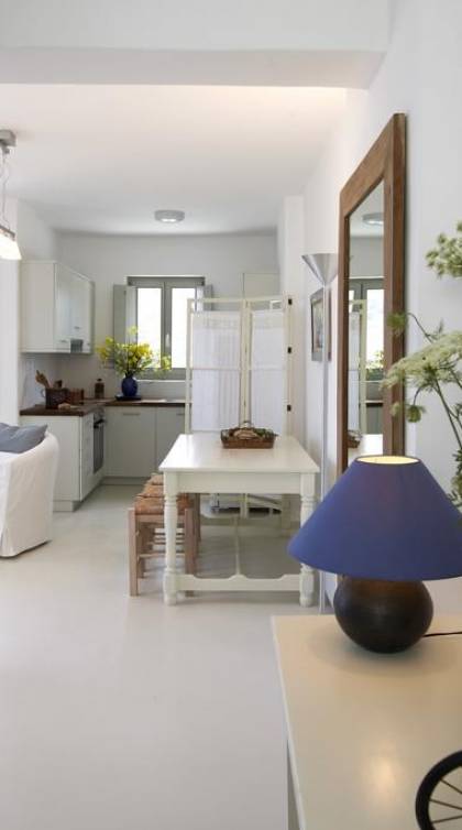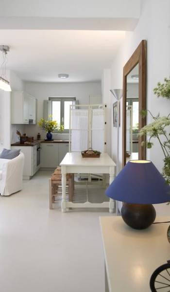 Η είσοδος αυτής της όμορφης σουίτας βρίσκεται στο ισόγειο, όπου θα βρείτε το ευρύχωρο σαλόνι με Hi-Fi, τηλεόραση και χαλαρωτικό καναπέ. Στο ίδιο επίπεδο, η πλήρως εξοπλισμένη κουζίνα προσφέρει μοναδική άνεση και ευκολία και σας επιτρέπει να δημιουργήσετε γαστρονομικά θαύματα. Το ευρύχωρο σαλόνι και η τραπεζαρία ανοίγουν στη μοναδική βεράντα με τον συνδυασμό της απόλυτης ιδιωτικότητας και της εκπληκτικής θέας στο απέραντο γαλάζιο και στο χωριό της Ιουλίδας.