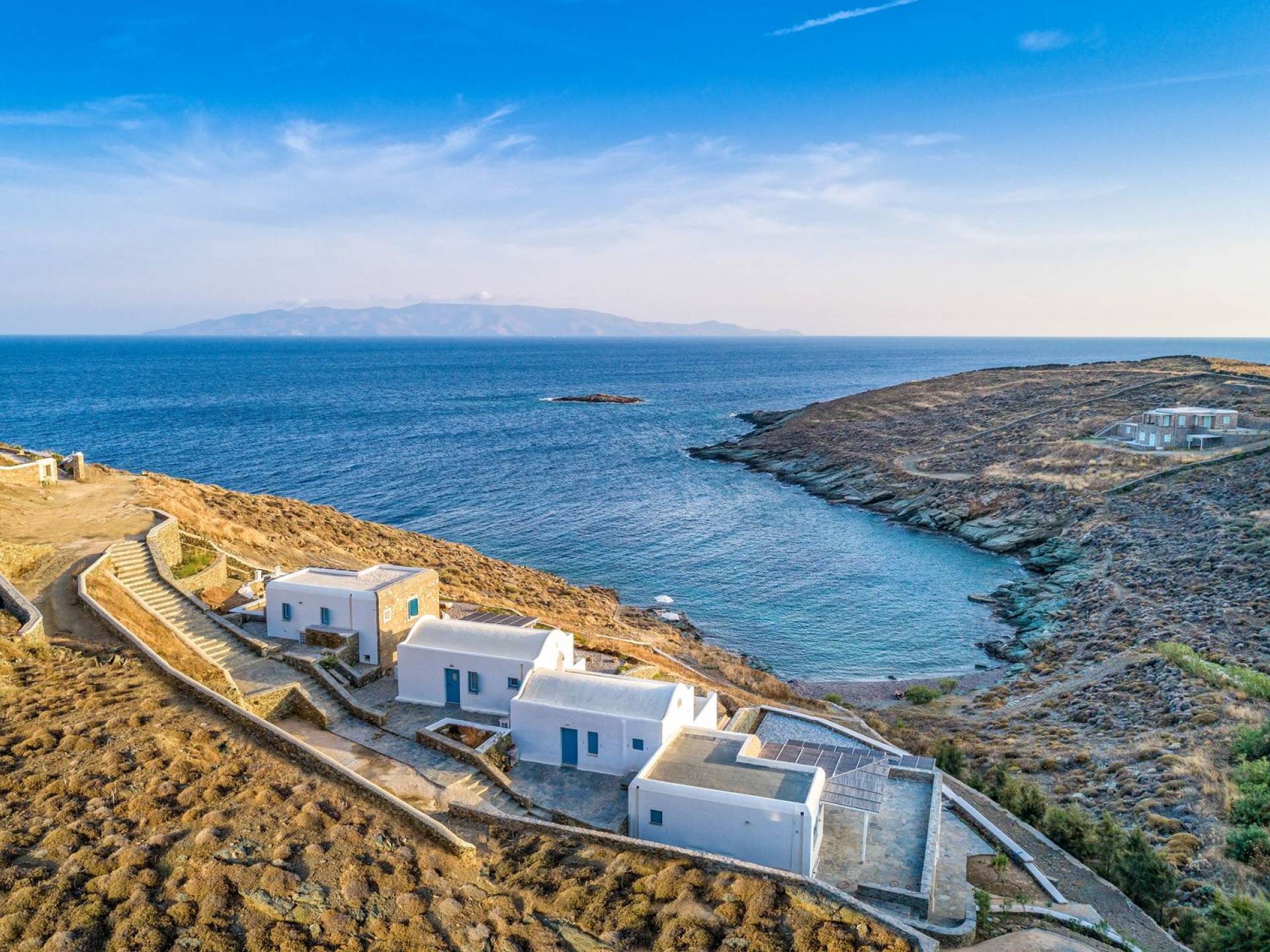 Η βίλα 1 στο Simousi Villas Kythnos είναι μια πολυτελής ενοικίαση βίλας με 2 υπνοδωμάτια και υπέροχη θέα στη θάλασσα. Μια ολοκαίνουργια, πολυτελής και ευρύχωρη βίλα 92 m2 όπου μπορούν να φιλοξενηθούν έως και 6 άτομα. Αυτή η βίλα απεικονίζει με τον καλύτερο δυνατό τρόπο το αυθεντικό κυκλαδίτικο στυλ. Η κυριαρχία του λευκού μαζί με το μινιμαλιστικό στοιχείο παρέχουν τον ιδανικό προορισμό για όσους αναζητούν ηρεμία και χαλάρωση.