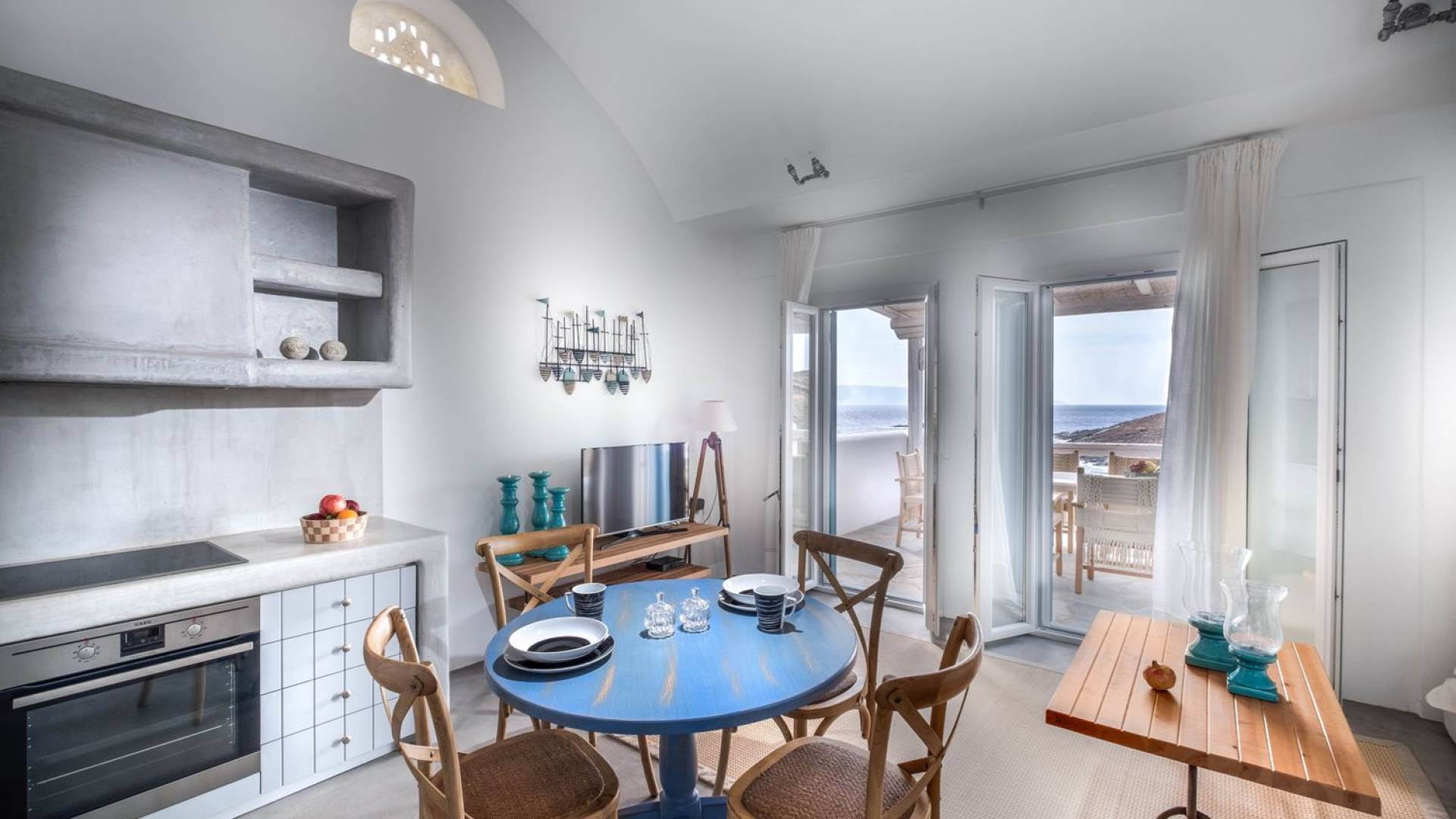 Η θέα από το μπαλκόνι κόβει την ανάσα. Μπορείτε να παρακολουθήσετε τον ήλιο να ανατέλλει και να απολαύσετε το πρωινό σας αγναντεύοντας το Αιγαίο. Μετά από αυτό, μπορείτε να κολυμπήσετε στην παραλία του καταλύματος ή να κάνετε ηλιοθεραπεία στο χώρο ηλιοθεραπείας δίπλα στη θάλασσα. Αυτό το κατάλυμα είναι κατάλληλο για όλους όσους απολαμβάνουν να περνούν χρόνο μαζί με τους φίλους τους, για ζευγάρια και οικογένειες.
