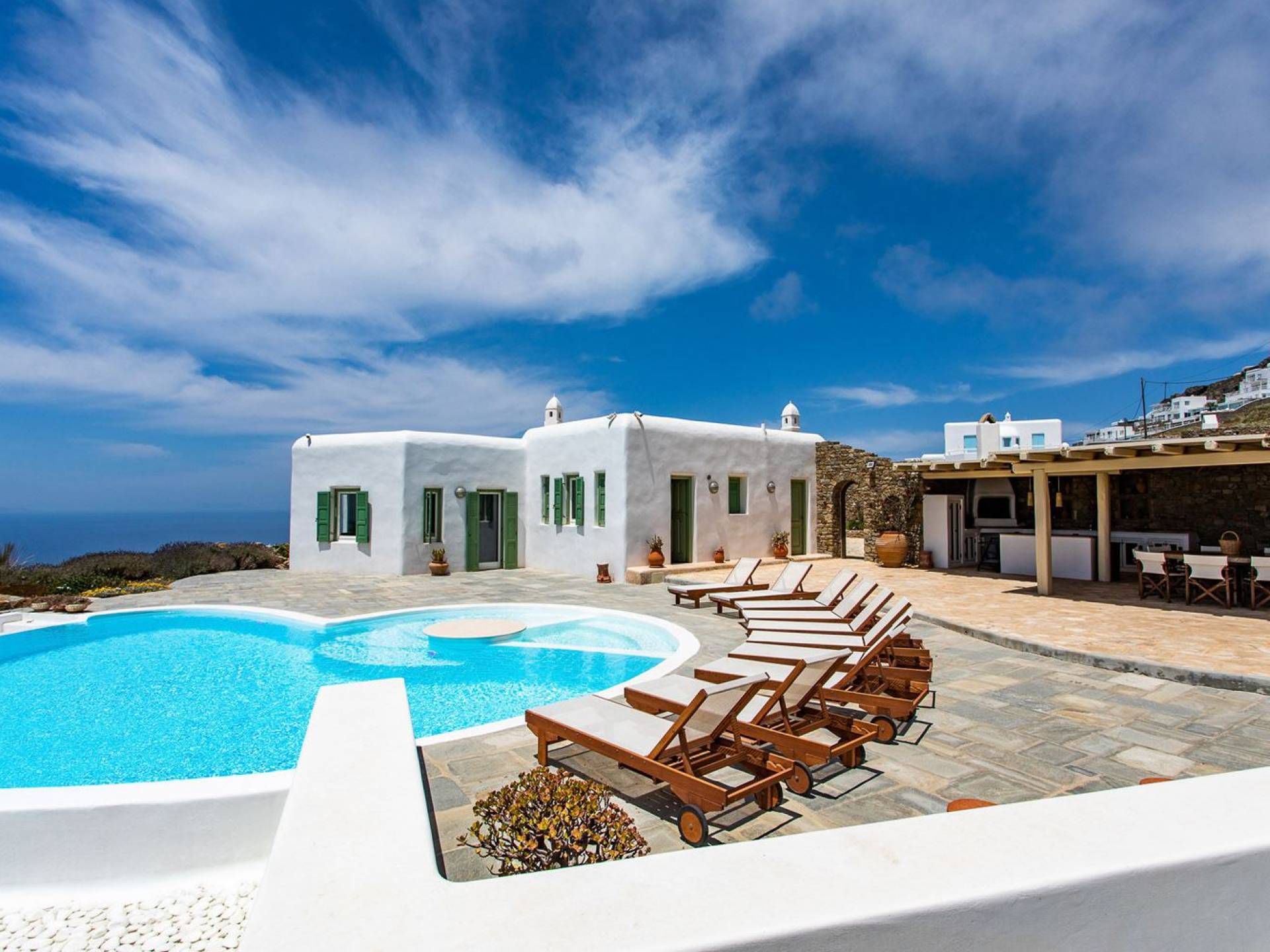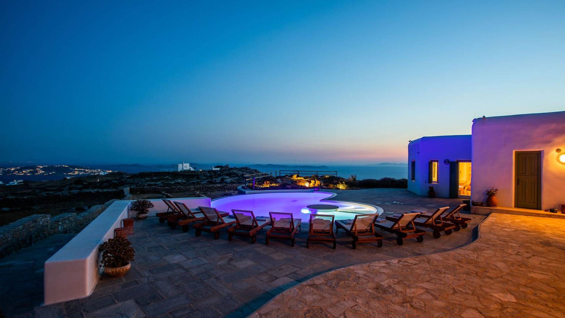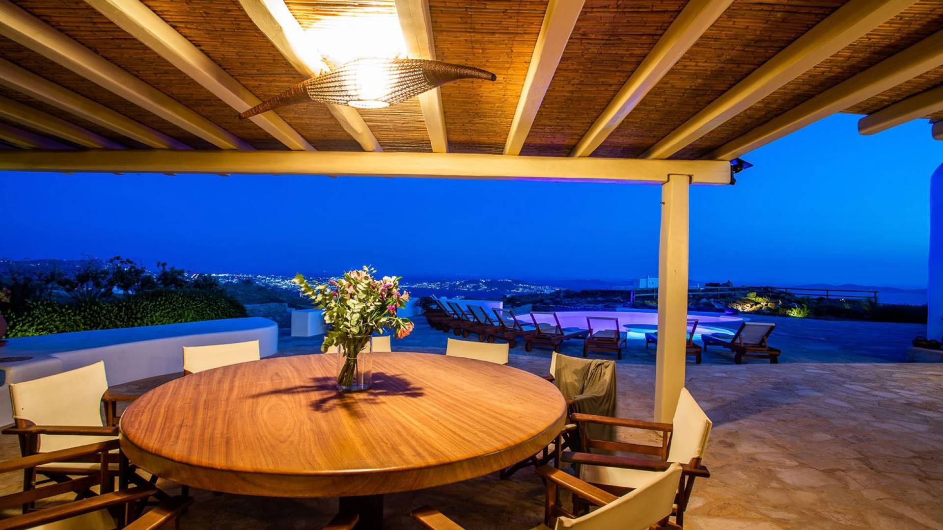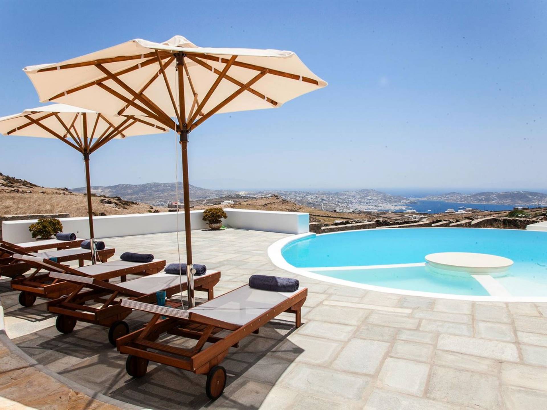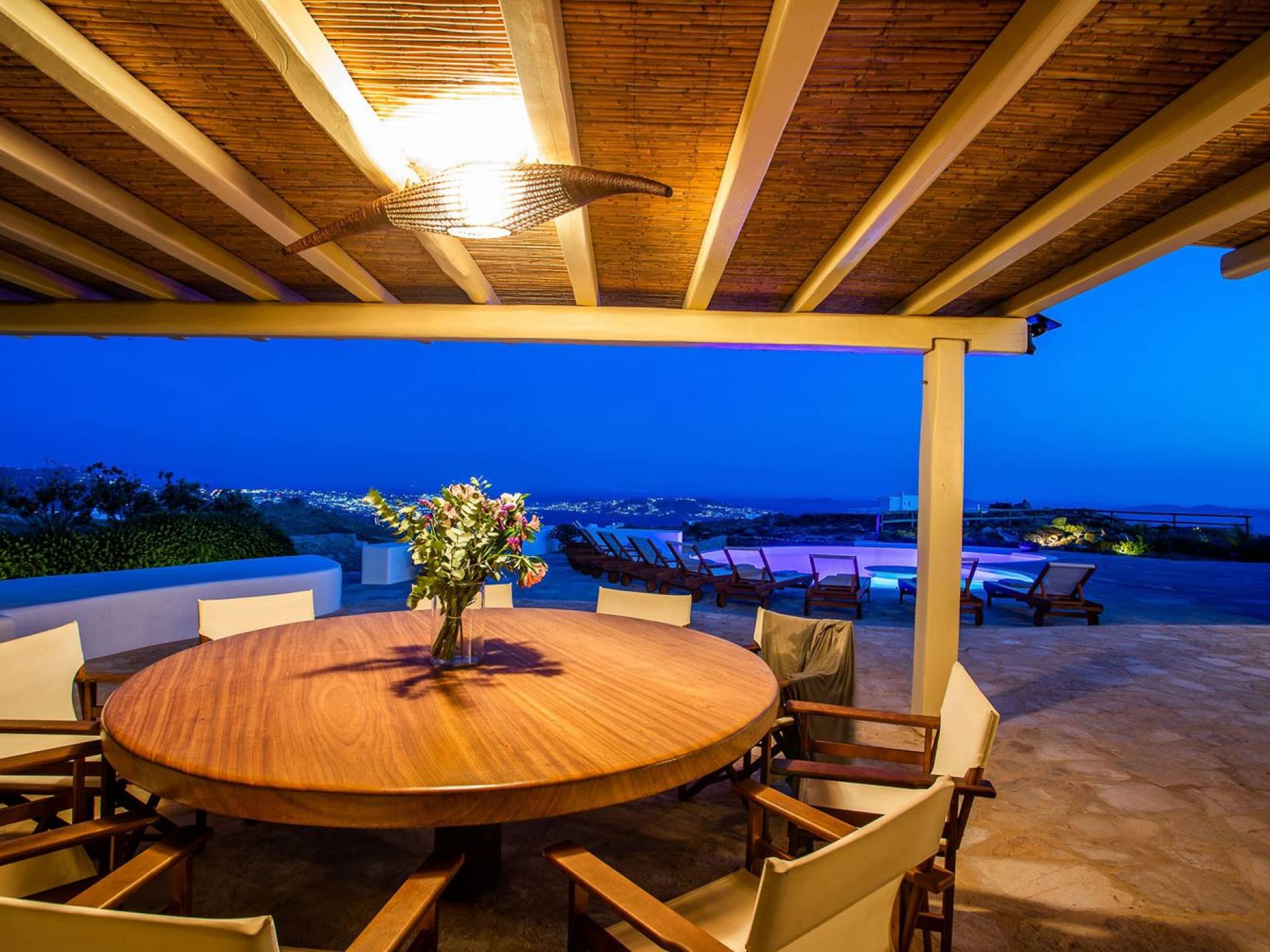 Ηλιόλουστη όλη την ημέρα, αυτή η βίλα είναι ένα ειδυλλιακό καταφύγιο, με θέα στη Χώρα της Μυκόνου, τη Δήλο και το γειτονικό νησί της Τήνου. Όταν έρθει η μαγική στιγμή του εκπληκτικού ηλιοβασιλέματος της Μυκόνου, μπορείτε να απολαύσετε την πανοραμική θέα που αξίζει να νιώσετε είτε δίπλα στην πισίνα, στο σκιερό σαλόνι και χώρο για φαγητό με πέργκολα είτε στην ιδιωτικότητα του απομακρυσμένου χαριτωμένου πάγκου στον κήπο.