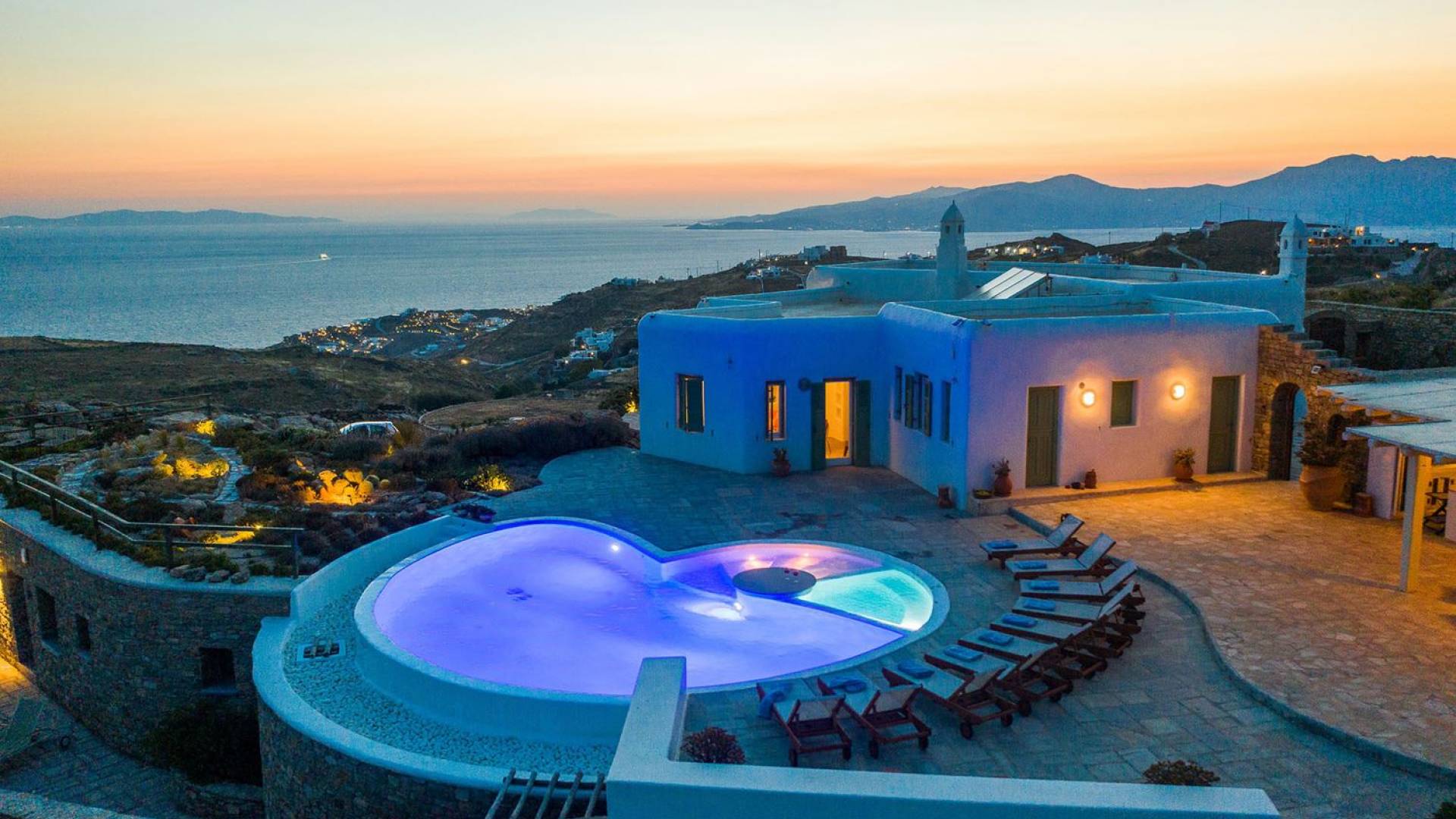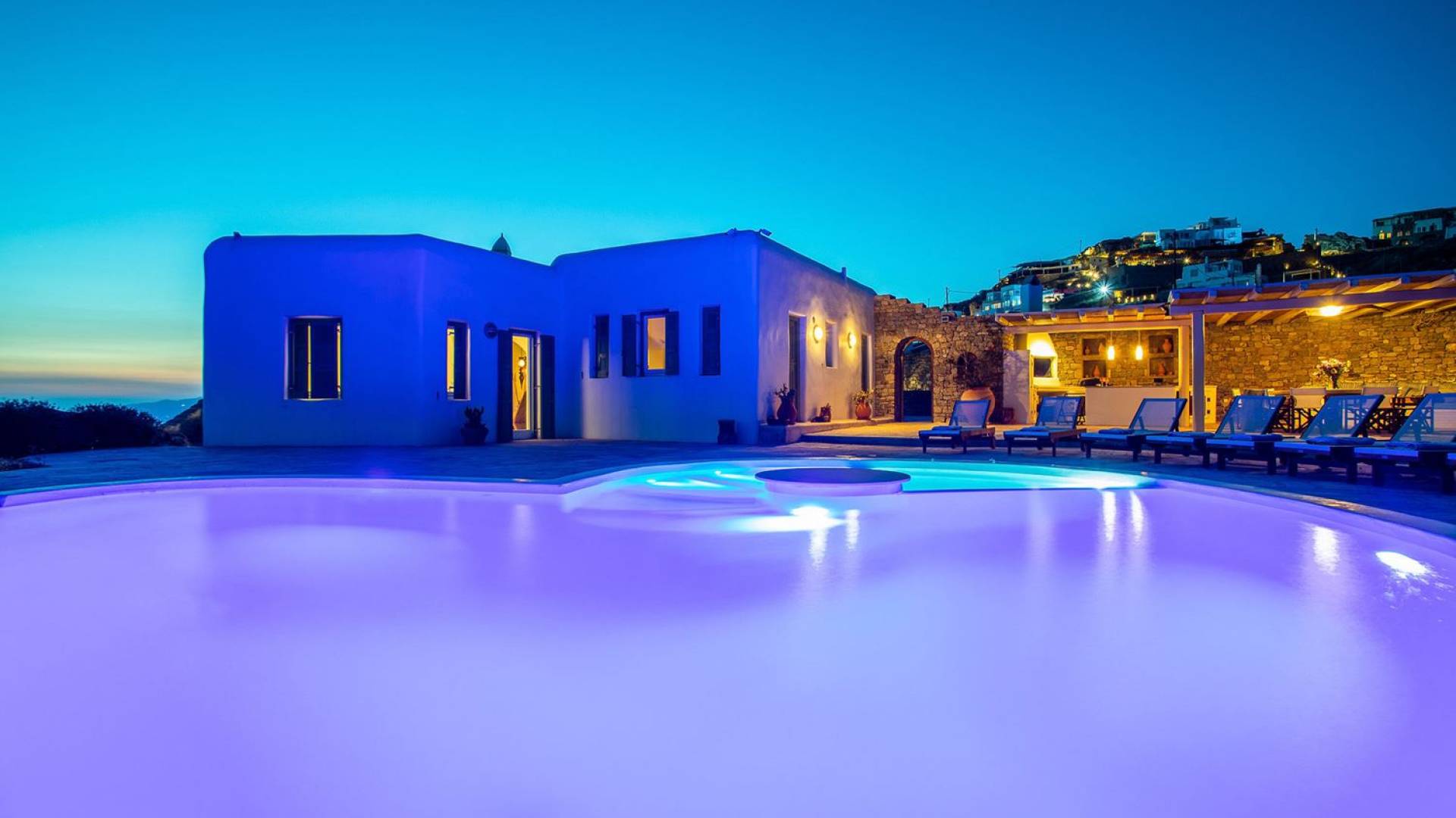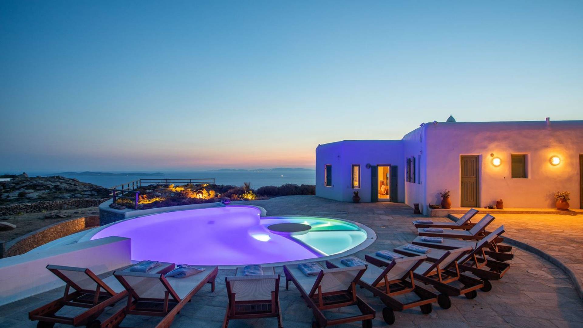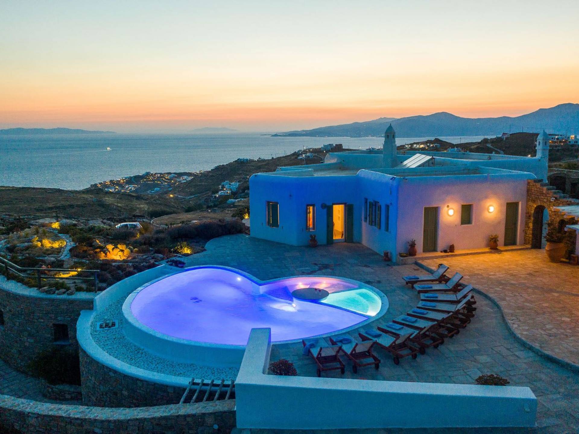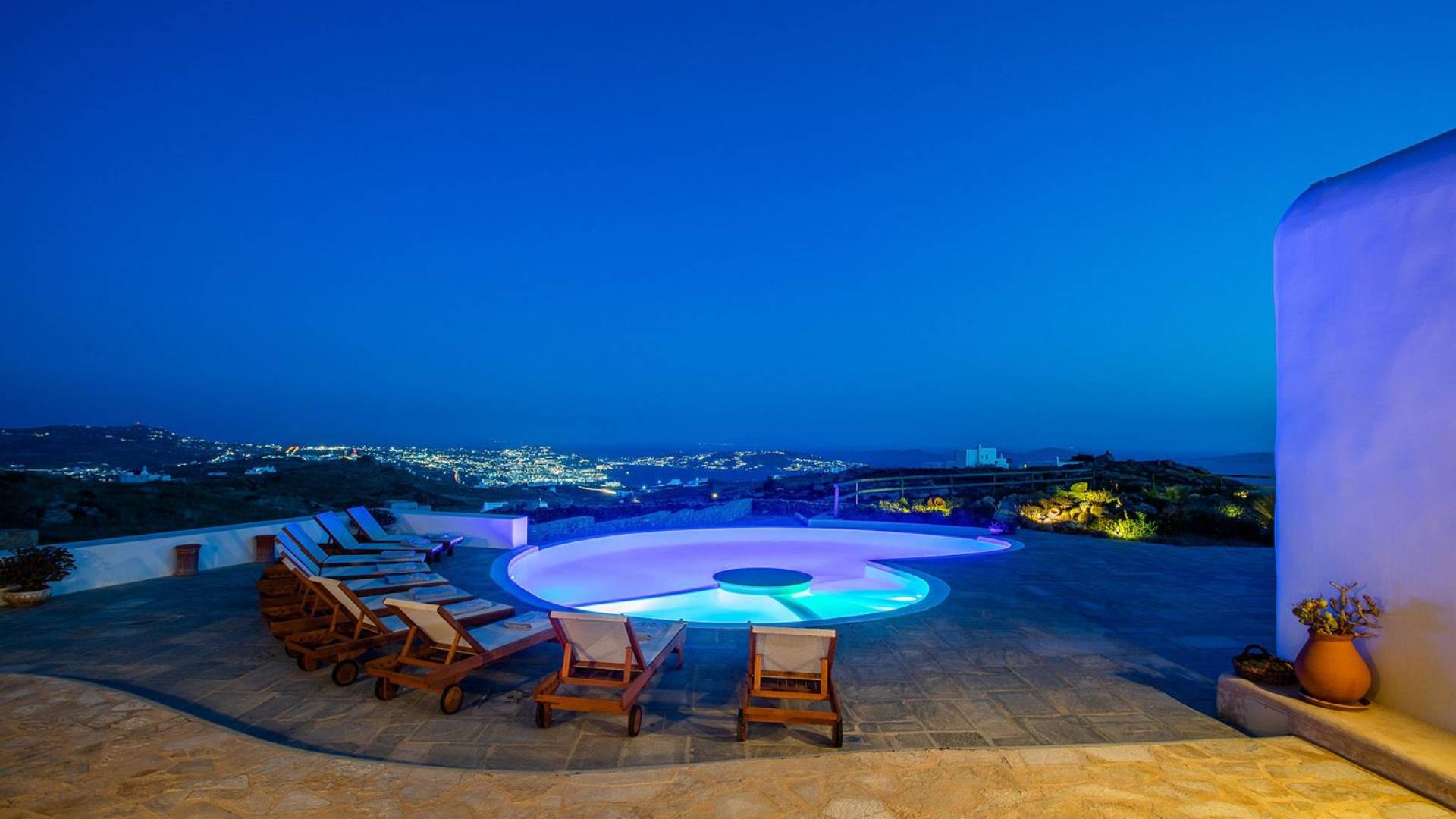Ηλιόλουστη όλη την ημέρα, αυτή η βίλα είναι ένα ειδυλλιακό καταφύγιο, με θέα στη Χώρα της Μυκόνου, τη Δήλο και το γειτονικό νησί της Τήνου. Όταν έρθει η μαγική στιγμή του εκπληκτικού ηλιοβασιλέματος της Μυκόνου, μπορείτε να απολαύσετε την πανοραμική θέα που αξίζει να νιώσετε είτε δίπλα στην πισίνα, στο σκιερό σαλόνι και χώρο για φαγητό με πέργκολα είτε στην ιδιωτικότητα του απομακρυσμένου χαριτωμένου πάγκου στον κήπο.