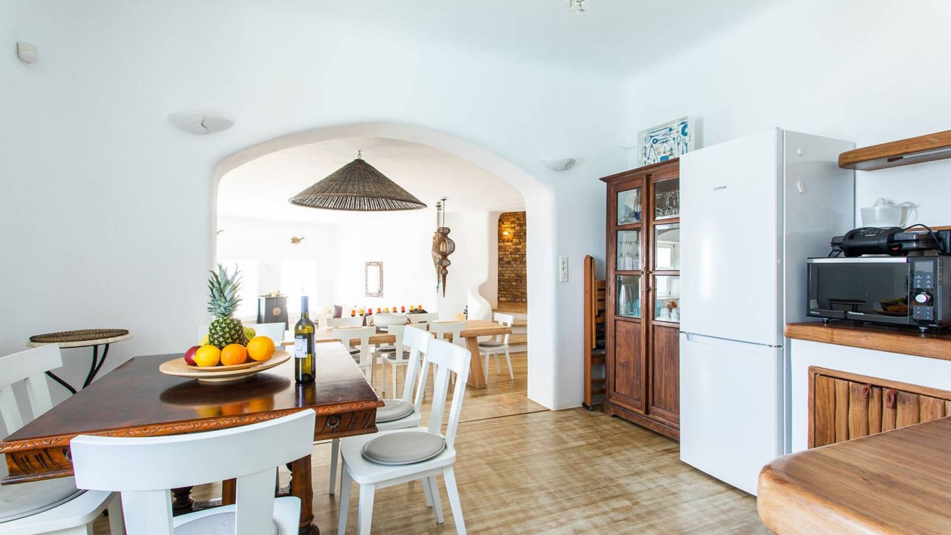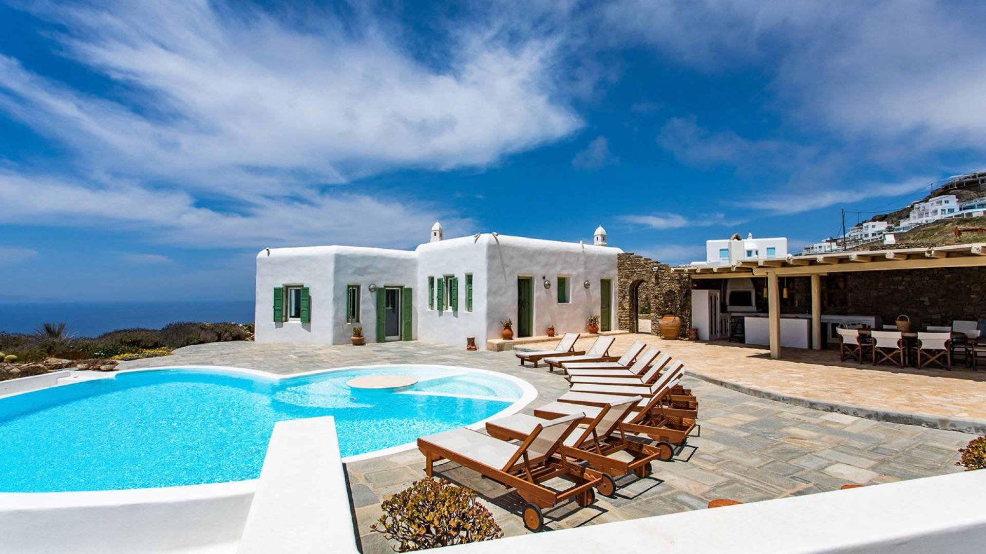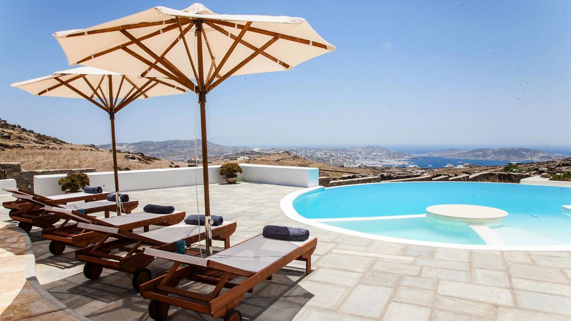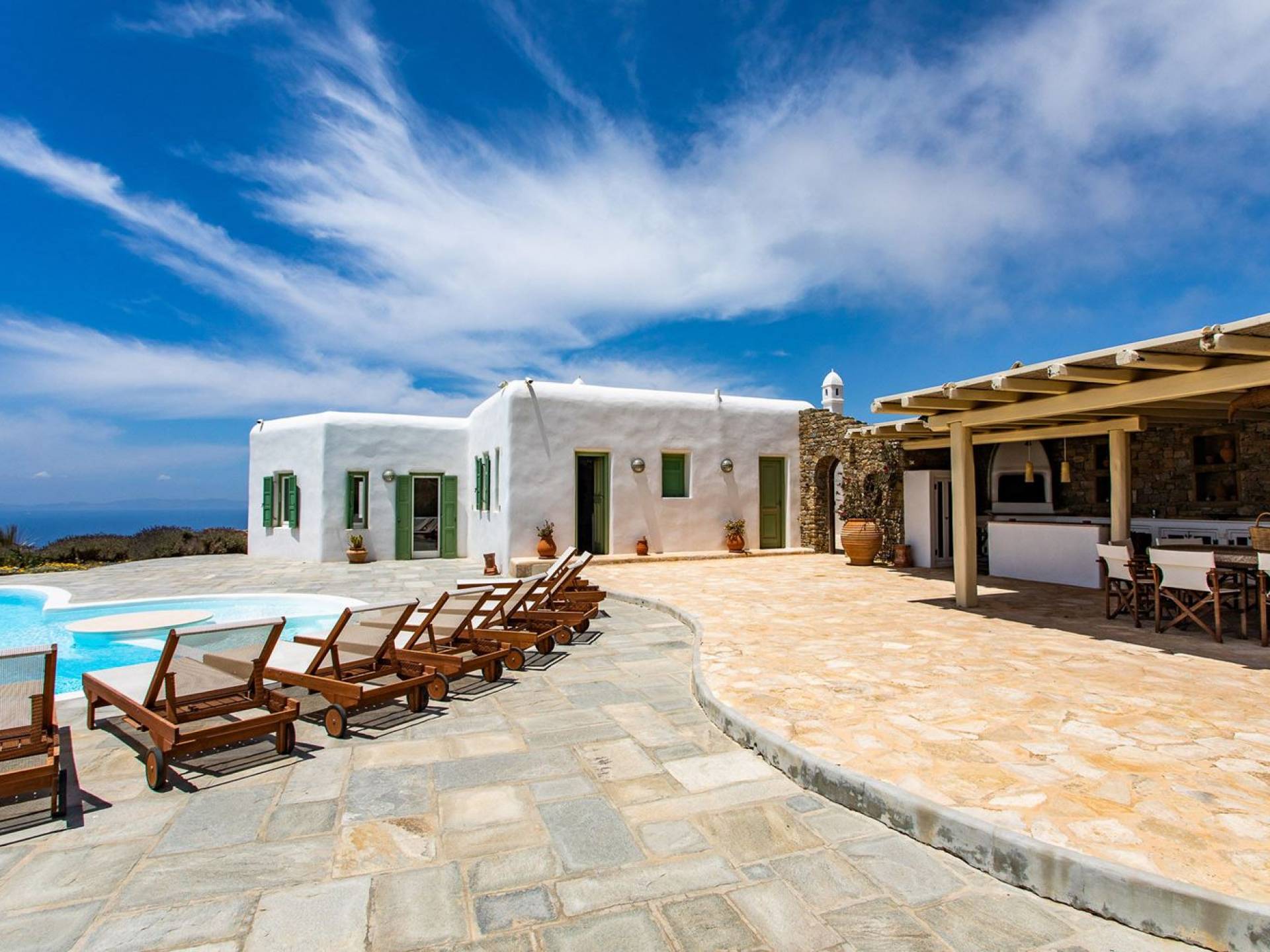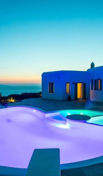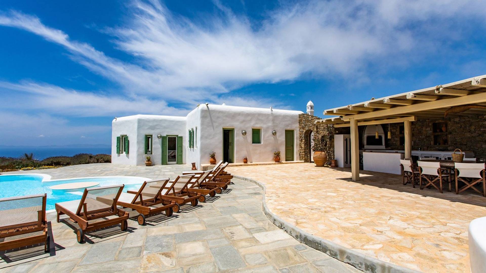 Ηλιόλουστη όλη την ημέρα, αυτή η βίλα είναι ένα ειδυλλιακό καταφύγιο, με θέα στη Χώρα της Μυκόνου, τη Δήλο και το γειτονικό νησί της Τήνου. Όταν έρθει η μαγική στιγμή του εκπληκτικού ηλιοβασιλέματος της Μυκόνου, μπορείτε να απολαύσετε την πανοραμική θέα που αξίζει να νιώσετε είτε δίπλα στην πισίνα, στο σκιερό σαλόνι και χώρο για φαγητό με πέργκολα είτε στην ιδιωτικότητα του απομακρυσμένου χαριτωμένου πάγκου στον κήπο.