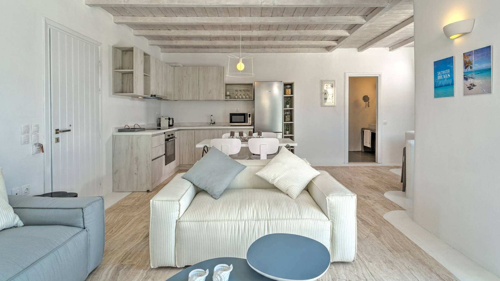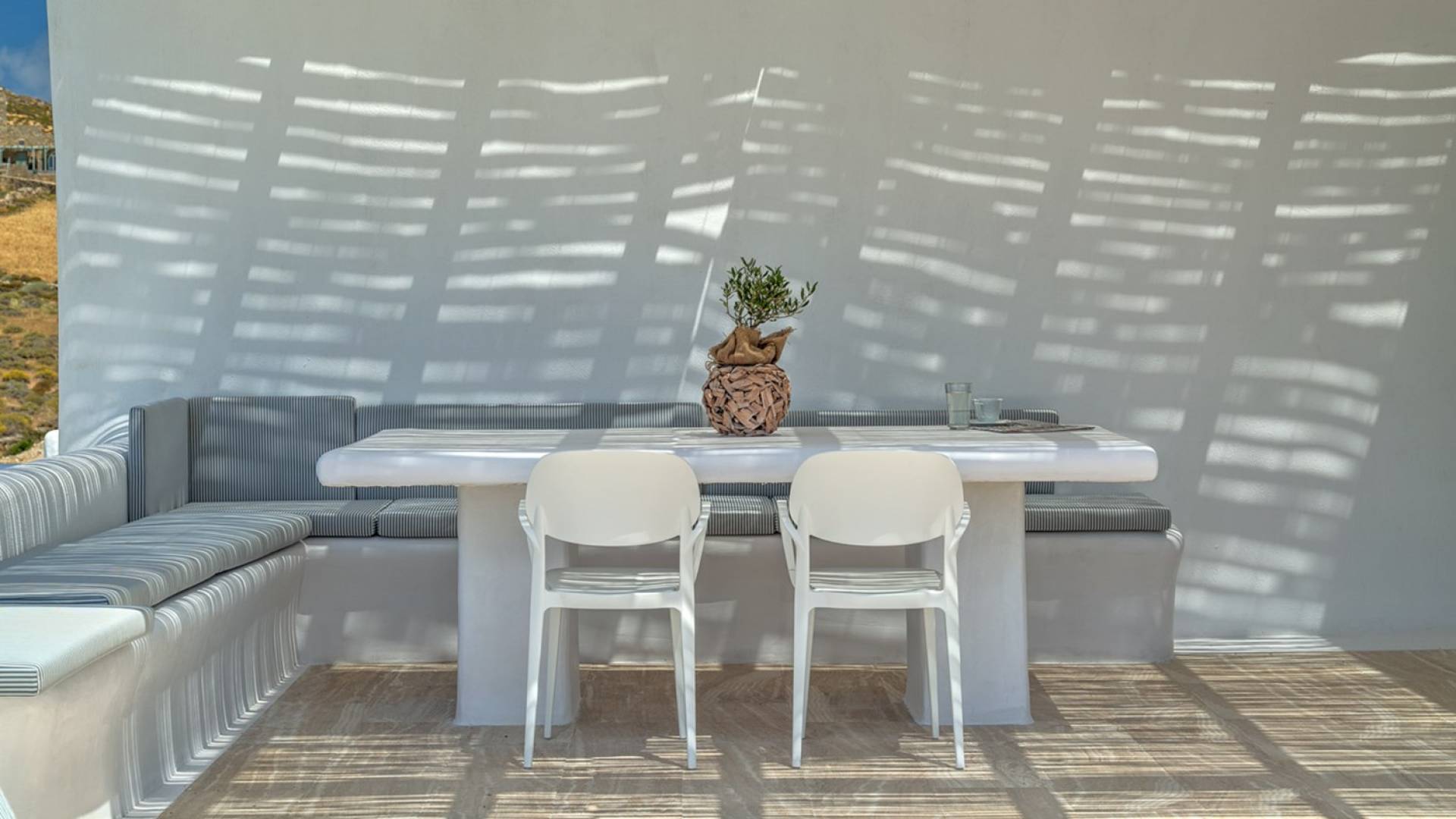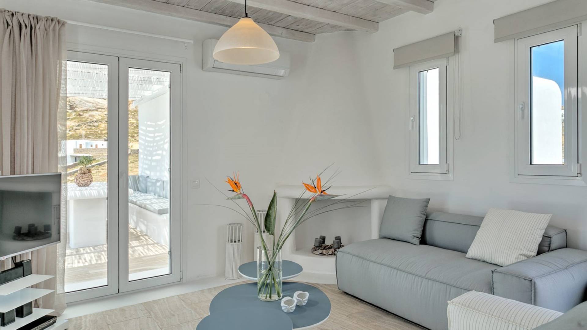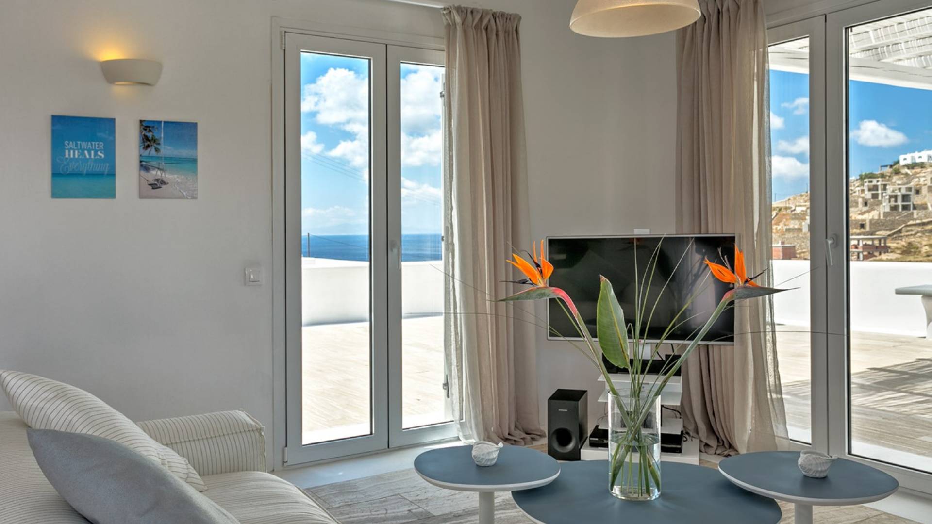 Φορτίστε τις μπαταρίες σας βουτώντας στο Αιγαίο Πέλαγος που βρίσκεται στα πόδια σας. Αυτή η εντυπωσιακή βίλα 2 ορόφων αποτελείται από 3 δίκλινα υπνοδωμάτια και 1 δίκλινο δωμάτιο με 2 μονά κρεβάτια, που την καθιστούν ιδανική για οικογένειες ή παρέες φίλων. Ένα όμορφα σχεδιασμένο σαλόνι, 2 ευρύχωρα μπάνια, κουζίνα με όλες τις ανέσεις που χρειάζεστε & μεγάλη τραπεζαρία. Το πραγματικό αποκορύφωμα όμως αυτής της βίλας είναι το μεγάλο αίθριο και η ιδιωτική πισίνα που προσφέρουν μια ιδανική τοποθεσία για στιγμές χαλάρωσης ή υπέροχες συγκεντρώσεις με φίλους.