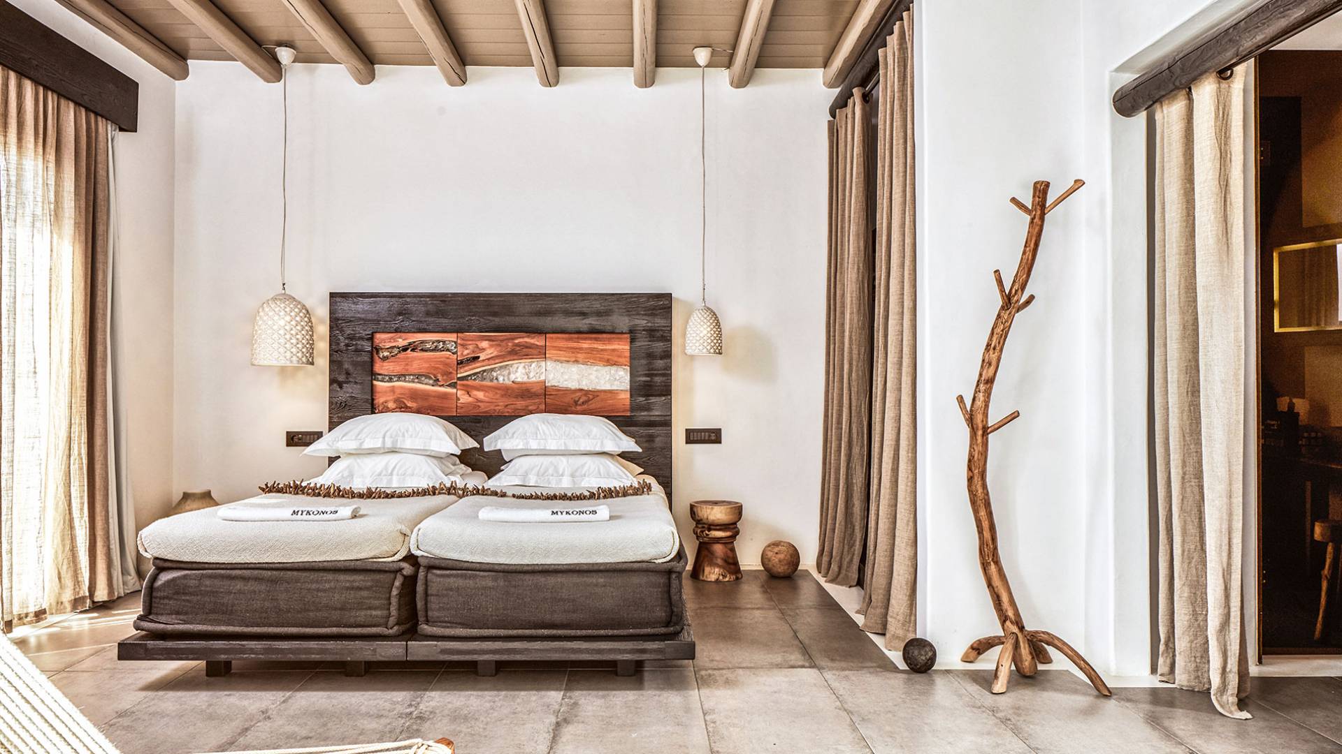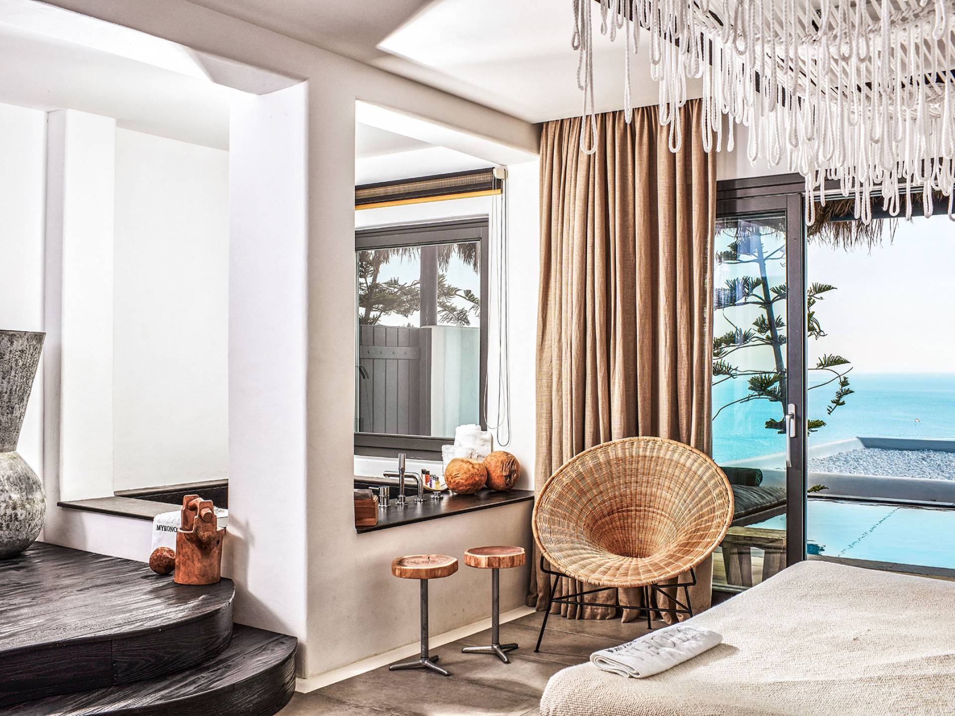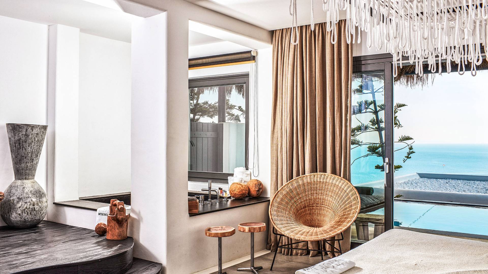 Πολυτελή superior δωμάτια με γενναιόδωρο χώρο 35μ² και ιδιωτική πλήρως επιπλωμένη βεράντα με υπαίθριο τζακούζι που προσφέρει πανοραμική θέα στη θάλασσα στην παραλία Ελιά στη Μύκονο. Μπάνια υψηλής αισθητικής με μπανιέρα και/ή ντους ψιλής βροχής και μπορούν να φιλοξενήσουν έως τρεις ενήλικες ή δύο ενήλικες και ένα παιδί έως 12 ετών.