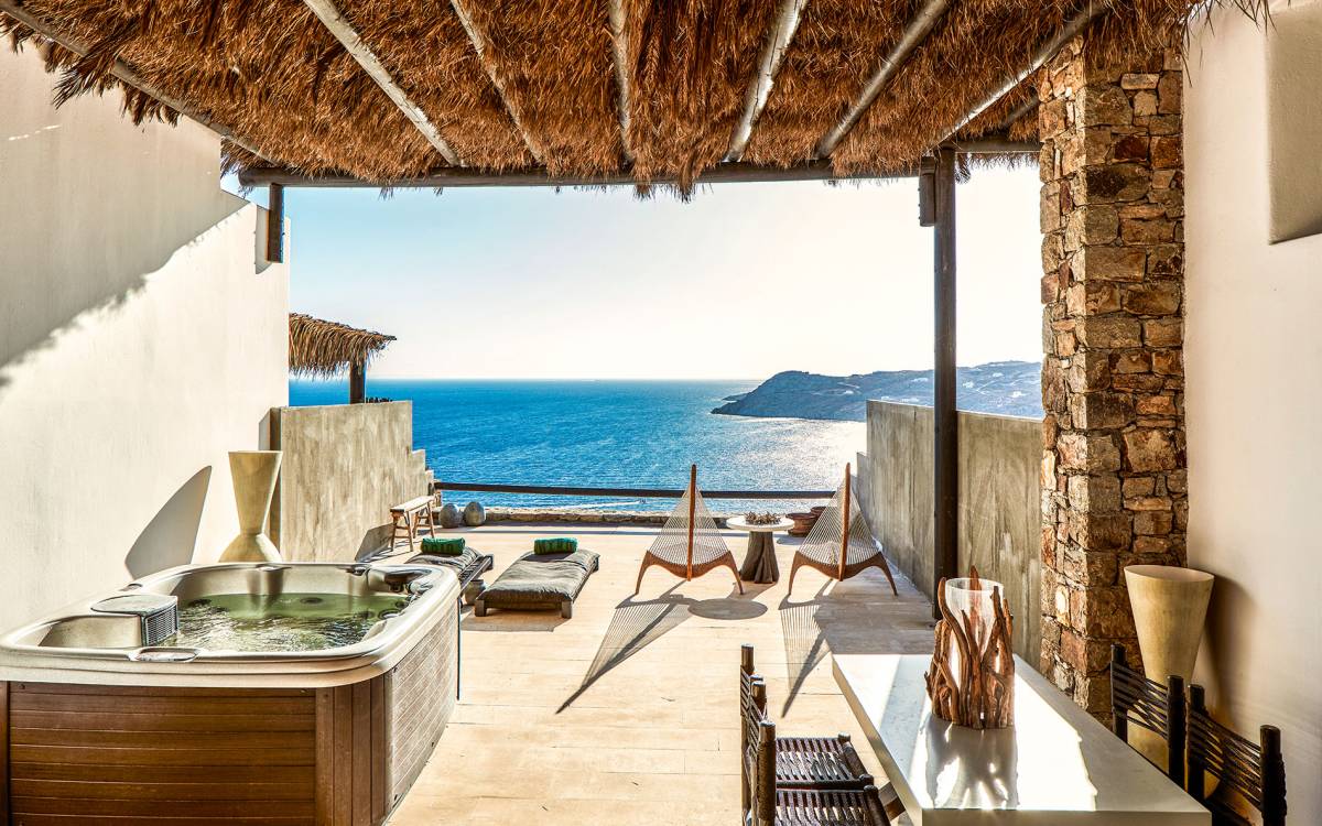 Heavenly Jacuzzi Suite at Myconian Utopia