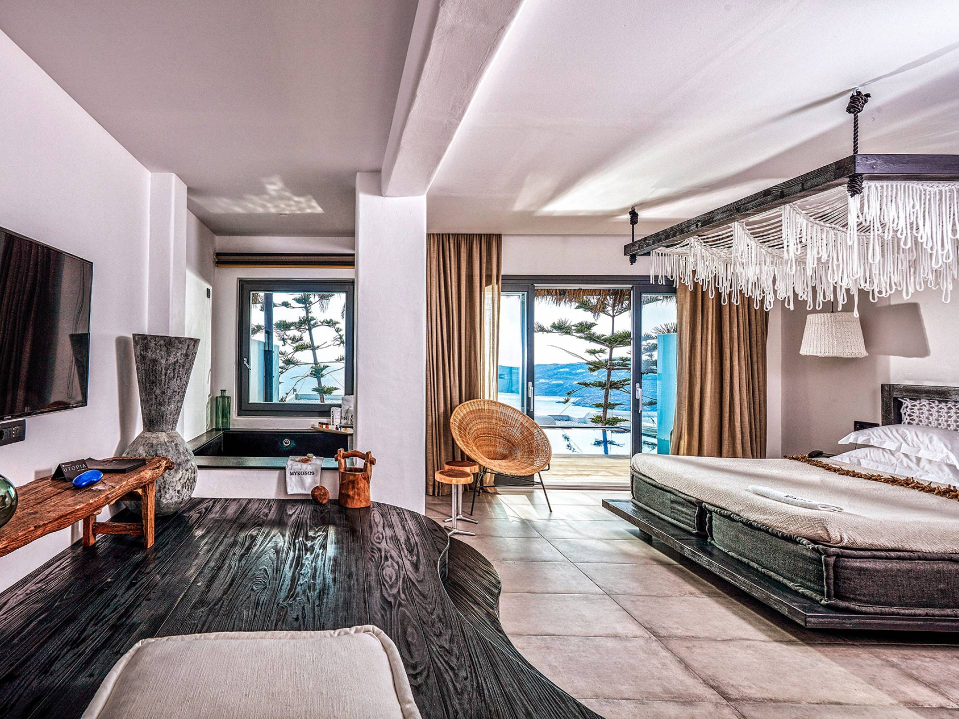 Συνδυάζοντας την εκπληκτική μεγαλοπρέπεια της παρθένας φύσης με την πολυπλοκότητα του σύγχρονου σχεδιασμού, το Utopia ξεχωρίζει ως το αποκορύφωμα της αποκλειστικής, εξατομικευμένης φιλοξενίας στο νησί της Μυκόνου. Εκτός από την εκπληκτική θέα στη θάλασσα και την παγκόσμιας κλάσης σουίτες και καταλύματα βίλας, το Utopia διαθέτει άψογες εγκαταστάσεις, άψογες εξατομικευμένες υπηρεσίες, πολυτελείς θεραπείες θαλασσοθεραπείας σπα και γκουρμέ επιλογές φαγητού, εξασφαλίζοντας ότι όλοι οι επισκέπτες απολαμβάνουν μια μοναδική εμπειρία διακοπών 5 αστέρων. Σχεδιασμένο για να έχει μια «πράσινη συνείδηση», το Myconian Utopia Resort χτίστηκε με φιλικές προς το περιβάλλον τεχνικές, με κάθε σουίτα ή βίλα να έχει εξοπλιστεί σχολαστικά με τοπικά και βιώσιμα υλικά. Χειροποίητη πέτρα, πλούσια εξωτικά ξύλα και μεγάλη ποικιλία επίπλων επί παραγγελία συνδυάζουν τη σύγχρονη πολυτέλεια με την παραδοσιακή δεξιοτεχνία για να σας φέρουν αυτό που μπορεί να περιγραφεί μόνο ως καταφύγιο για τις αισθήσεις σε έναν ονειρεμένο προορισμό.