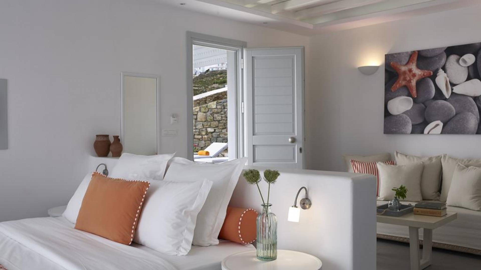 Το Villa Asteria στο San Marco Hotel Mykonos είναι μια βίλα ενιαίας διαρρύθμισης με ένα υπνοδωμάτιο στον κόλπο των Χουλακίων, στη Μύκονο, με καθιστικό, μπάνιο και WC. Αυτή η πολυτελής βίλα στη Μύκονο διαθέτει τη δική της ιδιωτική πισίνα καθώς και μια ανοιχτή πισίνα για ειδικές εκδηλώσεις.