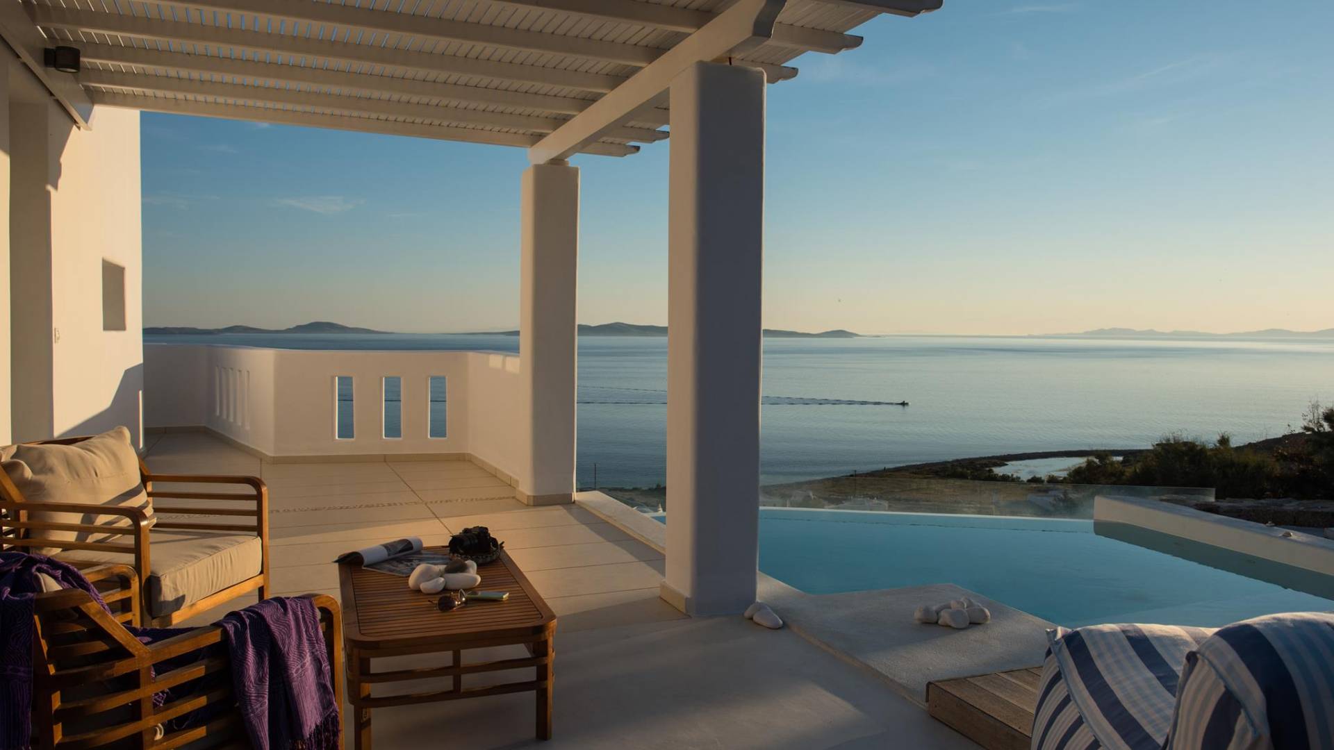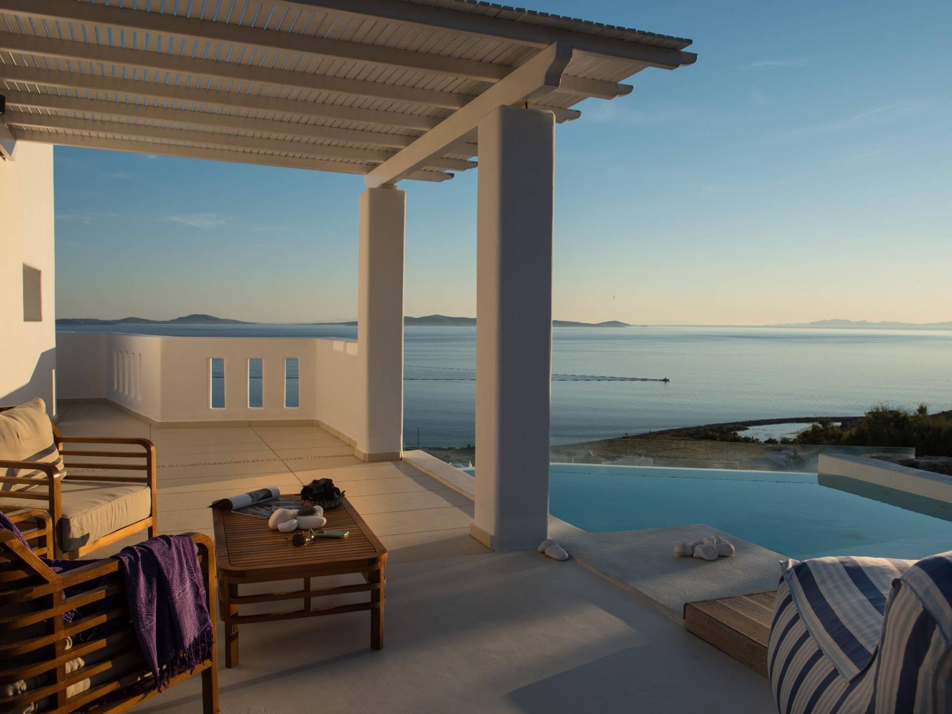 Χαρίστε στον εαυτό σας ένα κοκτέιλ δίπλα στην ιδιωτική σας πισίνα, παρακολουθώντας το καταπληκτικό ηλιοβασίλεμα πάνω από το Αιγαίο πέλαγος, γνωρίζοντας ότι αξίζετε μόνο το απόλυτο.
