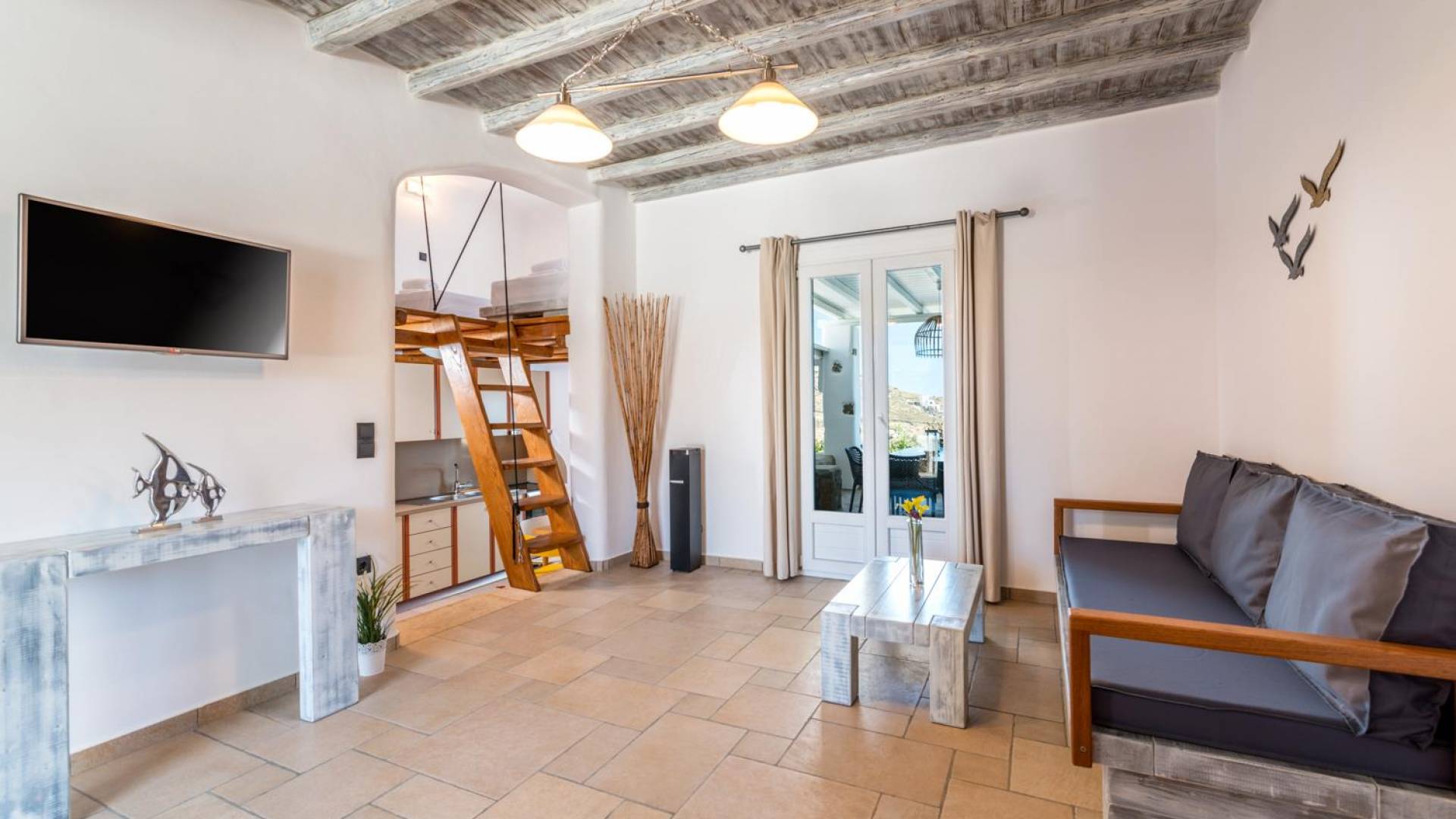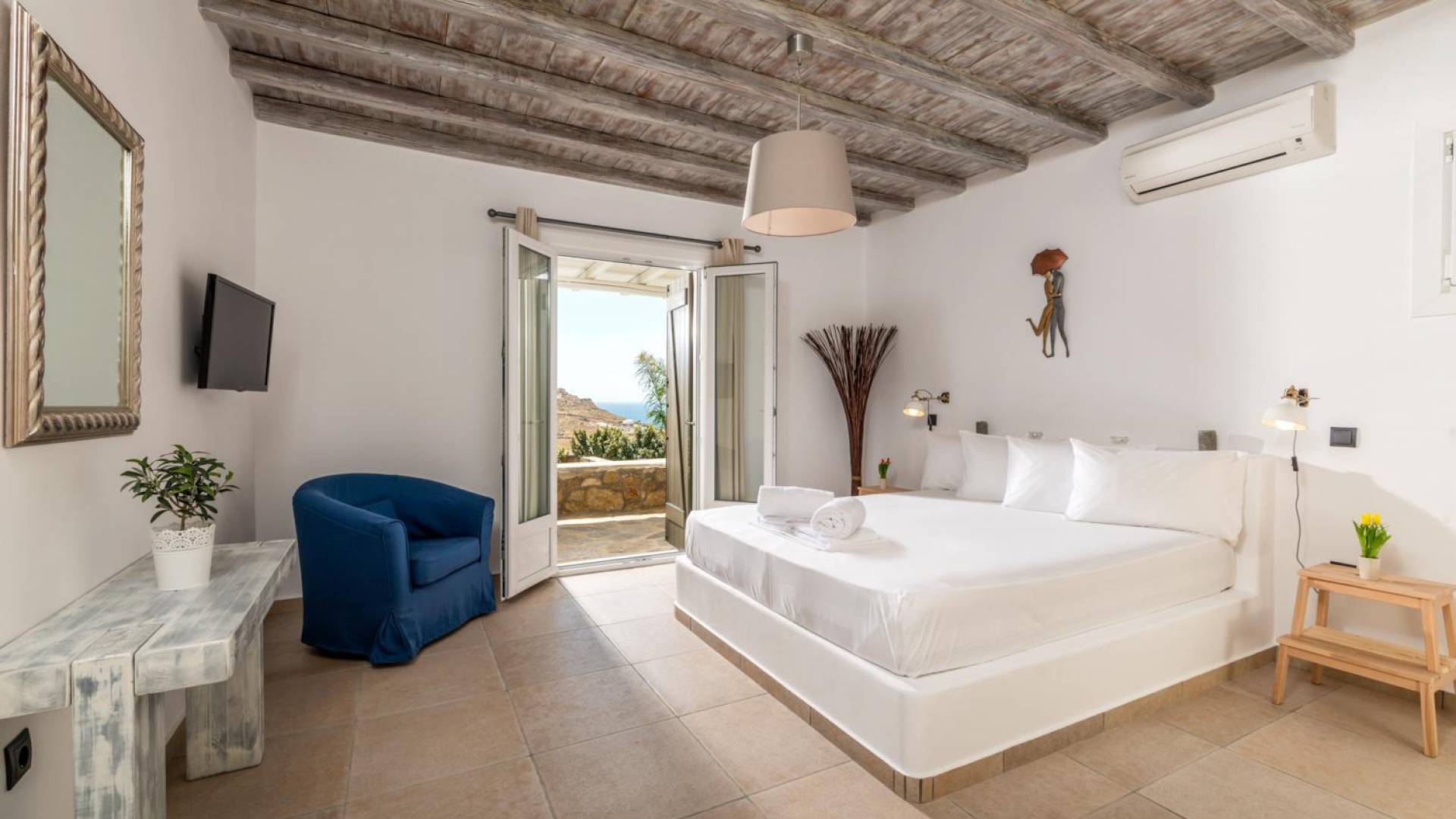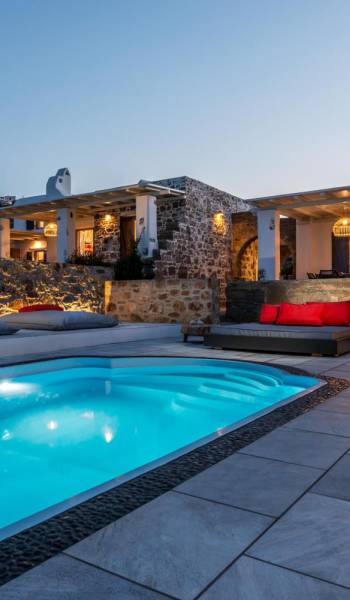 Όλες οι βίλες έχουν τη δυνατότητα να φιλοξενήσουν έξι άτομα (ένα επιπλέον στον Καναπέ) με εμβαδόν 85-95 τ.μ. και Ιδιωτικό χώρο στάθμευσης. Κάθε βίλα έχει δύο υπνοδωμάτια, δύο μπάνια, κουζίνα, άνετο πατάρι, ιδιωτική ευρύχωρη βεράντα και ιδιωτική πισίνα. Πλήρως εξοπλισμένο με τηλεόραση επίπεδης οθόνης WI-FI, κλιματισμό eV, οικιακές συσκευές, σύγχρονα προϊόντα μπάνιου και ύπνου. Το κυκλαδίτικο φως κυριαρχεί σε κάθε μία από αυτές τις εξαίσιες βίλες, συνυφασμένες με την παράδοση, το minimal design και τις σύγχρονες ανέσεις. Όμορφα κατασκευασμένο με ξύλινα δοκάρια, χειροποίητα έπιπλα, άνετες πολυθρόνες και υπέροχα τραπέζια, που δημιουργούν κομψό χαλαρωτικό περιβάλλον.