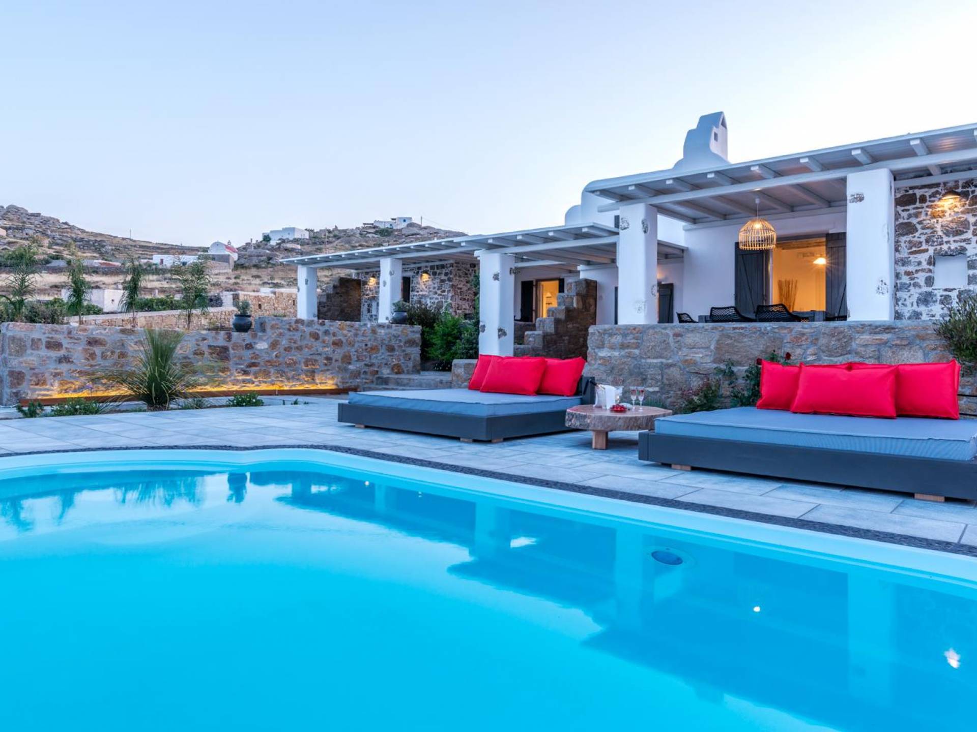 Βίλες Aurora Mykonos. Ένας ιδιωτικός παράδεισος στη Μύκονο. Οι τέσσερις πολυτελείς νεόκτιστες βίλες βρίσκονται σε απόσταση αναπνοής από τις πιο όμορφες παραλίες της Μυκόνου, όπως ο Καλαφάτης, η Λιά, το Καλό Λιβάδι, ο Φωκός και η Μερκιά. Χτισμένο με θέα τη θάλασσα στα ανατολικά, σε απόλυτη αρμονία με το φυσικό περιβάλλον, ακολουθώντας τις σαφείς μινιμαλιστικές γραμμές των Κυκλάδων.