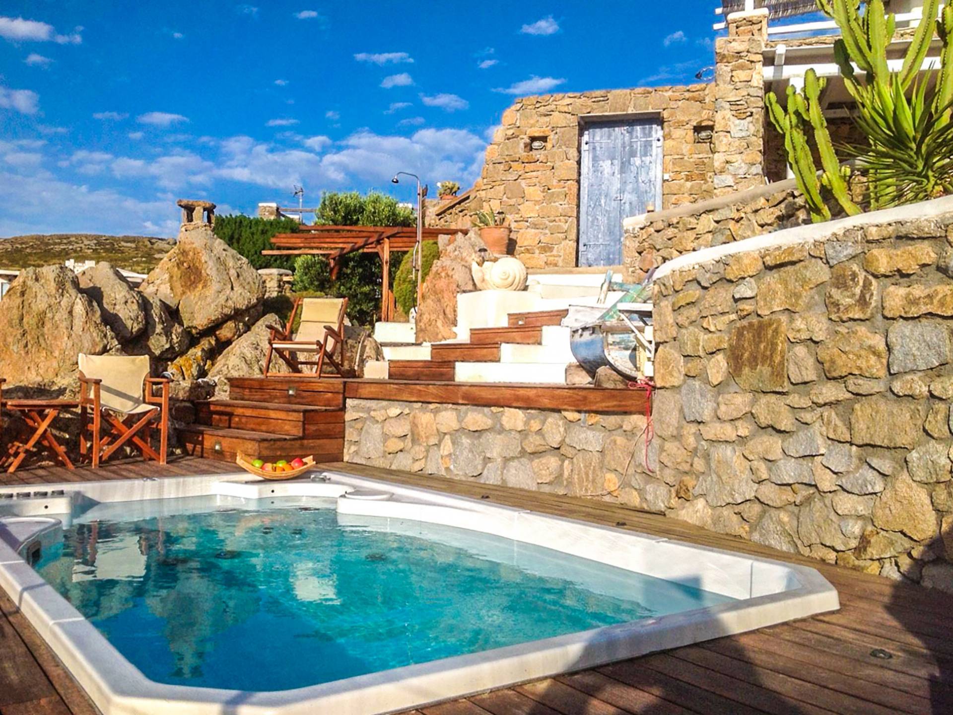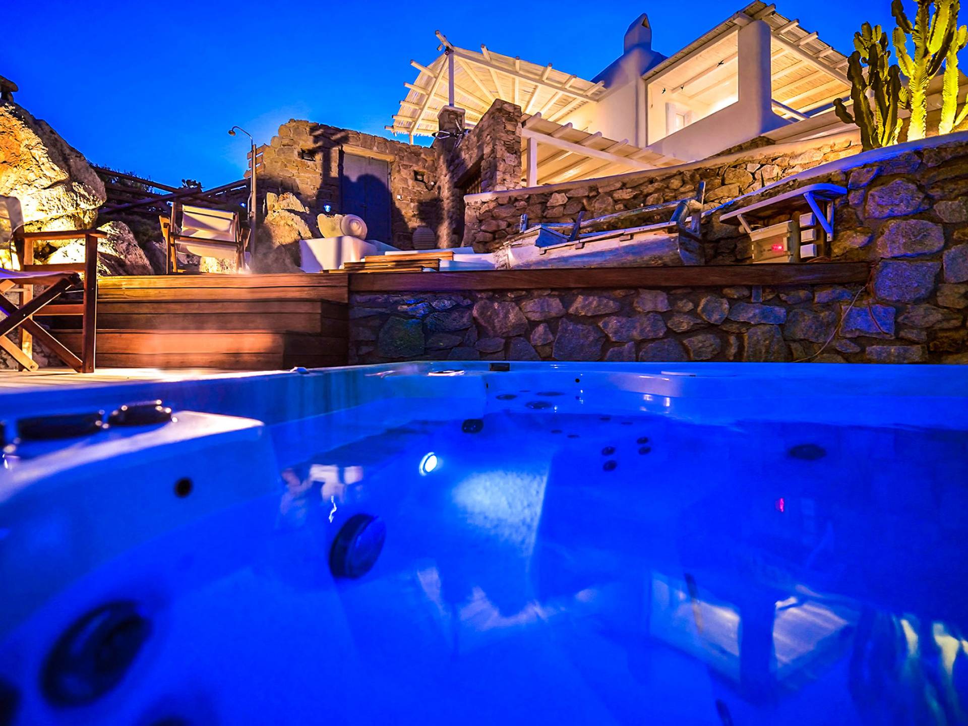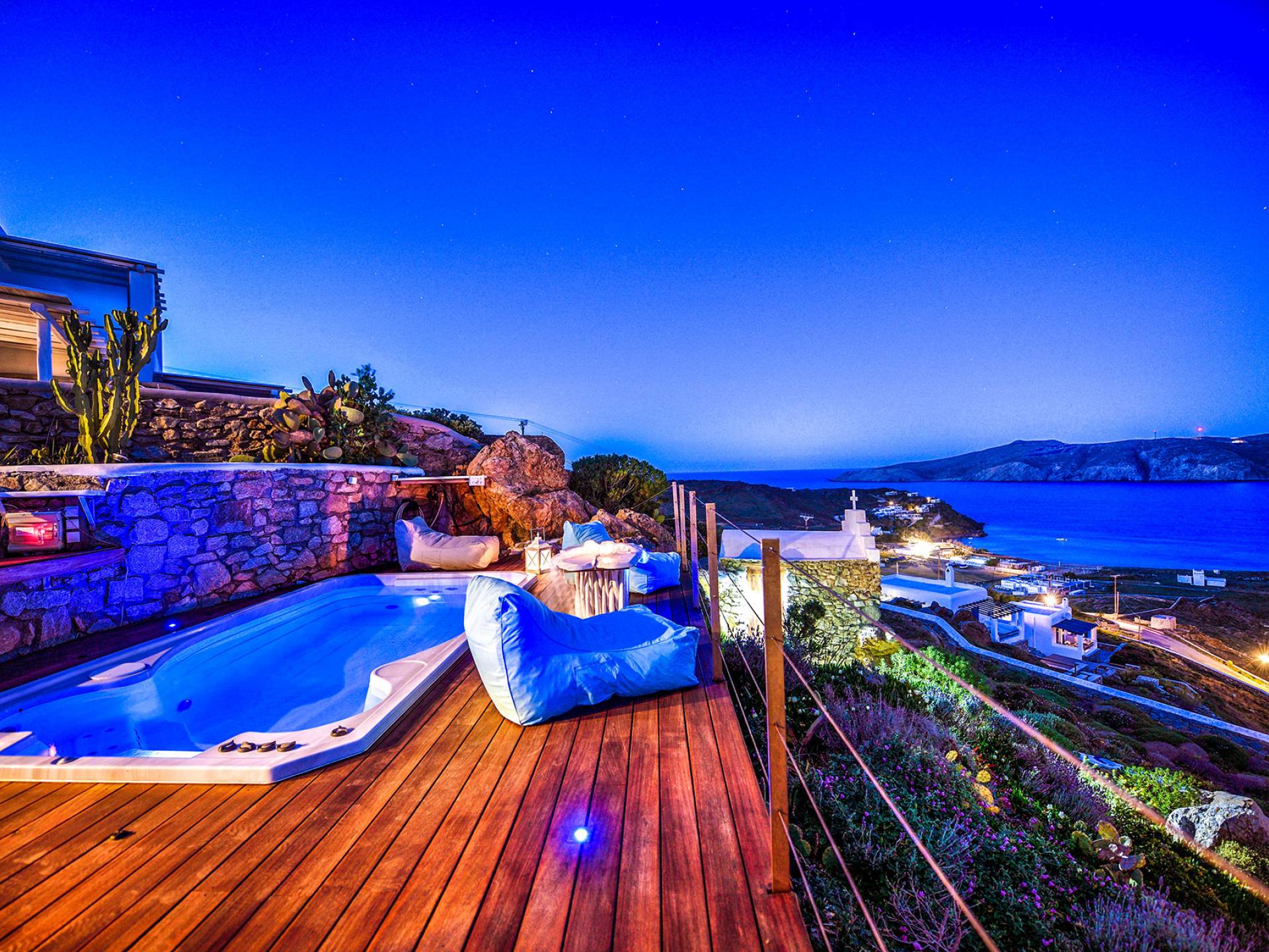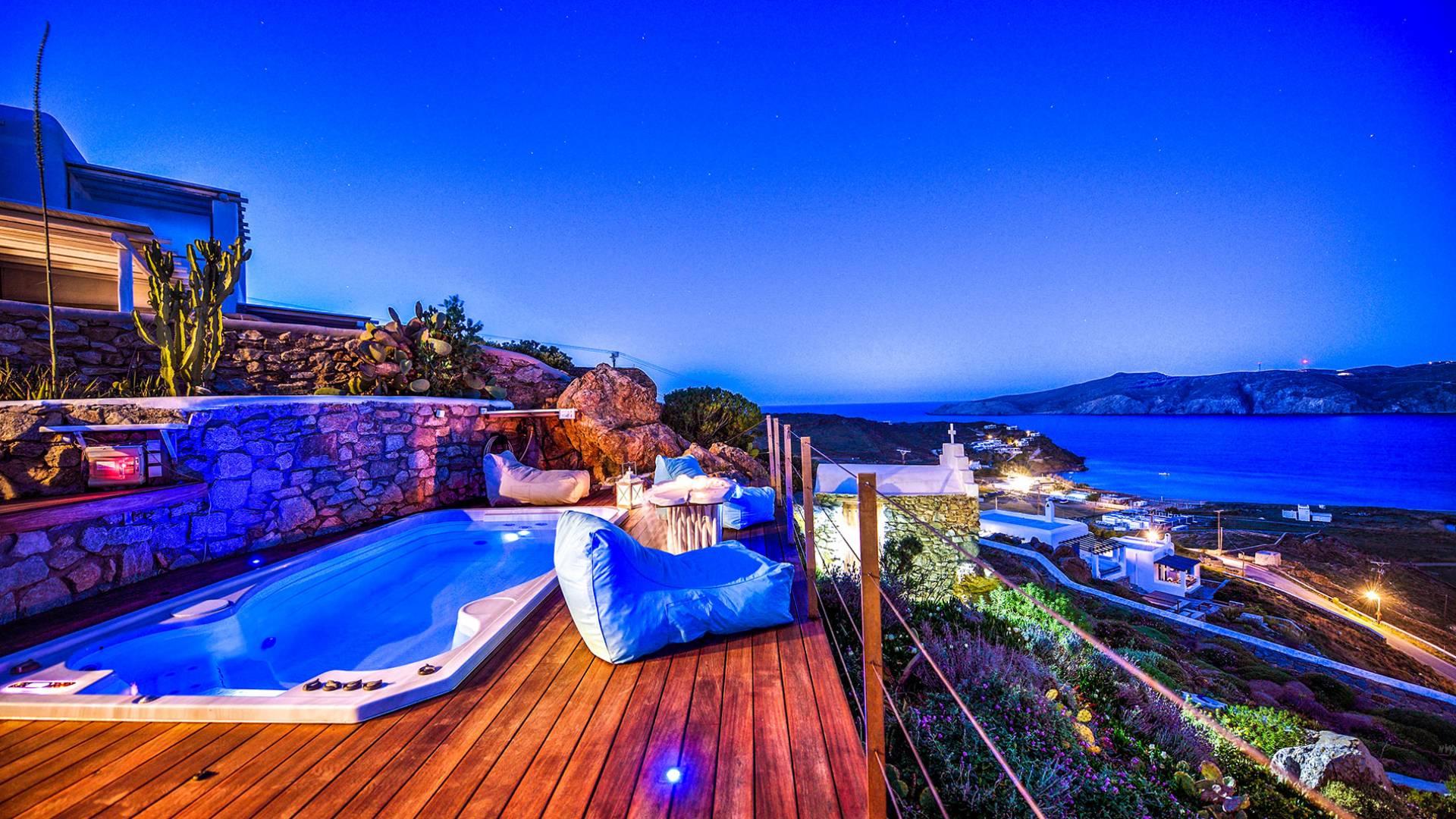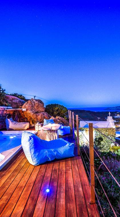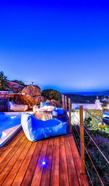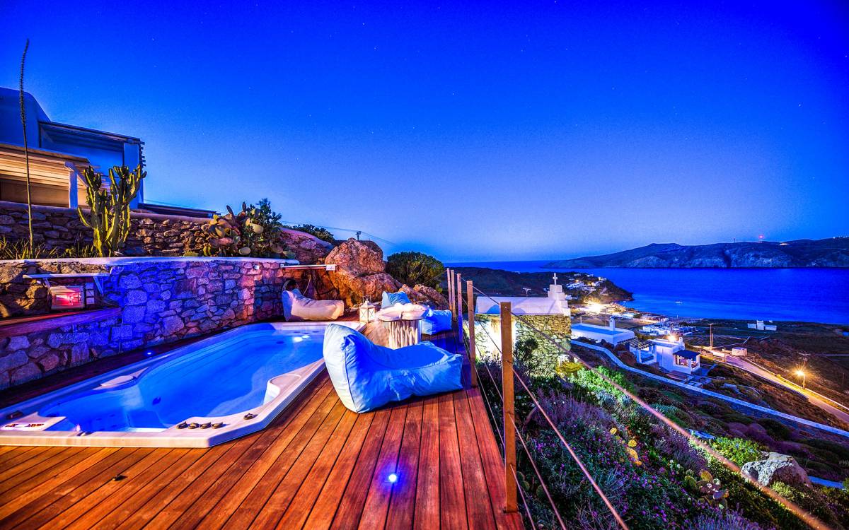 Η παραλία Πάνορμος είναι ένα από τα πιο hot σημεία της Μυκόνου. Τα κρυστάλλινα νερά, μια μαγευτική αμμώδης παραλία και το περίφημο μπαρ-εστιατόριο Principote για μοναδική παραθαλάσσια γαστρονομία είναι ένας κορυφαίος συνδυασμός που κανείς δεν μπορεί να αντισταθεί. Το Villa Akoya Blue στη Μύκονο με το lounge με υδρομασάζ είναι το ιδανικό μέρος για ρομαντικά ζευγάρια να δροσιστούν και να απολαύσουν ένα απογευματινό κοκτέιλ. Απολαμβάνω! Σημείωση: Ολόκληρο το συγκρότημα ή μέρος του μπορεί να προσφερθεί για να εξυπηρετήσει μια μεγαλύτερη ομάδα οικογενειών και φίλων.