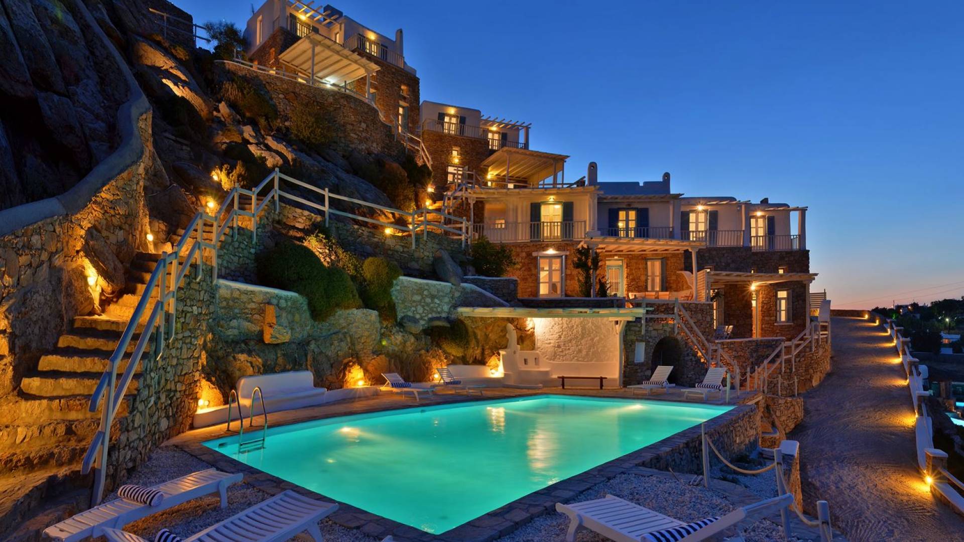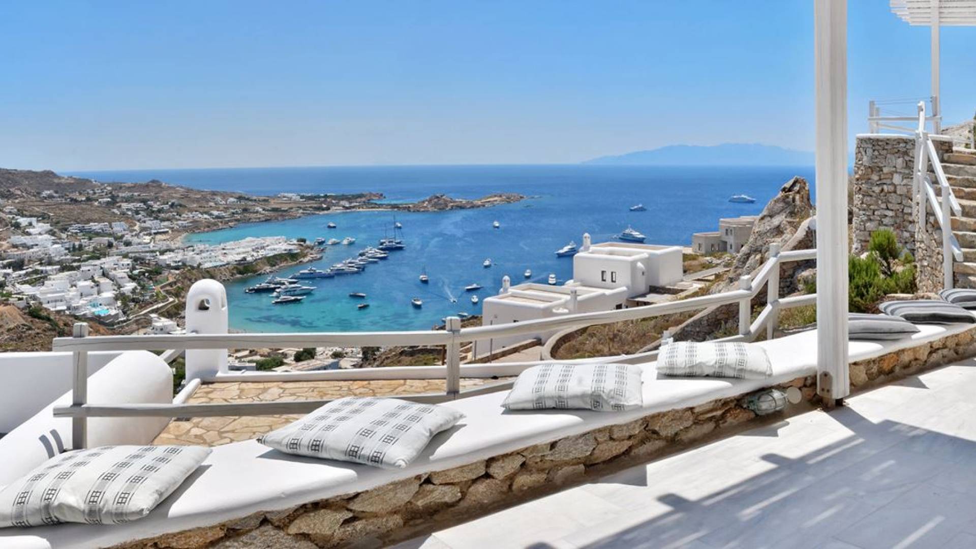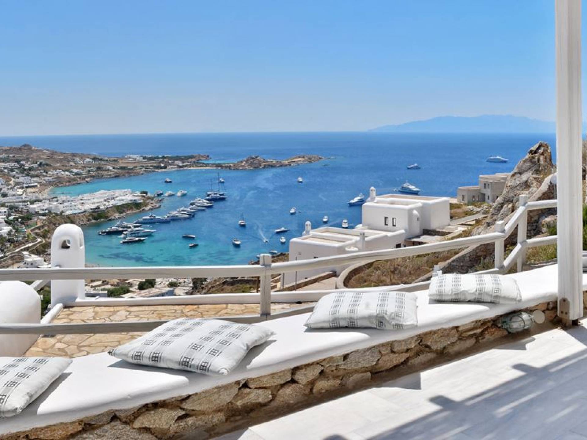 Στο πανέμορφο και τολμηρό νησί της Μυκόνου, διάσπαρτο σε μια απότομη βραχώδη πλαγιά πάνω από την πιο φημισμένη παραλία Ψαρού του νησιού, βρίσκεται η Villa Thelgo. ένα ασυναγώνιστο συγκρότημα τεσσάρων κομψών σπιτιών σχεδιασμένων γύρω από τις μυκονιάτικες παραδόσεις και αρχιτεκτονική με εκπληκτική θέα προς την Ψαρού, τον Πλατύ Γιαλό, την Παράγκα και το απέραντο γαλάζιο του Αιγαίου.