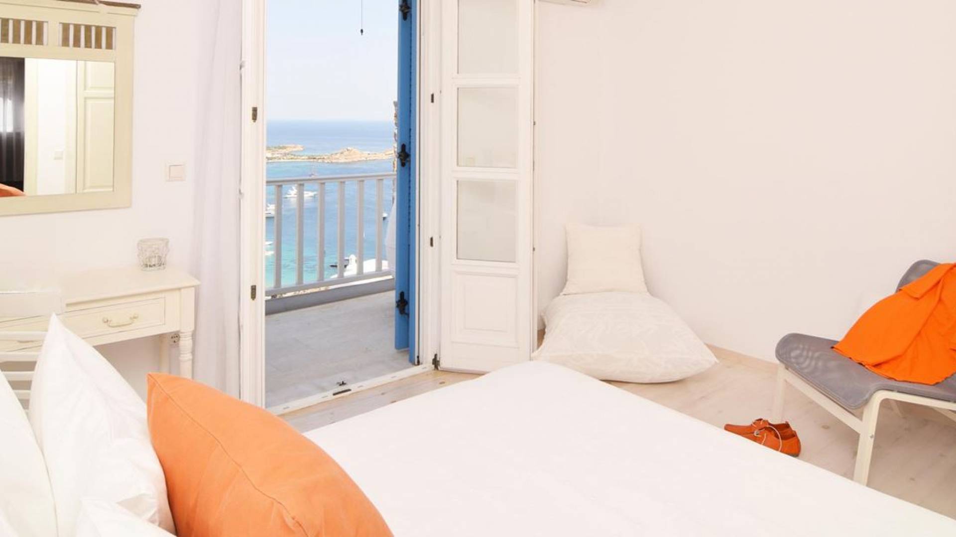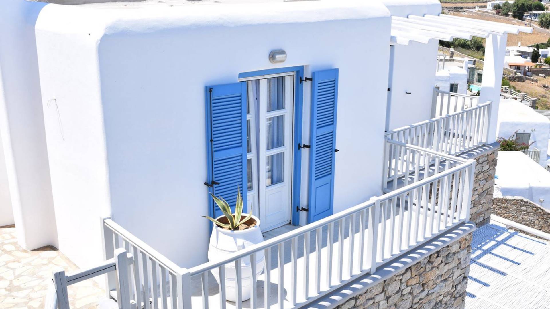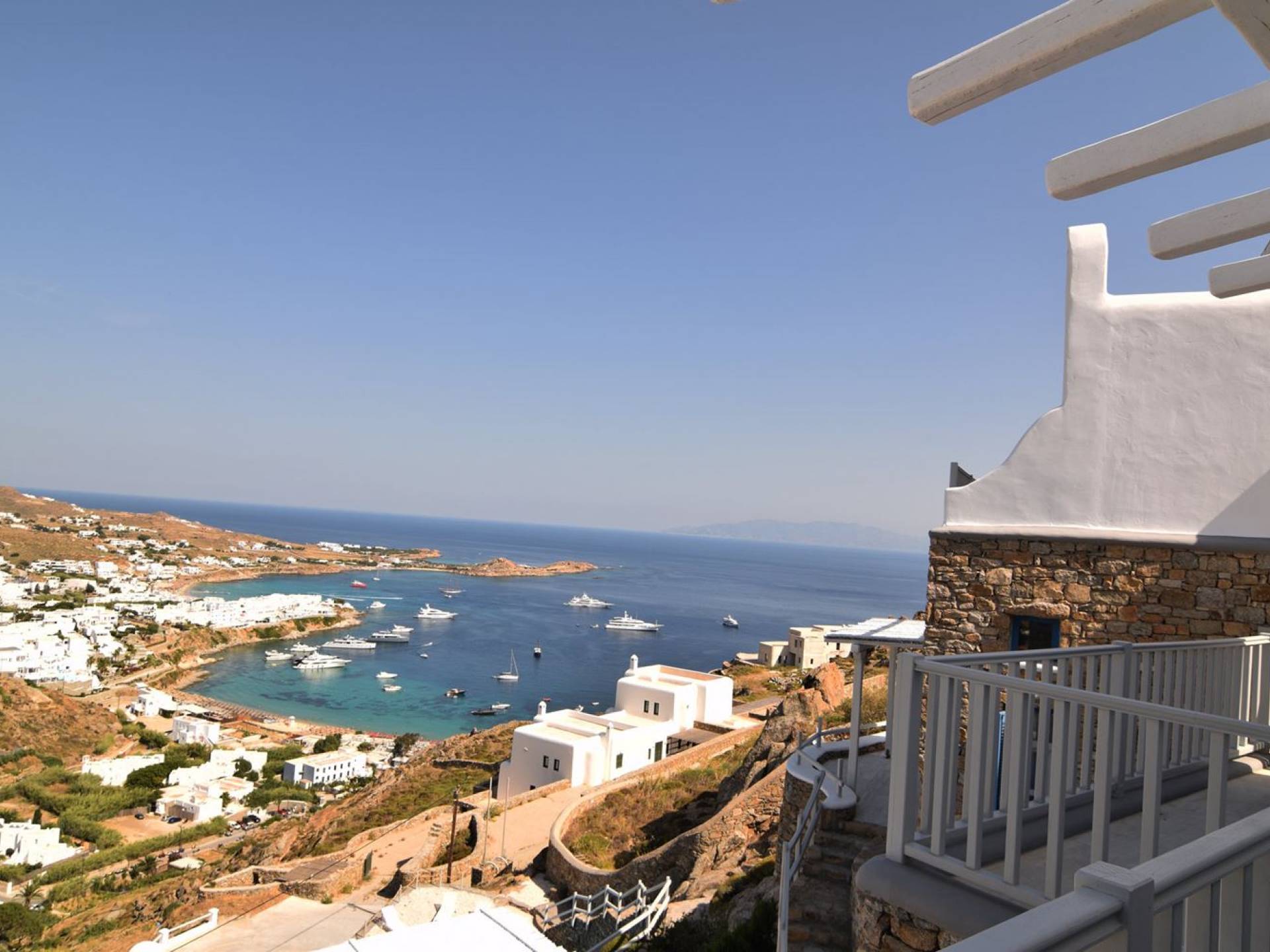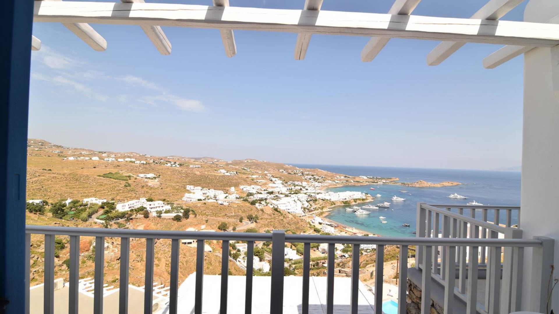 Στο πανέμορφο και τολμηρό νησί της Μυκόνου, διάσπαρτο σε μια απότομη βραχώδη πλαγιά πάνω από την πιο φημισμένη παραλία Ψαρού του νησιού, βρίσκεται η Villa Thelgo. ένα ασυναγώνιστο συγκρότημα τεσσάρων κομψών σπιτιών σχεδιασμένων γύρω από τις μυκονιάτικες παραδόσεις και αρχιτεκτονική με εκπληκτική θέα προς την Ψαρού, τον Πλατύ Γιαλό, την Παράγκα και το απέραντο γαλάζιο του Αιγαίου.