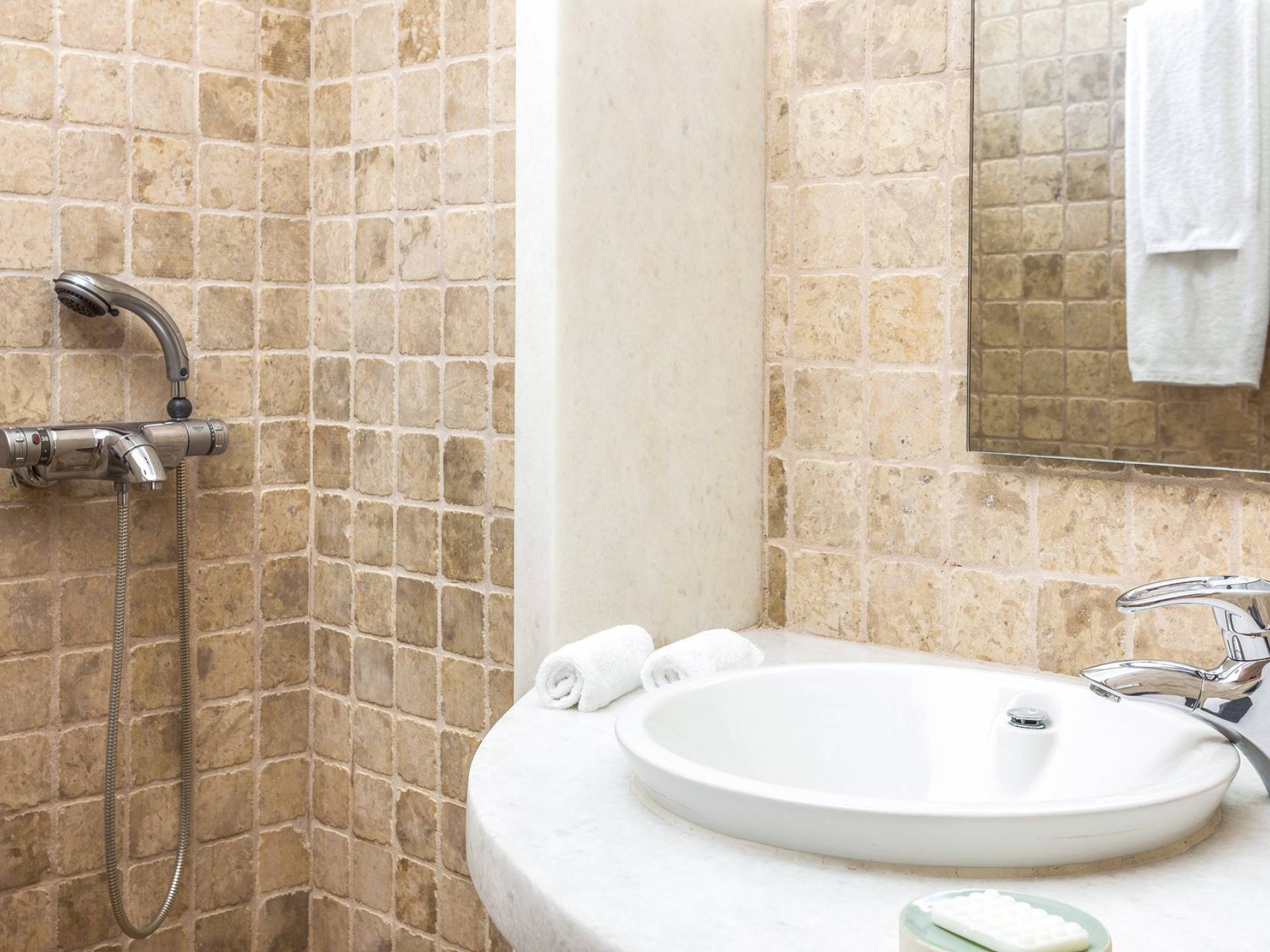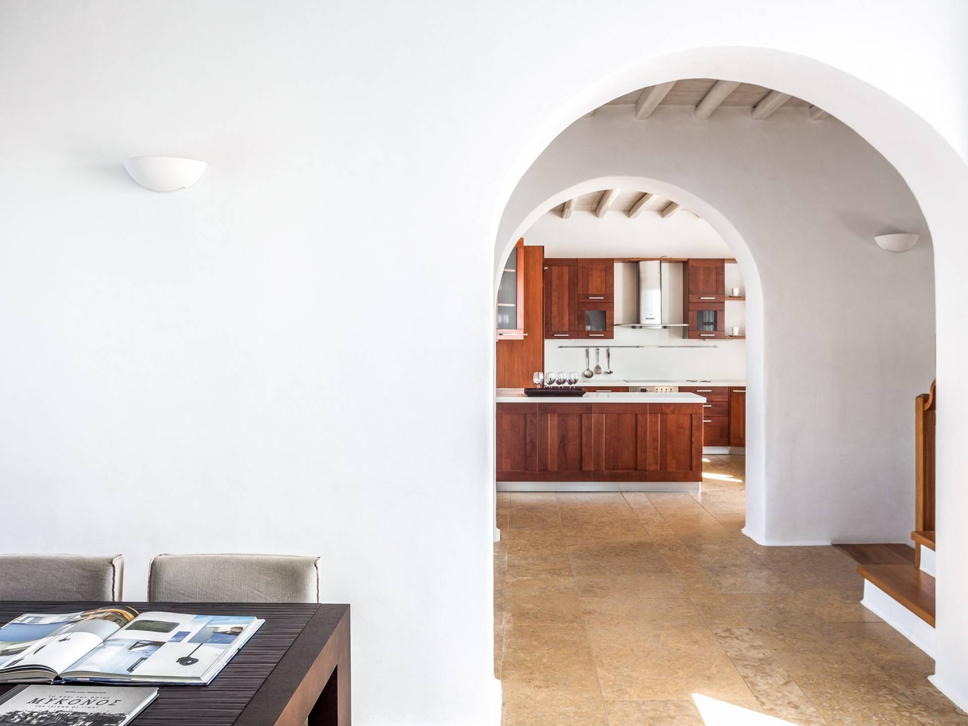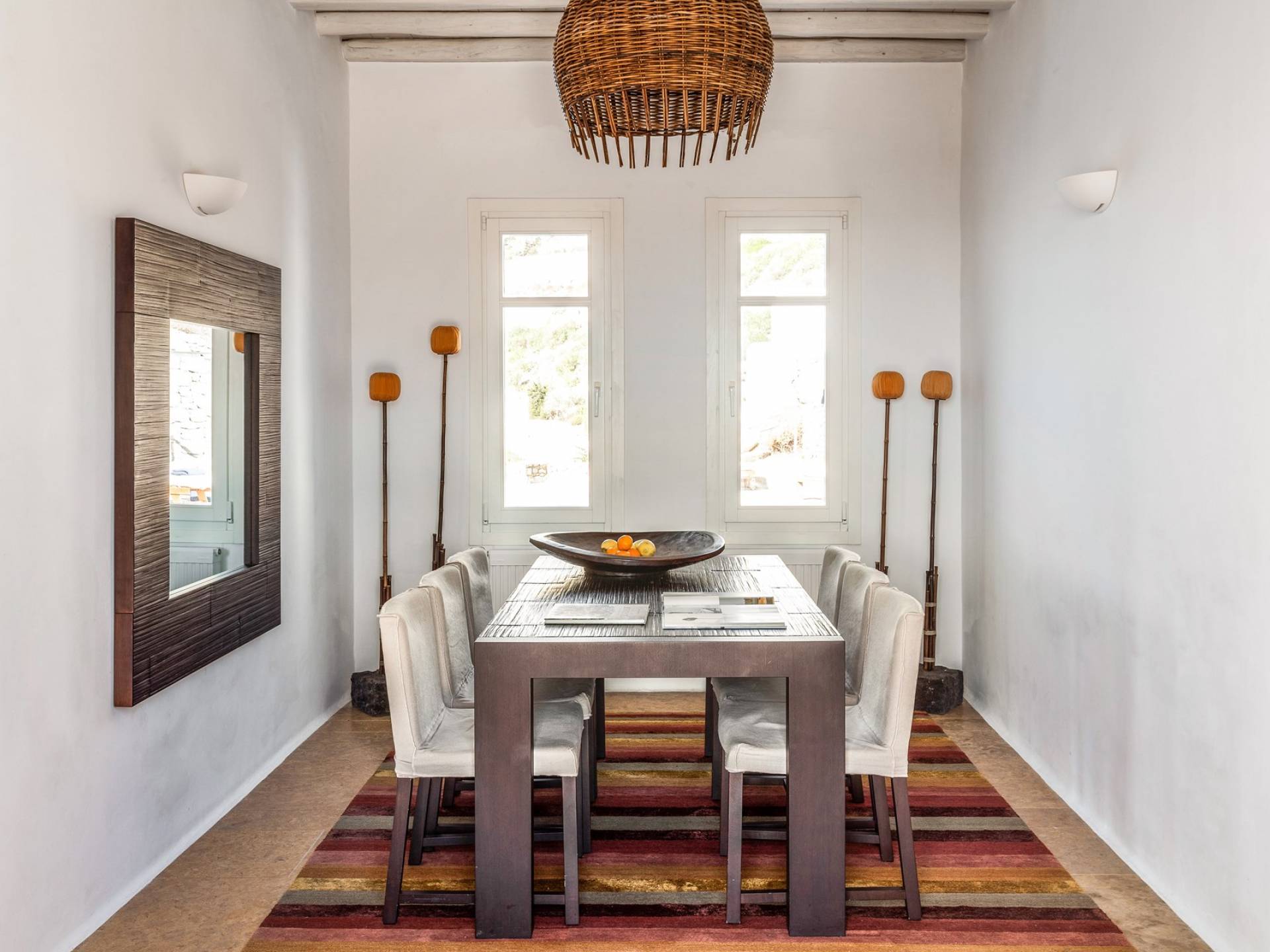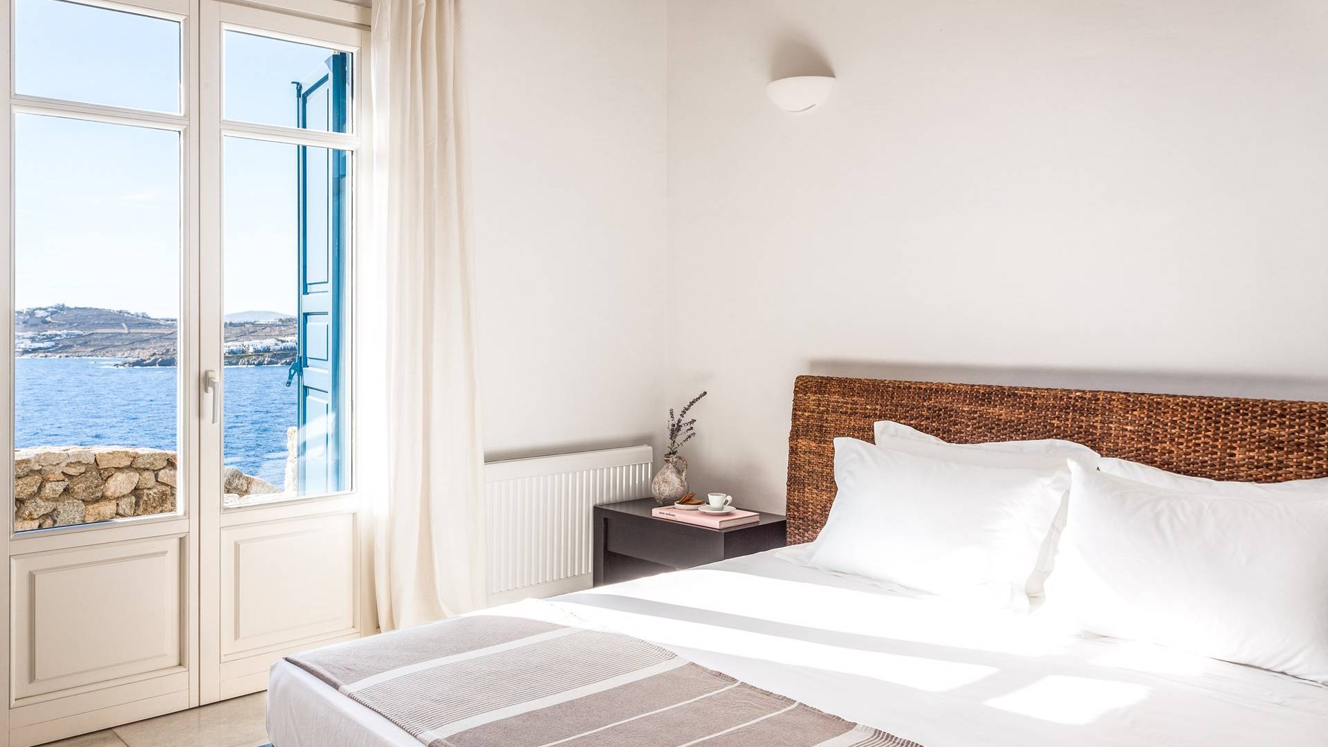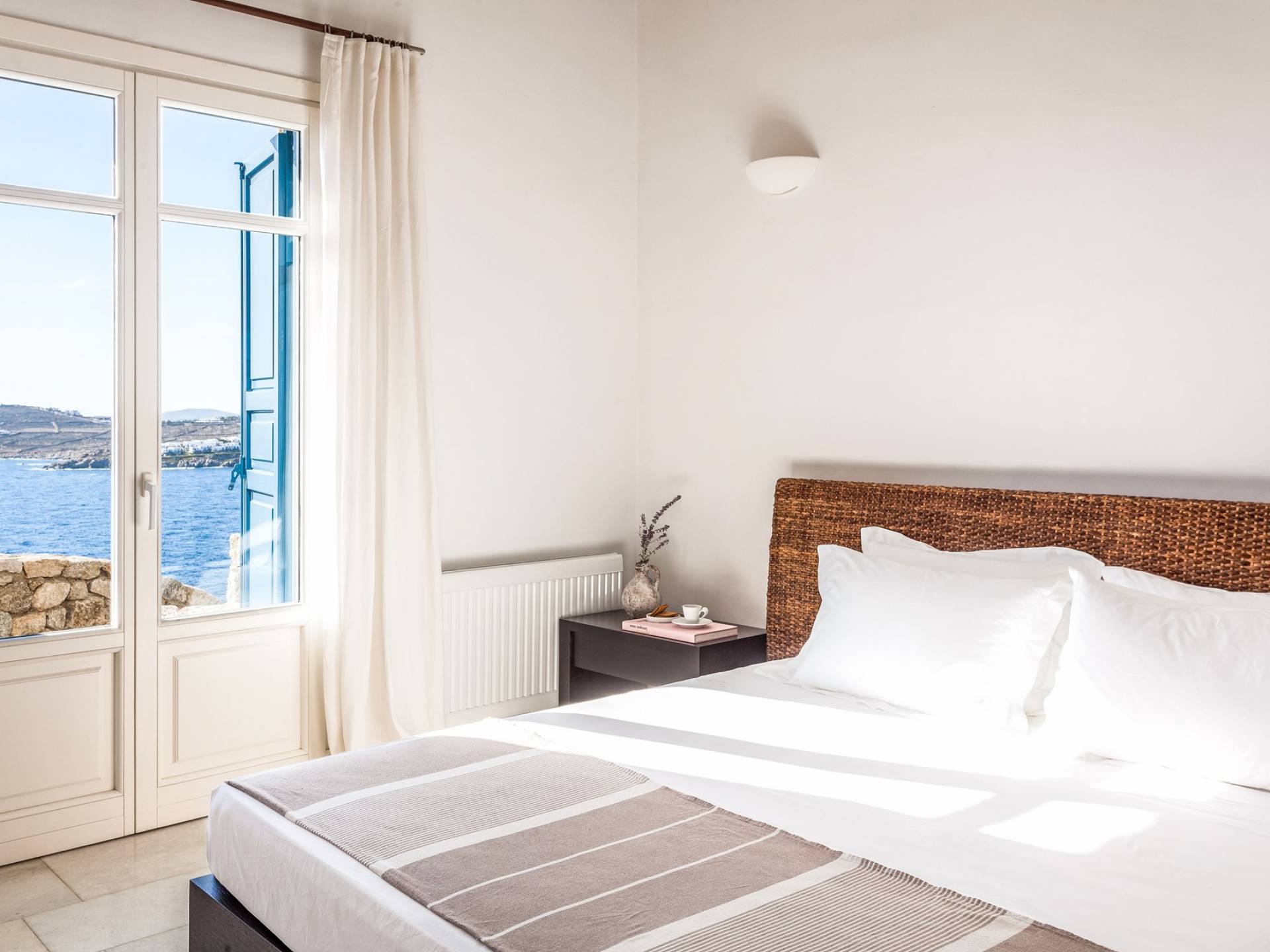 Στο επάνω επίπεδο υπάρχει ένα μεγάλο υπνοδωμάτιο με Super King w / en-suite μπάνιο με τζακούζι και ιδιωτικό μπαλκόνι που προσφέρει εκπληκτική θέα στα γειτονικά νησιά των Κυκλάδων. Στο επίπεδο της πισίνας υπάρχει επίσης ένα άλλο υπνοδωμάτιο με κρεβάτι king size (ή 2S) με ιδιωτικό μπάνιο. Στο ισόγειο βρίσκονται: 2 υπνοδωμάτια, το καθένα με king-size κρεβάτια και μπαλκονόπορτα με άμεση πρόσβαση στην πισίνα. μοιράζονται 2 μπάνια. Η πισίνα μπορεί να θερμανθεί με επιπλέον χρέωση. Οι λαμπροί λευκοί εσωτερικοί και εξωτερικοί χώροι και οι λεπτές καλαίσθητες διακοσμήσεις αντικατοπτρίζουν τη μυκονιάτικη κομψότητα για την οποία είναι γνωστό το νησί, ώστε να μπορείτε να βυθιστείτε πλήρως στο πνεύμα του νησιού.