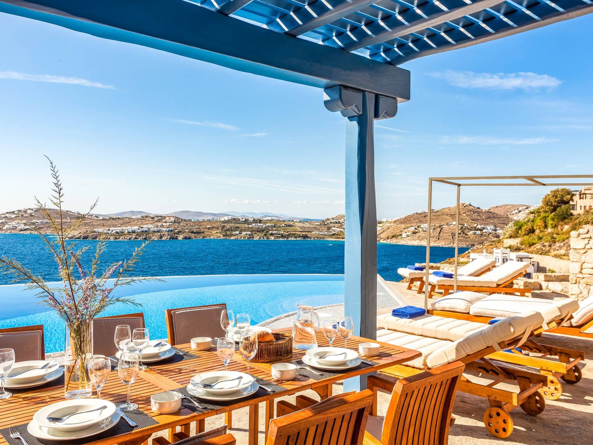 Χρώμα μπλε, ήλιος και πολυτέλεια, τίποτα δεν μπορεί να νικήσει αυτόν τον συνδυασμό. Τι άλλο υπάρχει να ζητήσετε για τις διακοπές σας; Αφεθείτε…