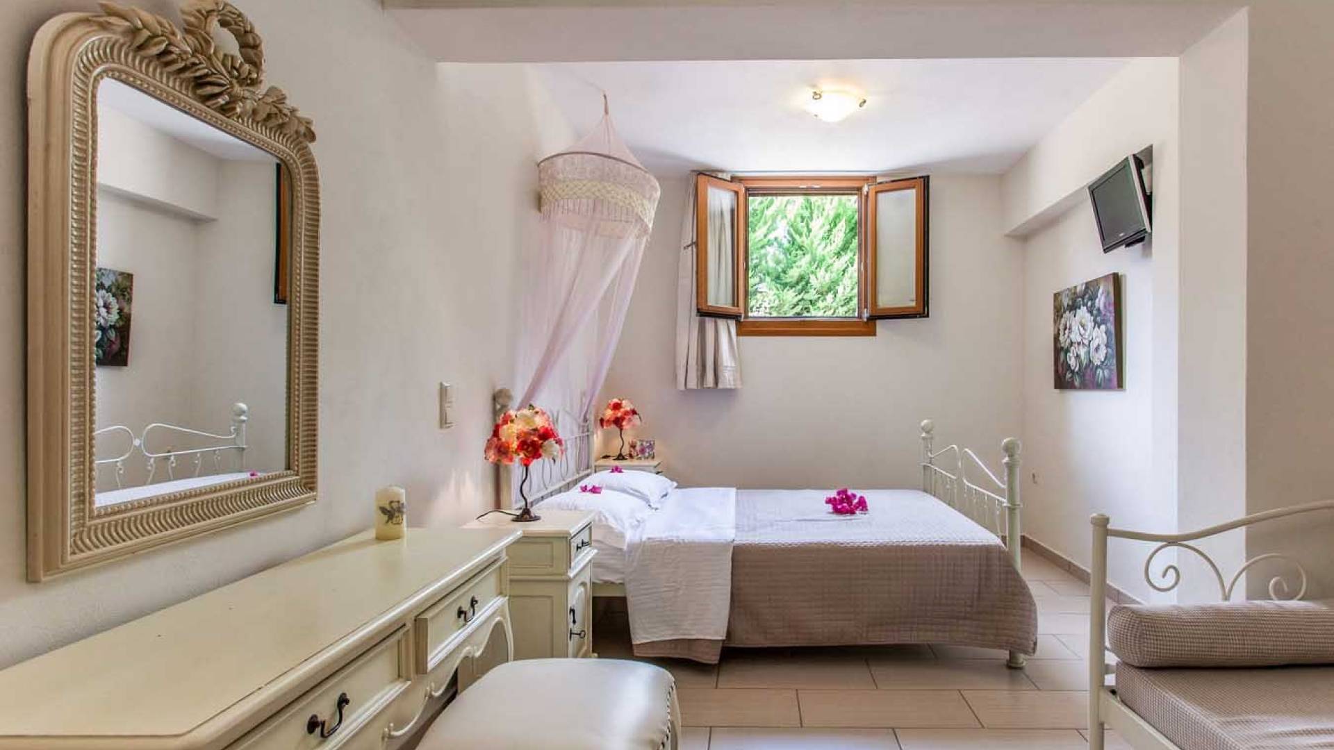Το ισόγειο αποτελείται από 2 υπνοδωμάτια και ένα μπάνιο με ντους ψιλής βροχής. Τέλος, το τεράστιο υπόγειο αποτελείται από 1 υπνοδωμάτιο με γκαρνταρόμπα (walk-in ντουλάπα) και ένα μοναδικά σχεδιασμένο μπάνιο με ντους ψιλής βροχής και τζακούζι. Ο συνδυασμός μπαρόκ και μοντέρνου σχεδιασμού παρέχει στους επισκέπτες την πολυτέλεια και την άνεση που χρειάζονται για μια αξέχαστη διαμονή στο μαγευτικό νησί, τη Νάξο.