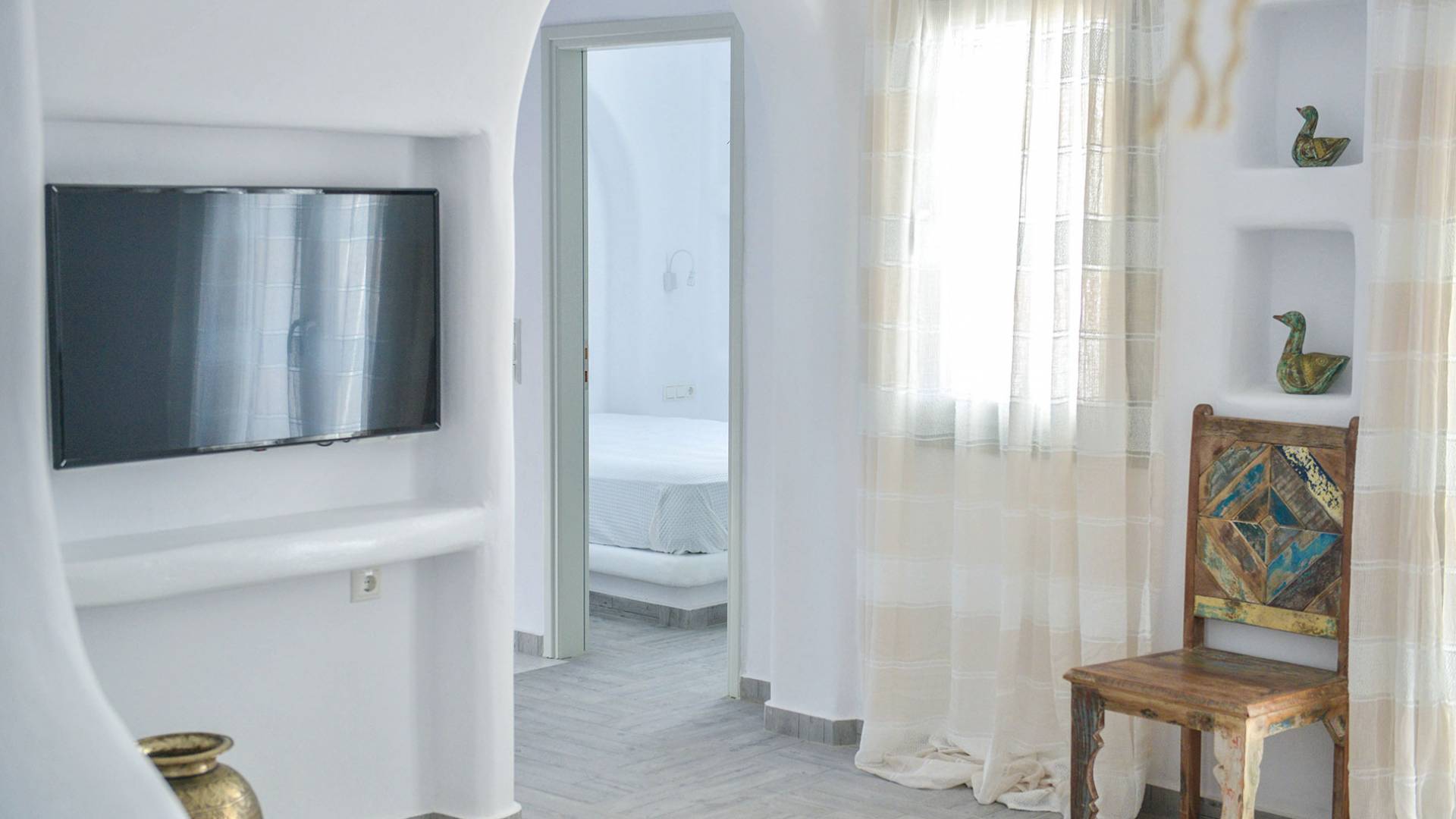 Η Villa Kleio Naxos είναι μια βίλα 3 υπνοδωματίων, προσεγμένη για οικογένειες ή μεγάλα πάρτι. Η κύρια κρεβατοκάμαρα βρίσκεται στον επάνω όροφο με 1 διπλό κρεβάτι (160 cm x 200 cm), ιδιωτικό μπάνιο και μπαλκόνι με εκπληκτική θέα στη θάλασσα και την ενδοχώρα της Νάξου. Ο μεσαίος όροφος διαθέτει ένα υπνοδωμάτιο με ένα διπλό κρεβάτι (160 cm x 200 cm), ένα μπάνιο, μια πλήρως εξοπλισμένη κουζίνα μιας βίλας με τραπέζι φαγητού, έναν κοινόχρηστο χώρο που μπορεί να φιλοξενήσει 1 άτομο και ένα μπαλκόνι με άμεση πρόσβαση στο ιδιωτικό 14 τ.μ. . Μ. πισίνα με τζακούζι με εκπληκτική θέα στη θάλασσα. Τέλος, το κάτω επίπεδο έχει 1 υπνοδωμάτιο με 1 διπλό κρεβάτι (160 cm x 200 cm) και 1 μπάνιο.