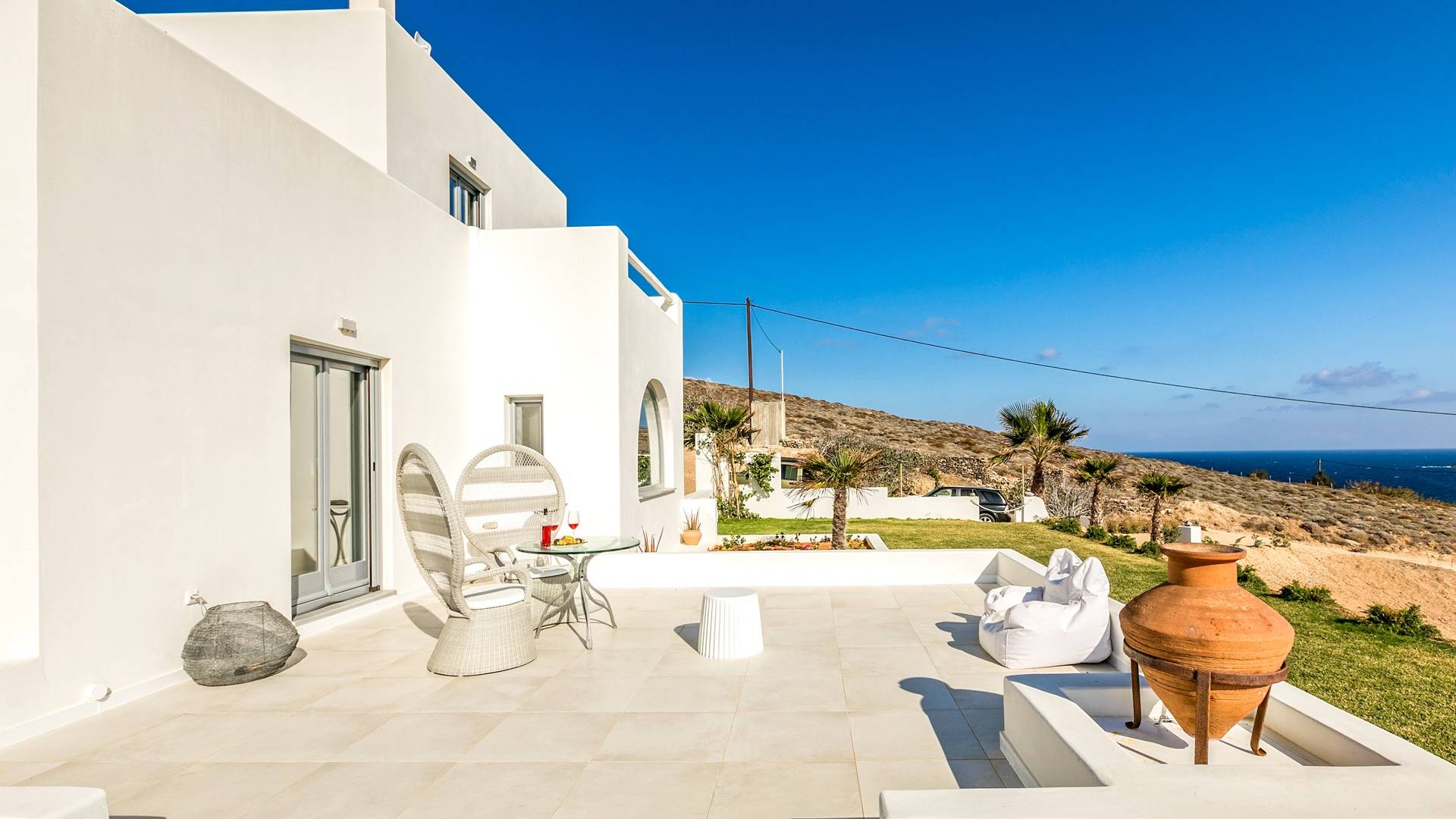 Το Villa On The Rocks Antiparos είναι το τέλειο ρομαντικό και πολυτελές συγκρότημα με εκπληκτική θέα από την κορυφή του λόφου! Αυτή η γλυκιά και άνετη βίλα φιλοξενεί 5 άτομα και διαθέτει ένα επιπλέον δωμάτιο για το προσωπικό. Η βίλα βρίσκεται 6 λεπτά με το αυτοκίνητο από την πόλη της Αντιπάρου. Η διακόσμηση του σπιτιού είναι μινιμαλιστική και πολύ κομψή με υπαίθρια πρακτική και μοναδική κουζίνα και τραπεζαρία.
