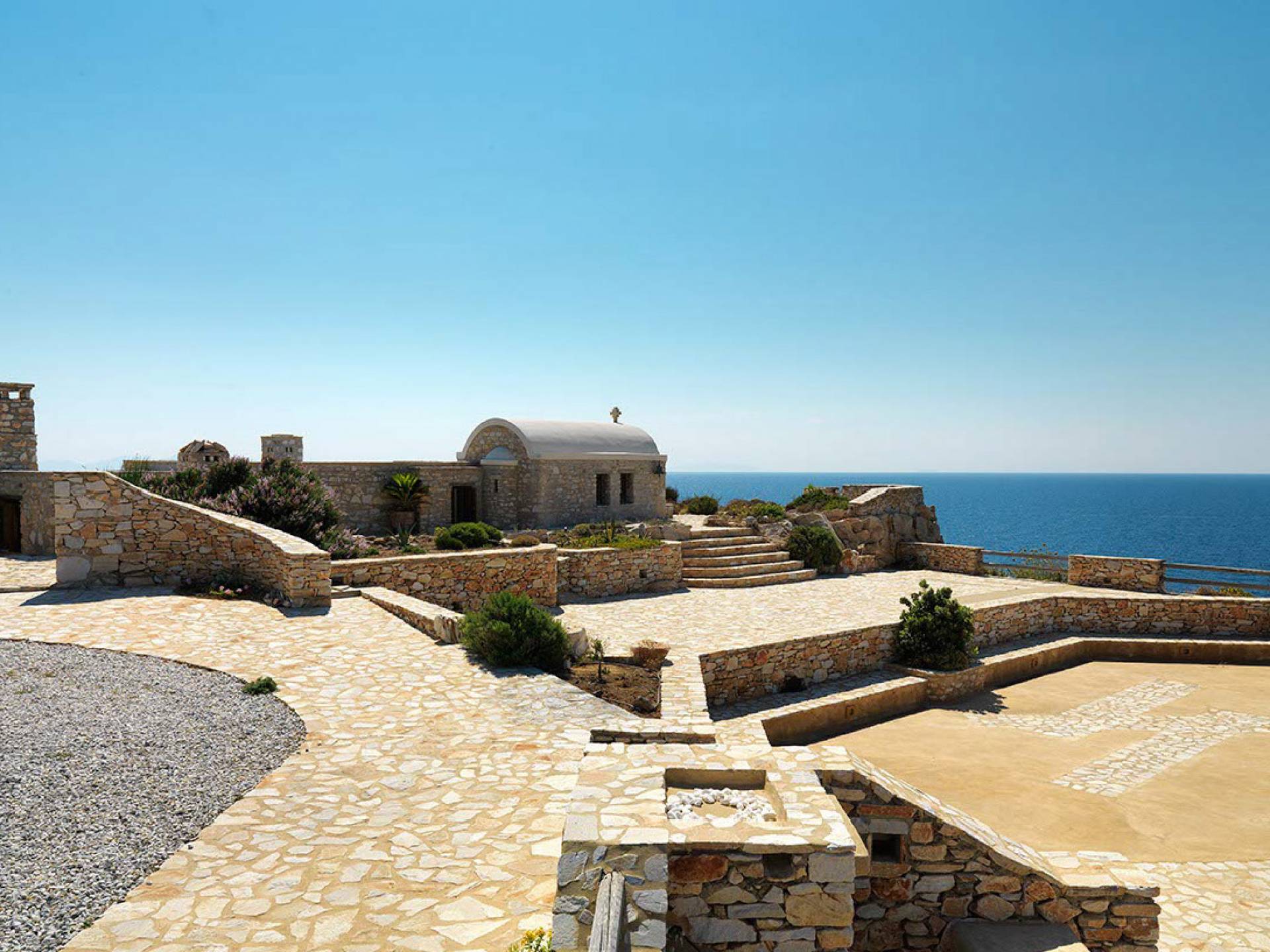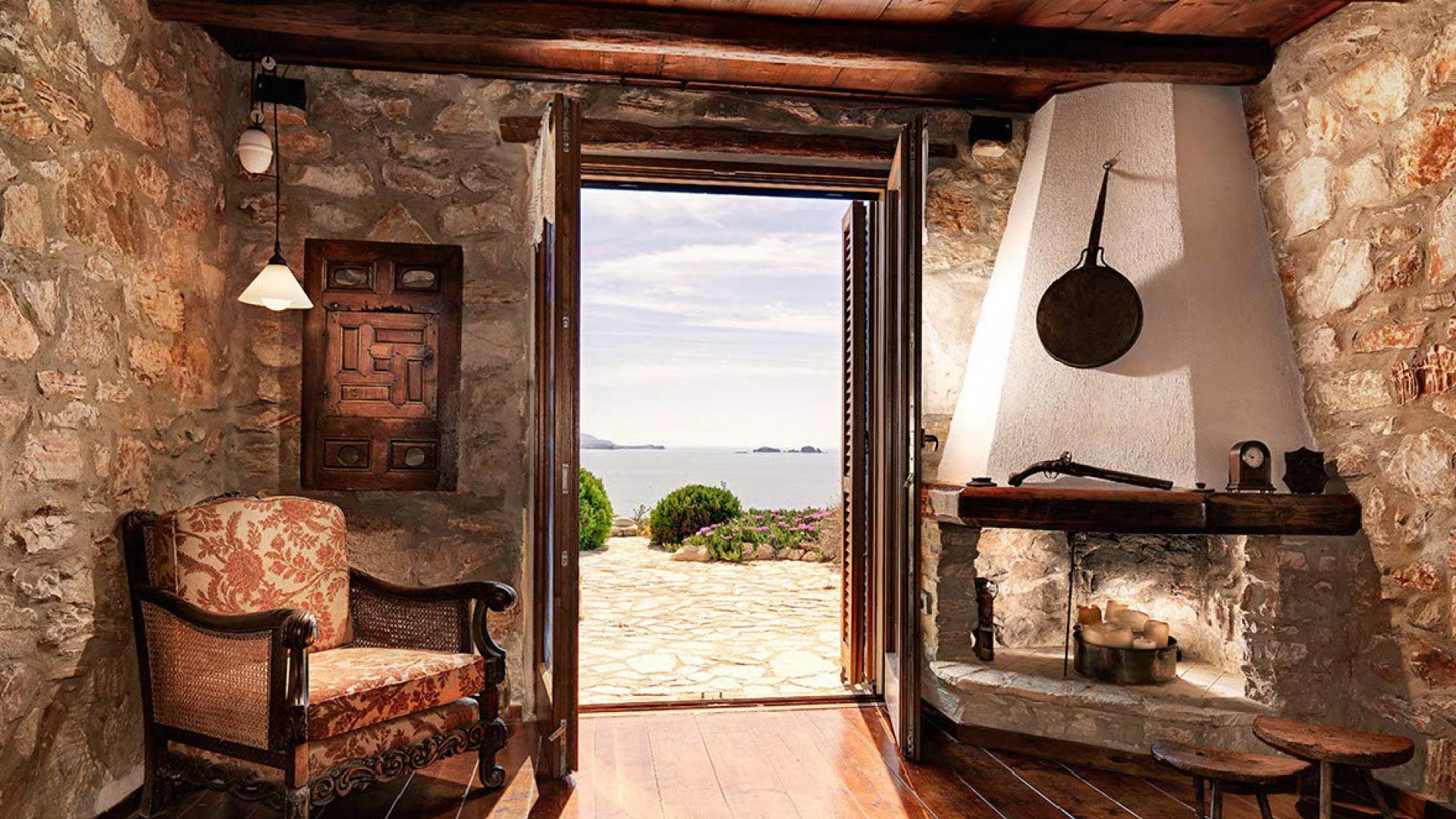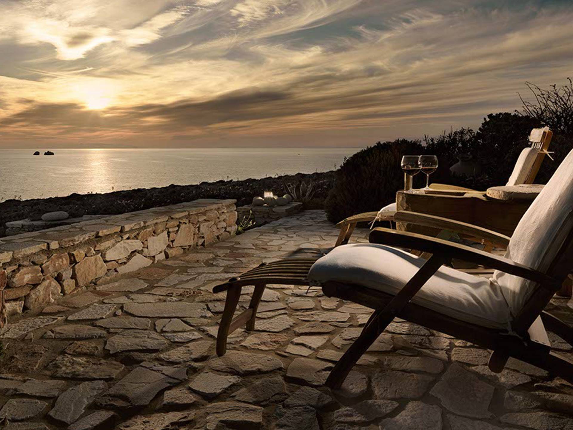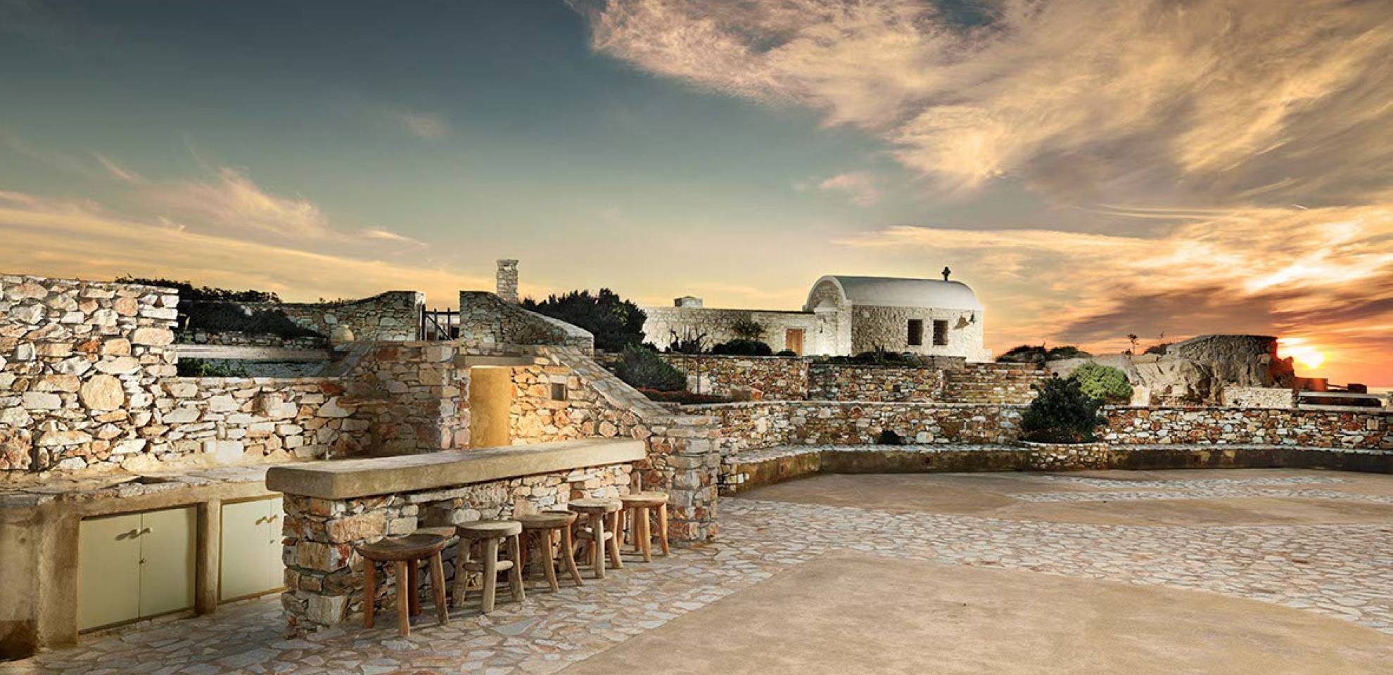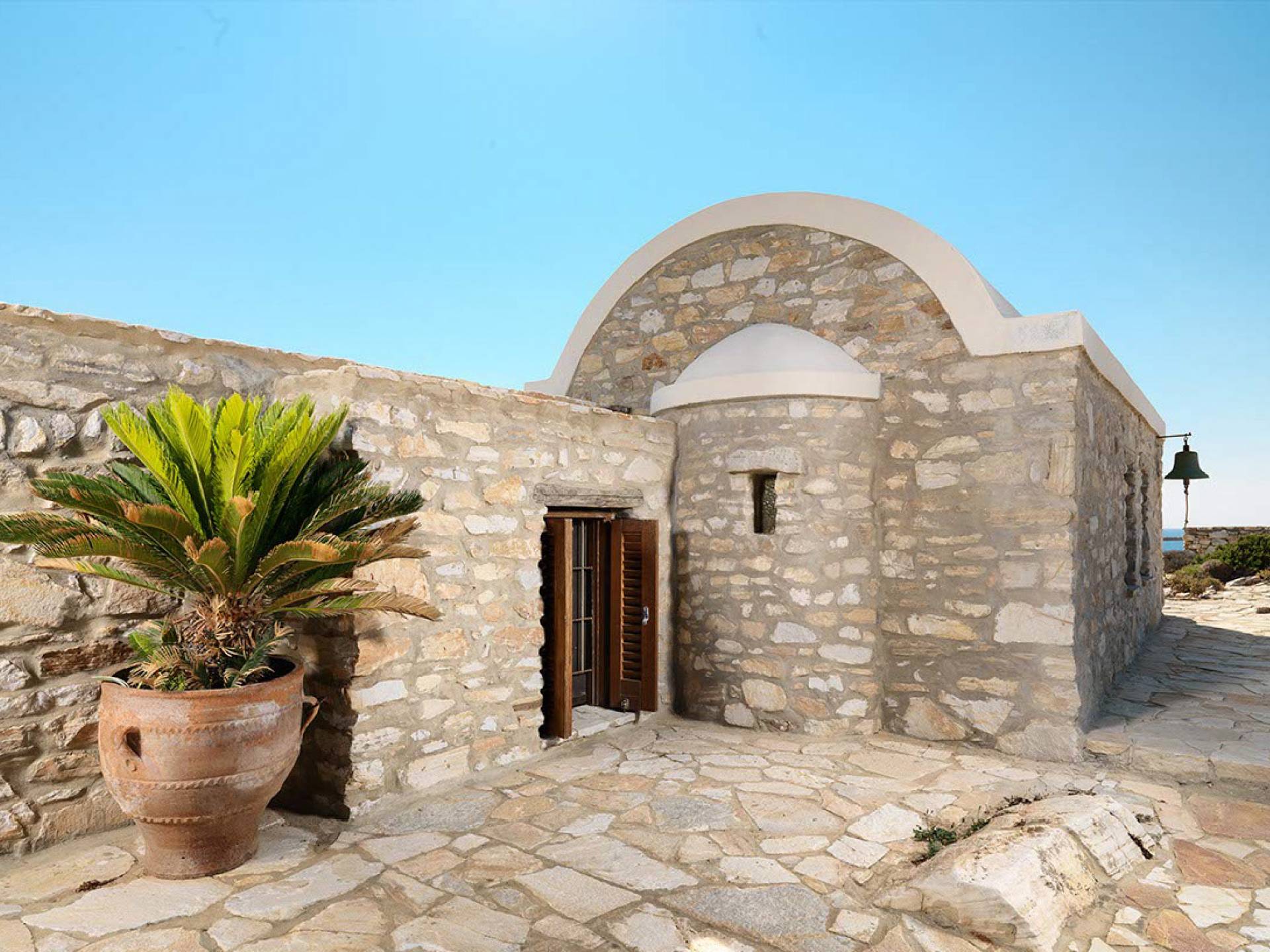 Οι ζεστές αποχρώσεις της ξύλινης επένδυσης συνδυάζονται υπέροχα με τους ακατέργαστους πέτρινους τοίχους, ενώ το εκθαμβωτικό φως του ήλιου και η υπέροχη ατμόσφαιρα ευνοούν την πλήρη απόλαυση του άγριου κυκλαδίτικου τοπίου.
