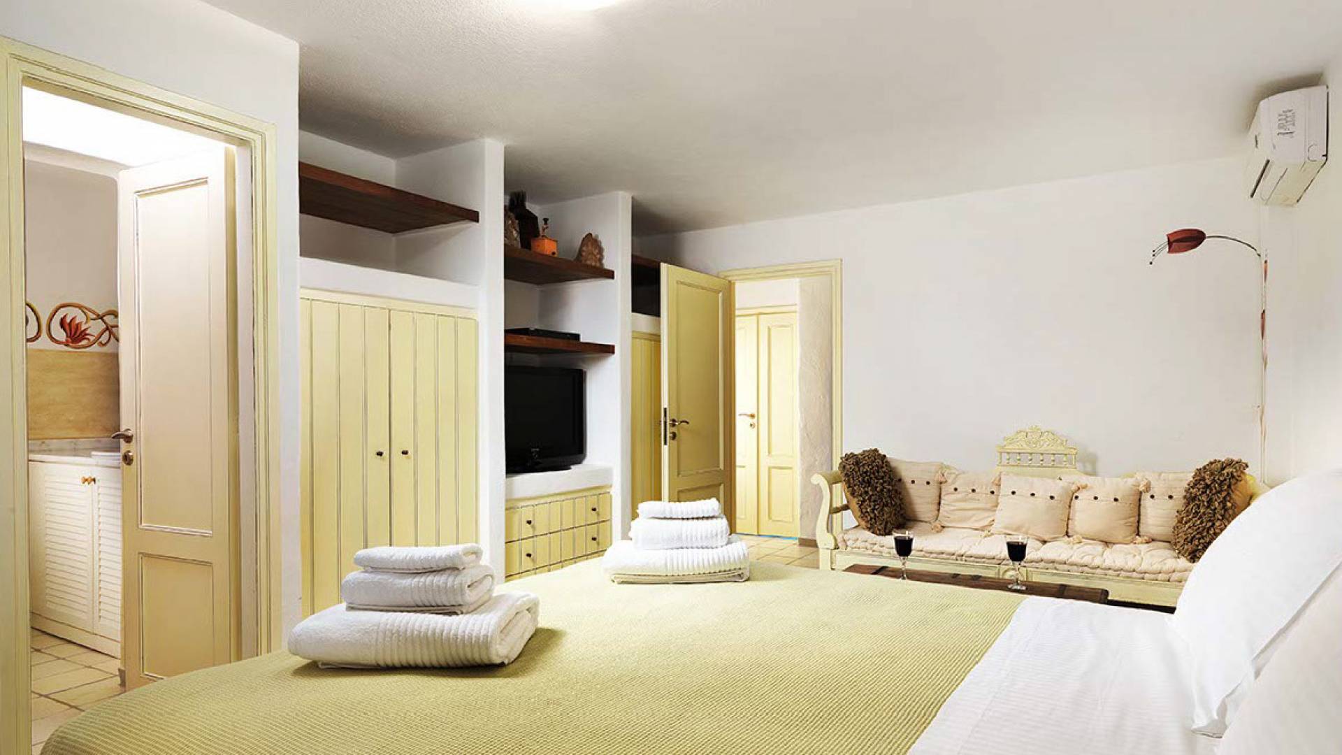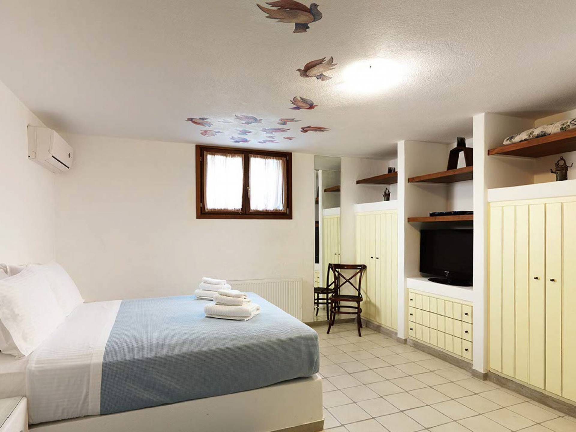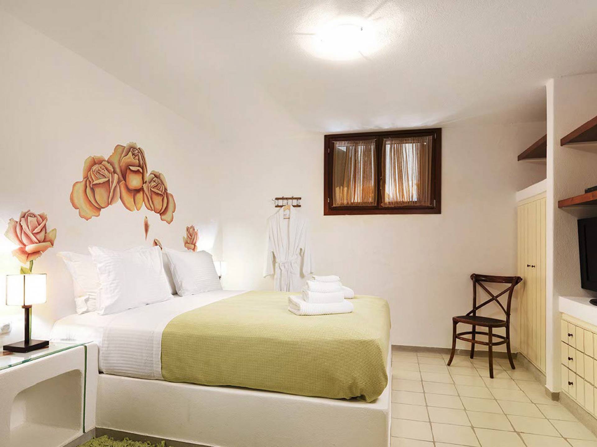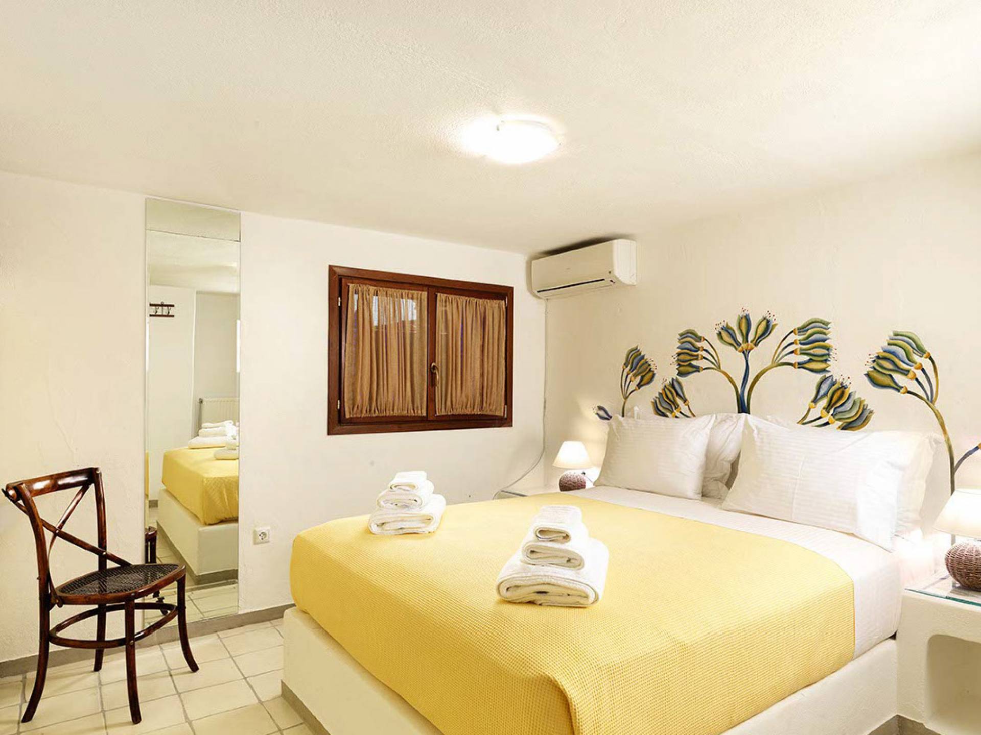 Οι ζεστές αποχρώσεις της ξύλινης επένδυσης συνδυάζονται υπέροχα με τους τραχούς πέτρινους τοίχους, ενώ το εκθαμβωτικό φως του ήλιου και η υπέροχη ατμόσφαιρα ευνοούν την πλήρη απόλαυση του άγριου κυκλαδίτικου τοπίου.