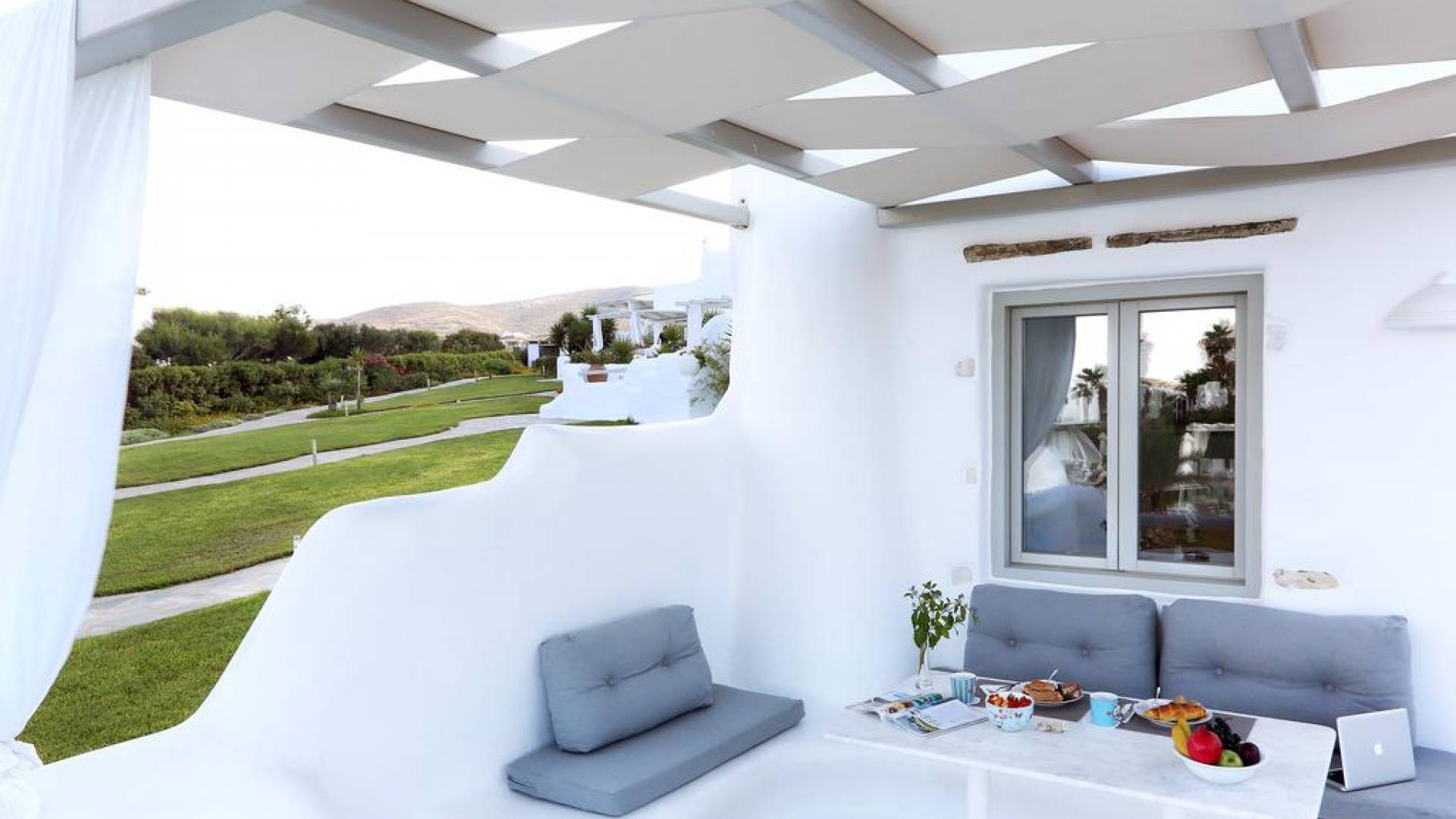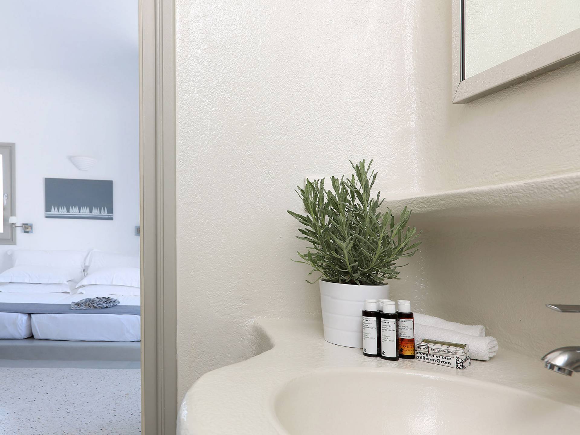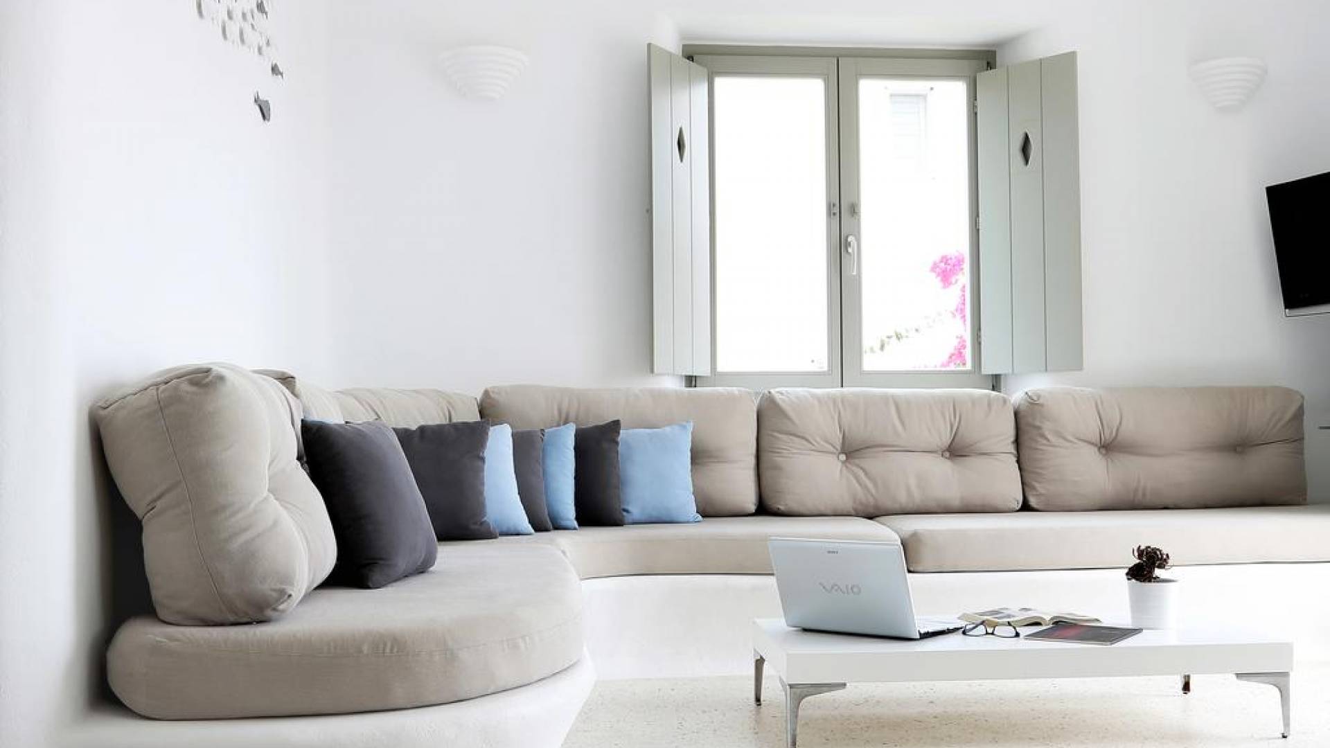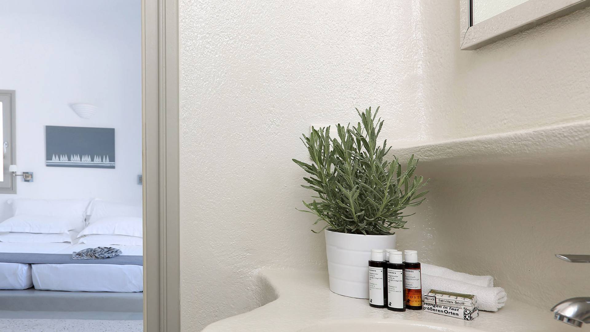Μπορείτε να χαλαρώσετε και να χαλαρώσετε στην φιλική προς το περιβάλλον πισίνα ή στο ιδιωτικό υδρομασάζ στο μπαλκόνι σας και θα νιώσετε σαν στο σπίτι σας στα άνετα και πολυτελή καταλύματά μας με παραδοσιακή κυκλαδίτικη αρχιτεκτονική, ψηφιδωτά δάπεδα, χτιστά κρεβάτια και καναπέδες.