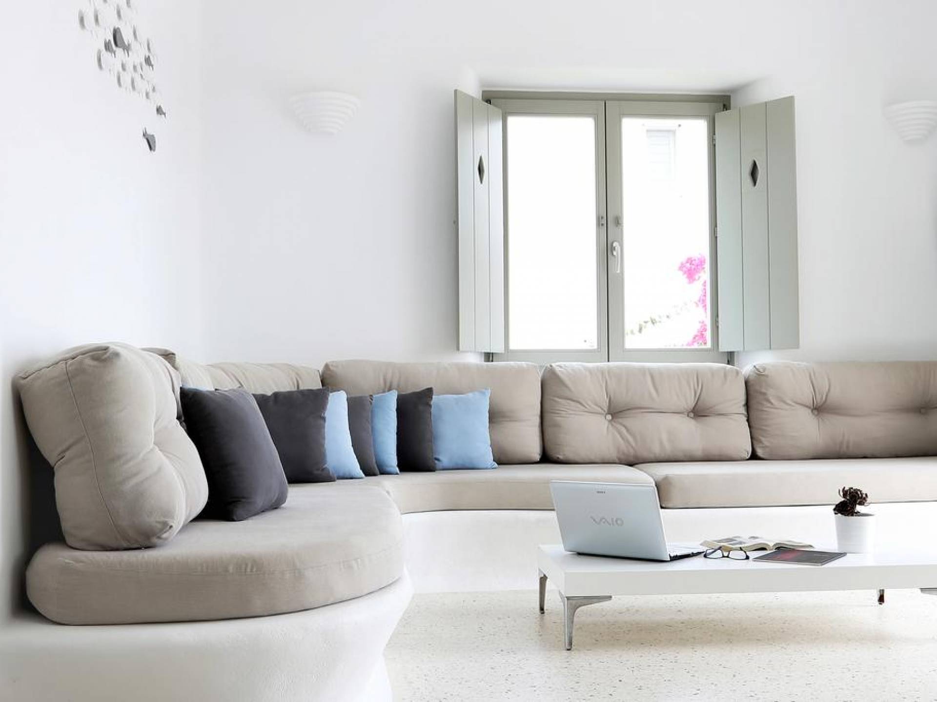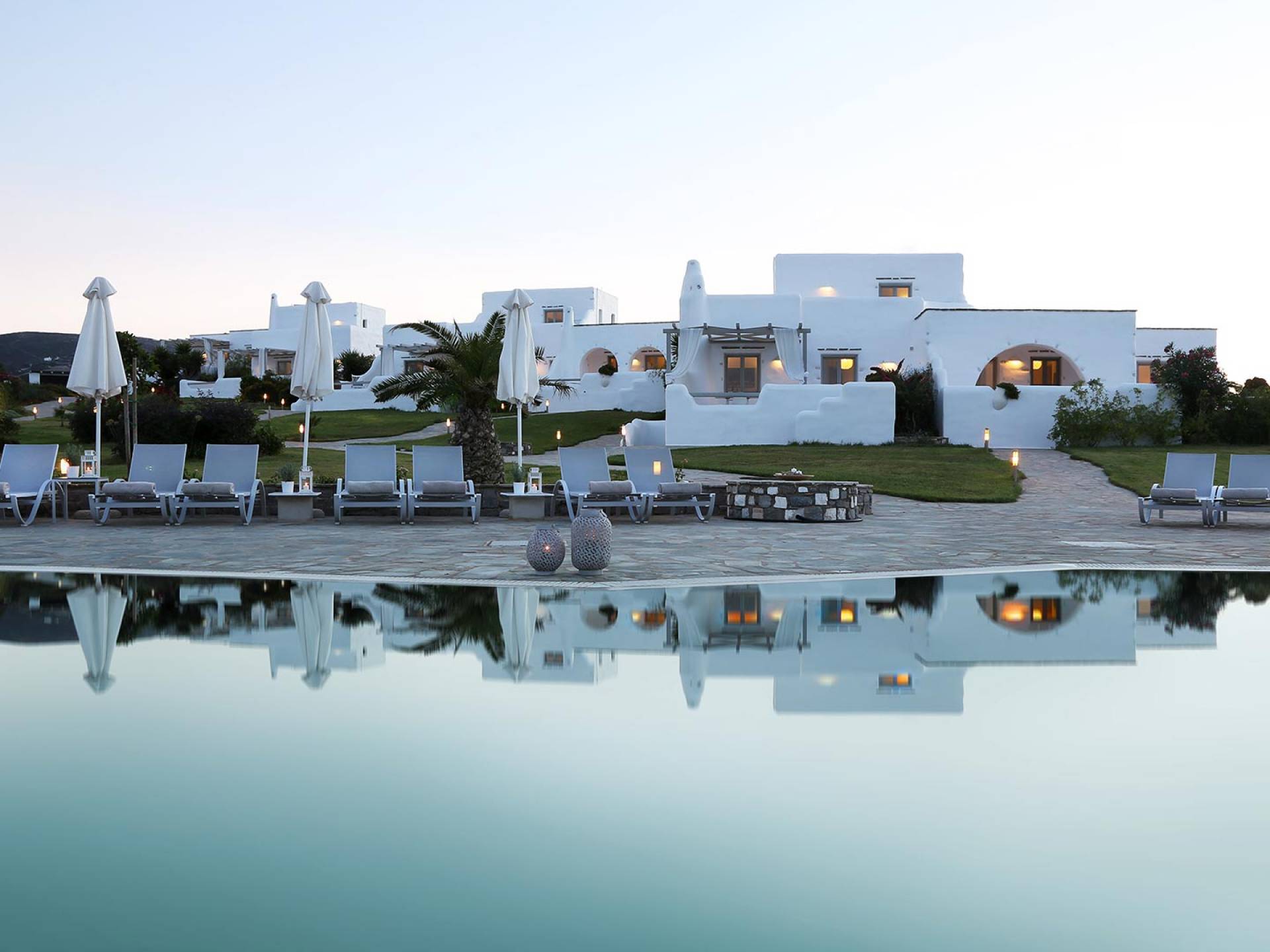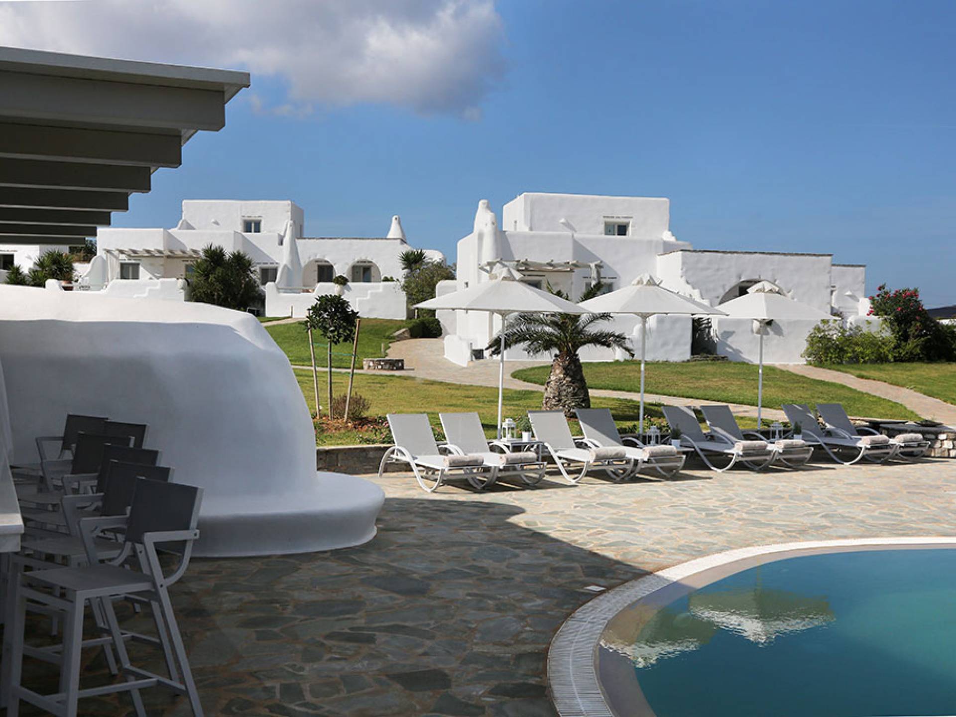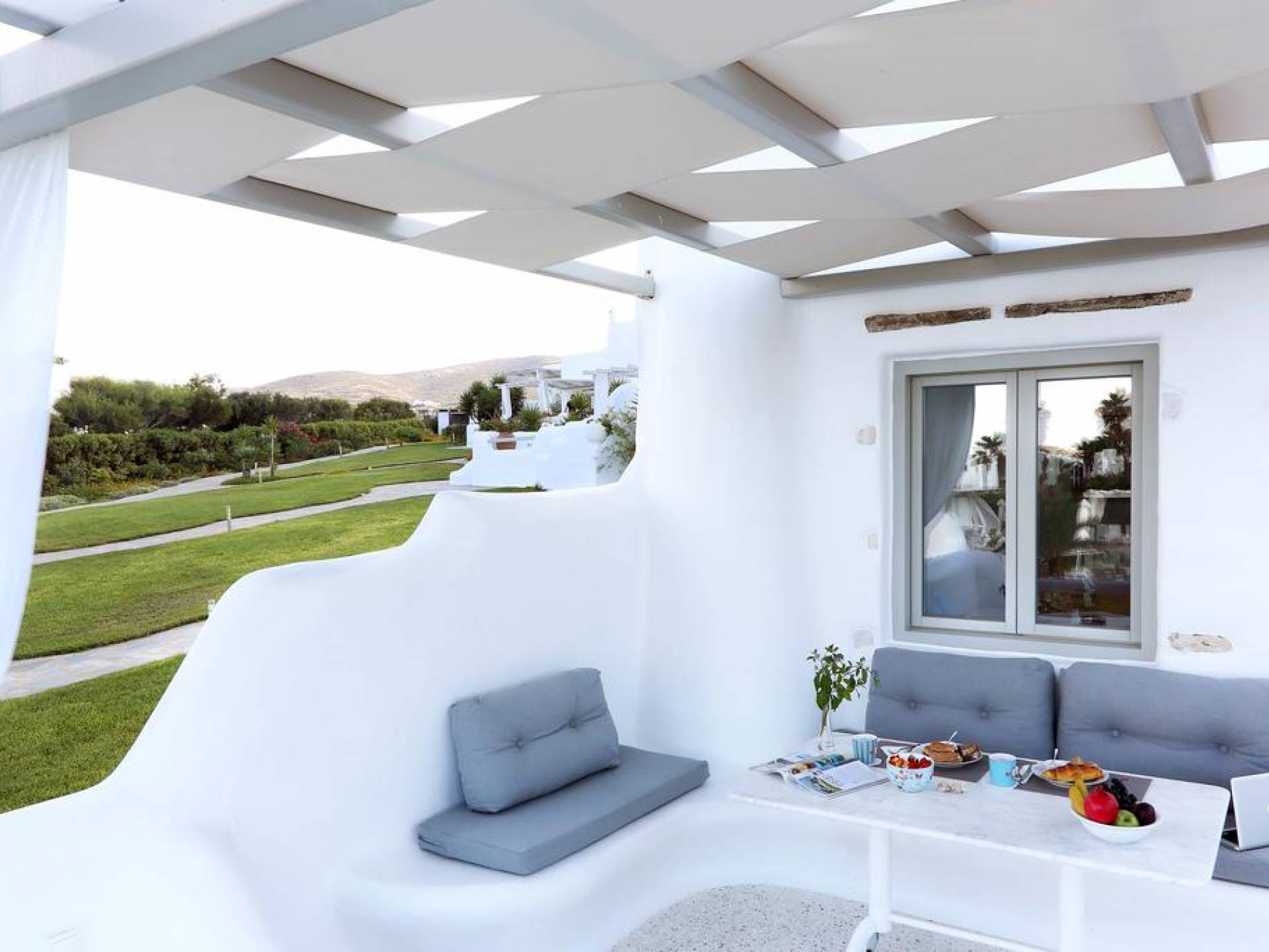 Μπορείτε να χαλαρώσετε και να χαλαρώσετε στην φιλική προς το περιβάλλον πισίνα ή στο ιδιωτικό υδρομασάζ στο μπαλκόνι σας και θα νιώσετε σαν στο σπίτι σας στα άνετα και πολυτελή καταλύματά μας με παραδοσιακή κυκλαδίτικη αρχιτεκτονική, ψηφιδωτά δάπεδα, χτιστά κρεβάτια και καναπέδες.