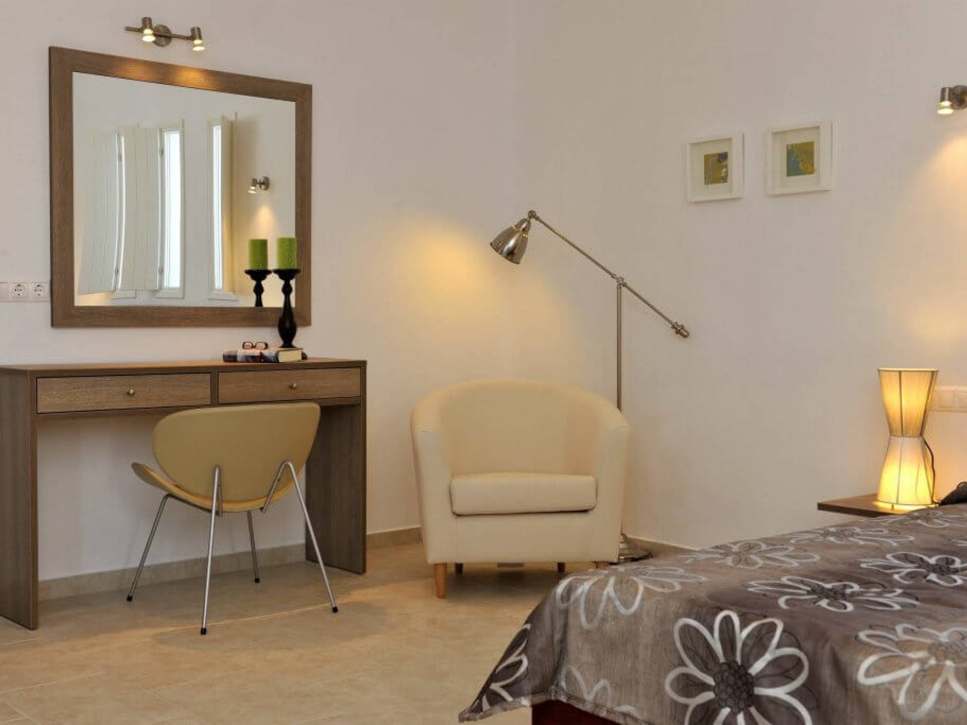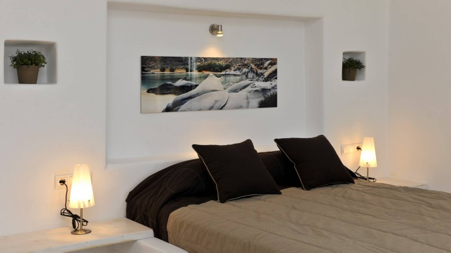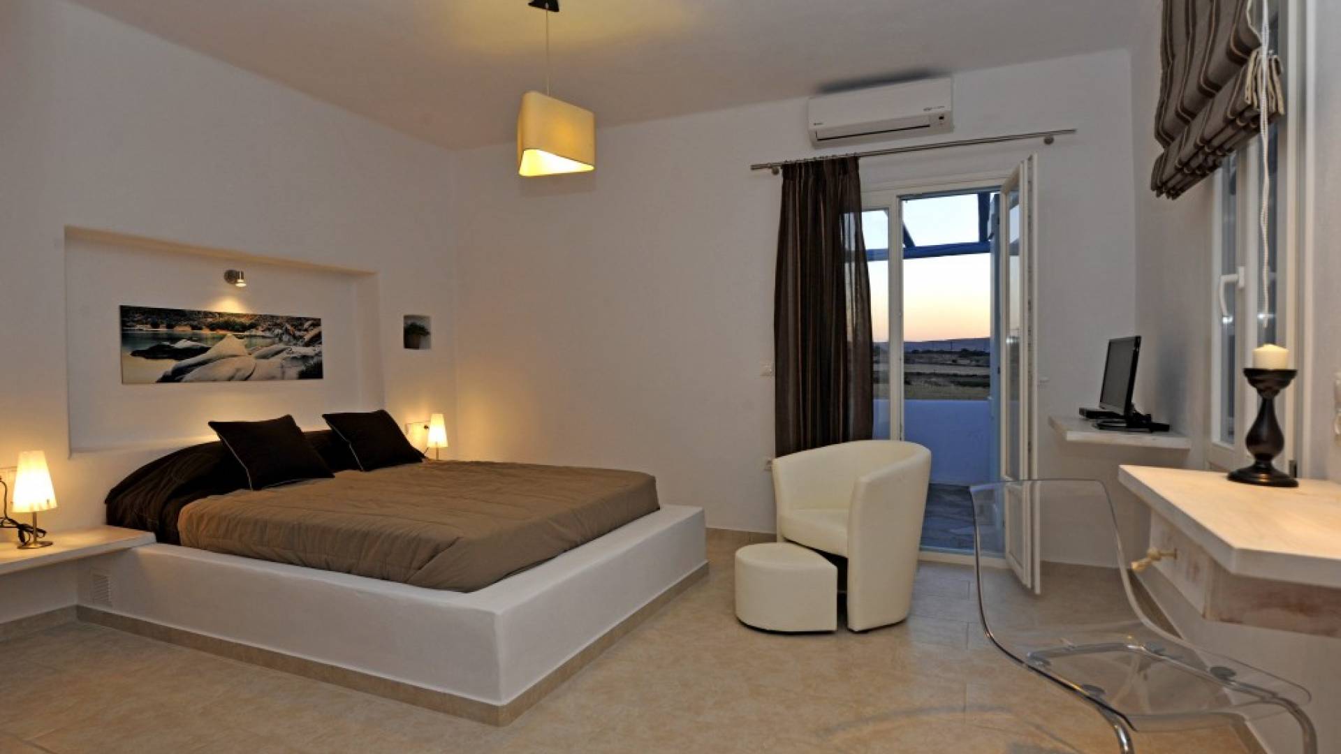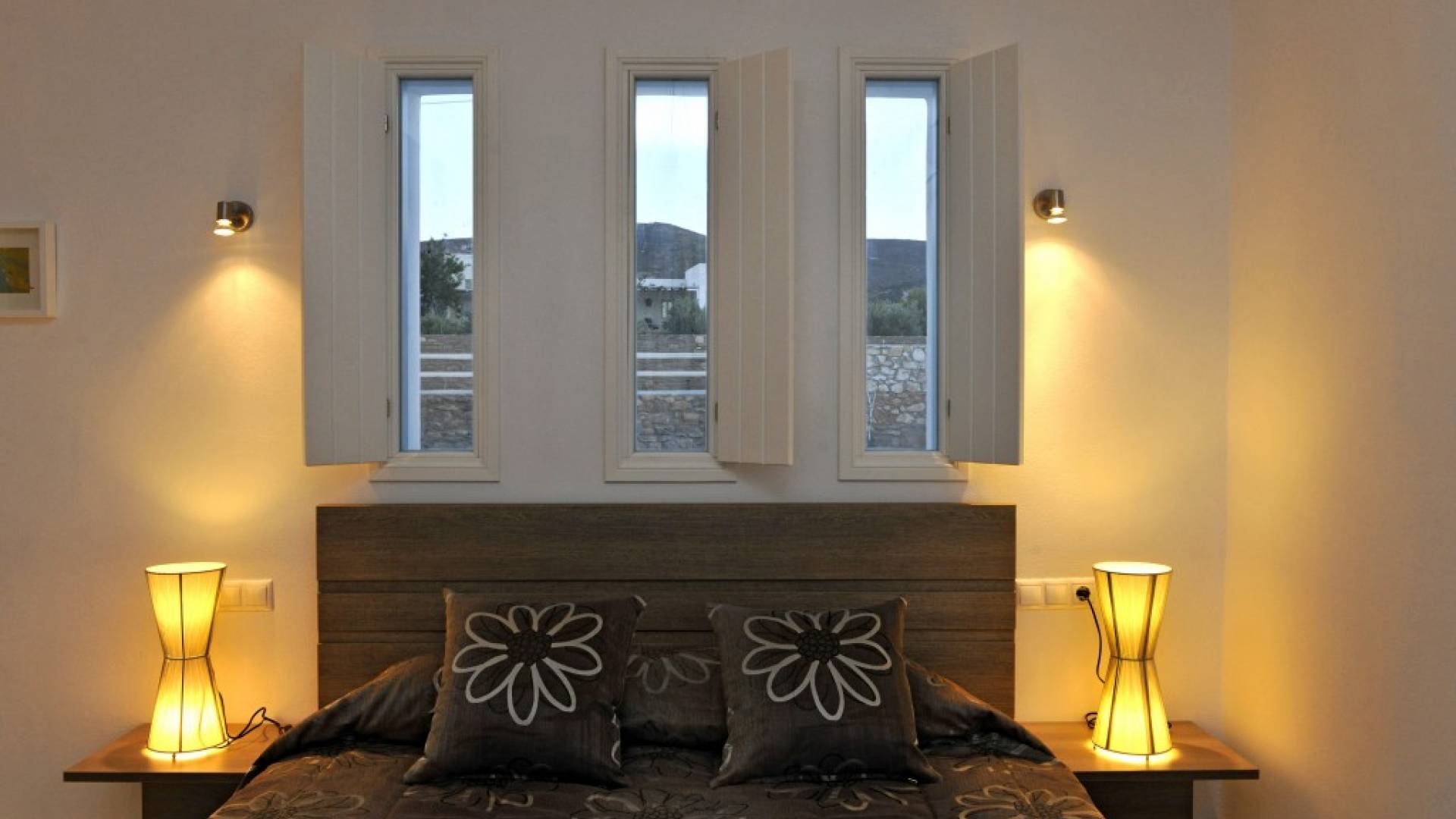 Η Villa Asterias αποτελείται από δύο επίπεδα. Στο ισόγειο, υπάρχει καθιστικό με κλιματισμό, τηλεόραση LCD με δορυφορική σύνδεση, DVD player και HI-FI. Η κουζίνα είναι πλήρως εξοπλισμένη με ηλεκτρικές συσκευές όπως ψυγείο, κουζίνα και πλυντήριο πιάτων και όλα τα απαραίτητα μαγειρικά σκεύη. Επιπλέον, υπάρχουν δύο υπνοδωμάτια με διπλό κρεβάτι, κλιματισμός, τηλεόραση LCD και DVD player. Επίσης, στη Villa Asterias, θα βρείτε δύο μπάνια, ένα στο ισόγειο και ένα στον επάνω όροφο που διαθέτουν χτιστό ντους και νιπτήρα, όπου υπάρχουν προϊόντα περιποίησης και πετσέτες προσώπου, μπουρνούζια και παντόφλες. Στο εξωτερικό της βίλας, υπάρχει μια μεγάλη βεράντα 50τ.μ. στο ισόγειο και δύο μπαλκόνια στον πρώτο όροφο για απόλυτη χαλάρωση. Όλες οι βεράντες έχουν υπέροχη θέα στον κόλπο της Νάουσας.