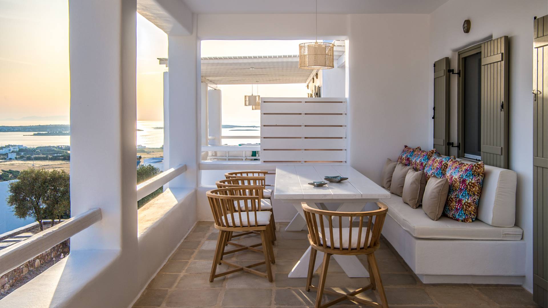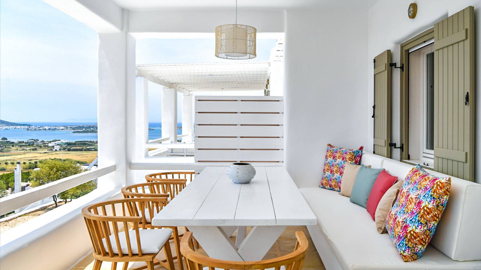 Ο ενιαίος χώρος του Ianthe προσφέρει ένα άνετο καθιστικό, εξοπλισμένο με Smart TV 42 ιντσών, για 8 άτομα και μια πλήρως επιπλωμένη κουζίνα με τραπέζι φαγητού για όλους. Οι διπλές βεράντες 75 τ.μ. προσφέρουν χώρους καθιστικού και τραπεζαρία για 8 άτομα, καθεμία με θέα στη θάλασσα και στο βουνό, καθώς και μια σκιερή γωνιά οποιαδήποτε ώρα της ημέρας.