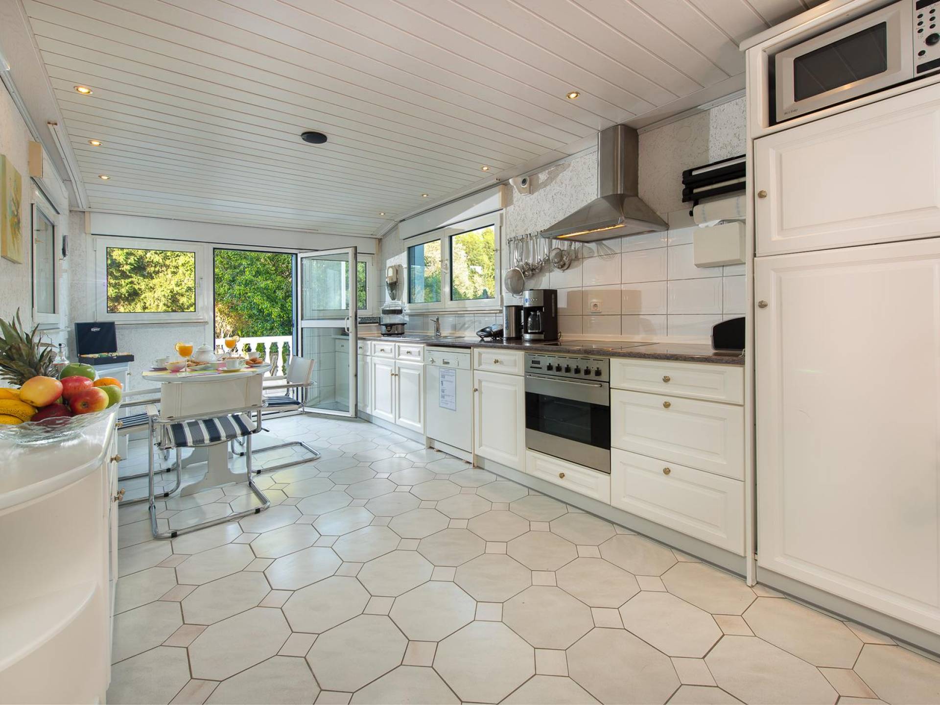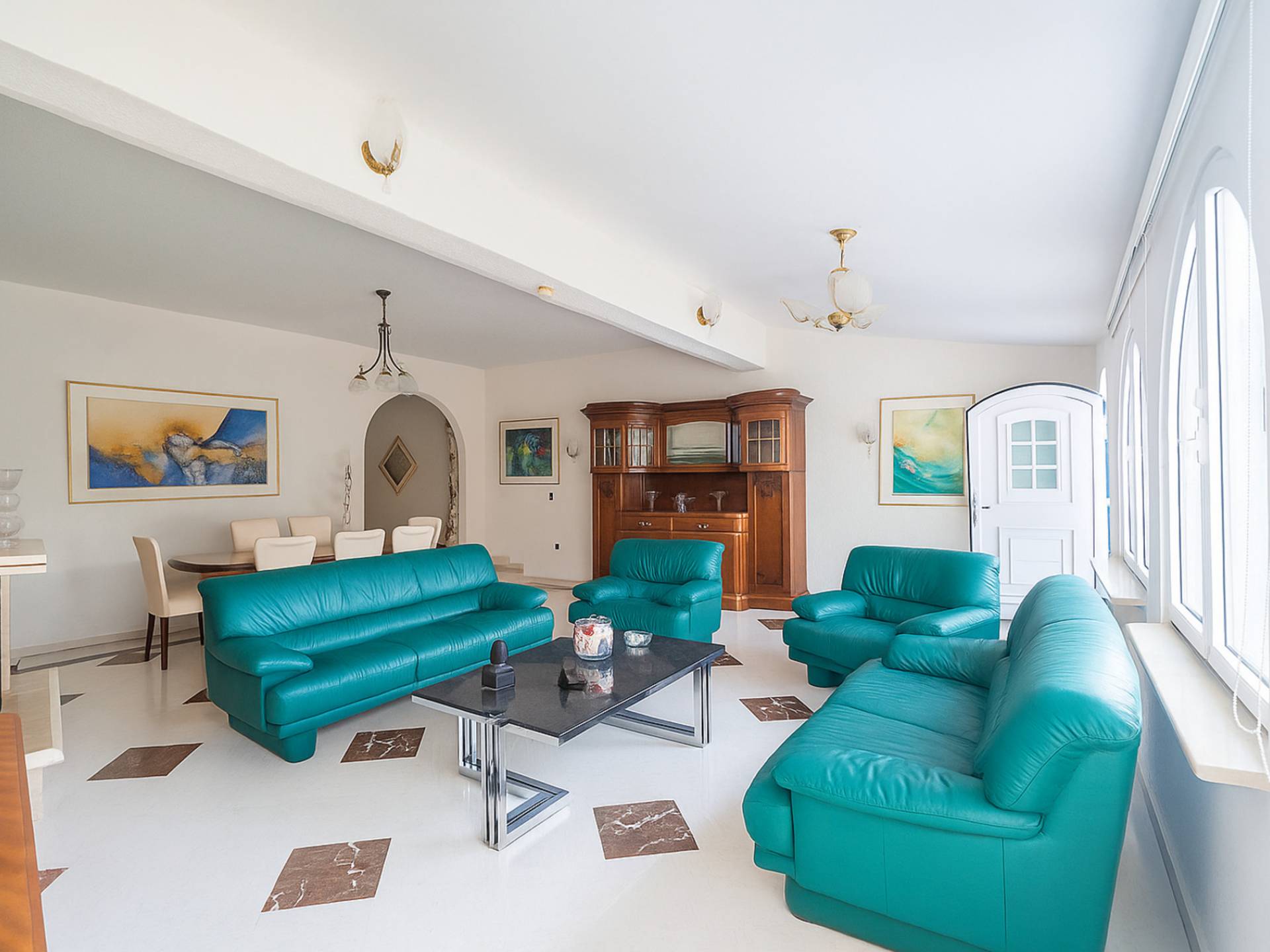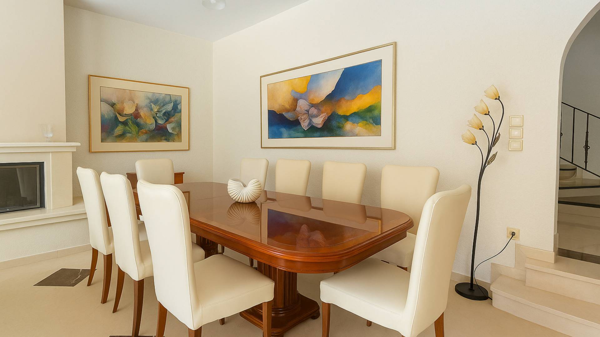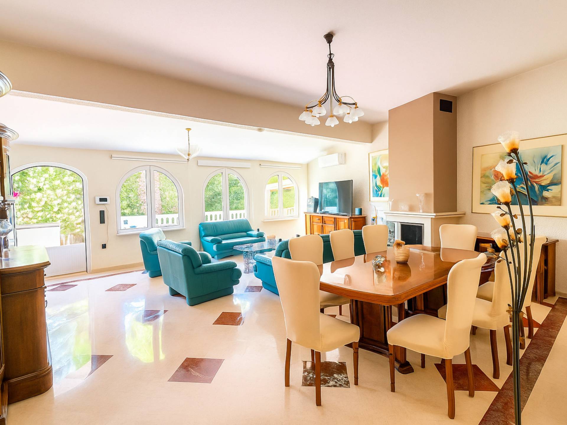 Το εσωτερικό είναι παρόμοια διακοσμημένο σε νεοκλασικό και μοντέρνο στιλ, είναι λειτουργικό και προσφέρει όλες τις απαραίτητες εγκαταστάσεις και σύγχρονες ανέσεις για μια ευχάριστη, χαλαρωτική και αξέχαστη διαμονή. Αποτελείται από 3 υπνοδωμάτια που μπορούν να φιλοξενήσουν έως 8 άτομα, 3 μπάνια, ξεχωριστό μεγάλο χώρο κουζίνας και μεγάλο σαλόνι. Κάθε δωμάτιο οδηγεί σε μπαλκόνι ή βεράντα με πανοραμική και απρόσκοπτη θέα στον κήπο, την πισίνα και το μαγευτικό τοπίο, το οποίο μπορεί κανείς να αγναντέψει ακόμη και από το εσωτερικό. Εκτός από την κύρια είσοδο, η Βίλα είναι προσβάσιμη μέσω μιας αυτόματης μεγάλης πύλης με άφθονο χώρο στάθμευσης. Η βίλα περιβάλλεται από έναν πανέμορφο κήπο 2000 τμ, ο οποίος περιλαμβάνει όμορφα μεσογειακά δέντρα και φυτά, τα οποία σε συνδυασμό με την πισίνα, τη μικρή παιδική πισίνα, την παιδική χαρά, το περίπτερο με το υδρομασάζ και την ξύλινη τραπεζαρία, θα σε κάνουν να νιώθεις ότι βρίσκεσαι σε έναν επίγειο «Μικρό Παράδεισο». Όλα τα παραπάνω βρίσκονται σε απόλυτη ιδιωτικότητα και μακριά από τα αδιάκριτα βλέμματα αφού η Βίλα είναι περιφραγμένη και το εσωτερικό δεν φαίνεται από έξω.