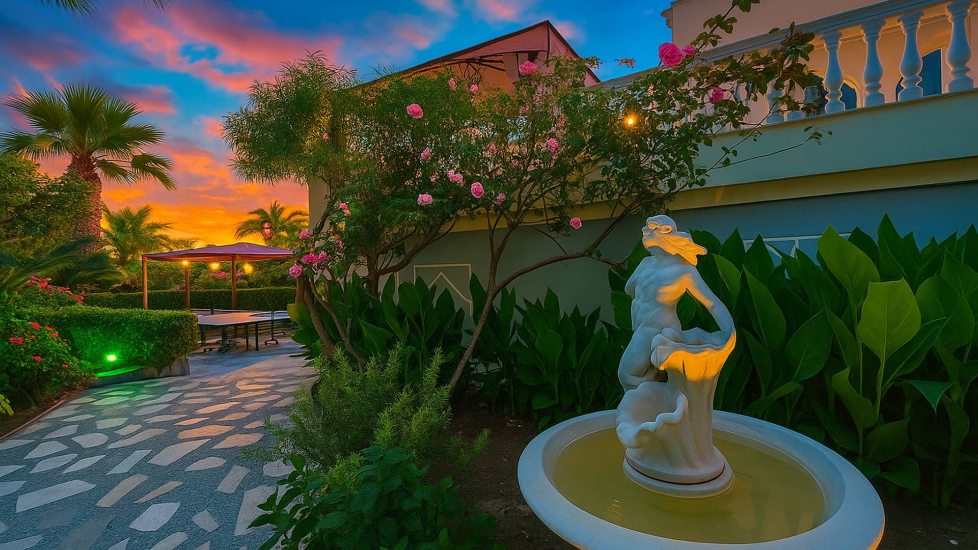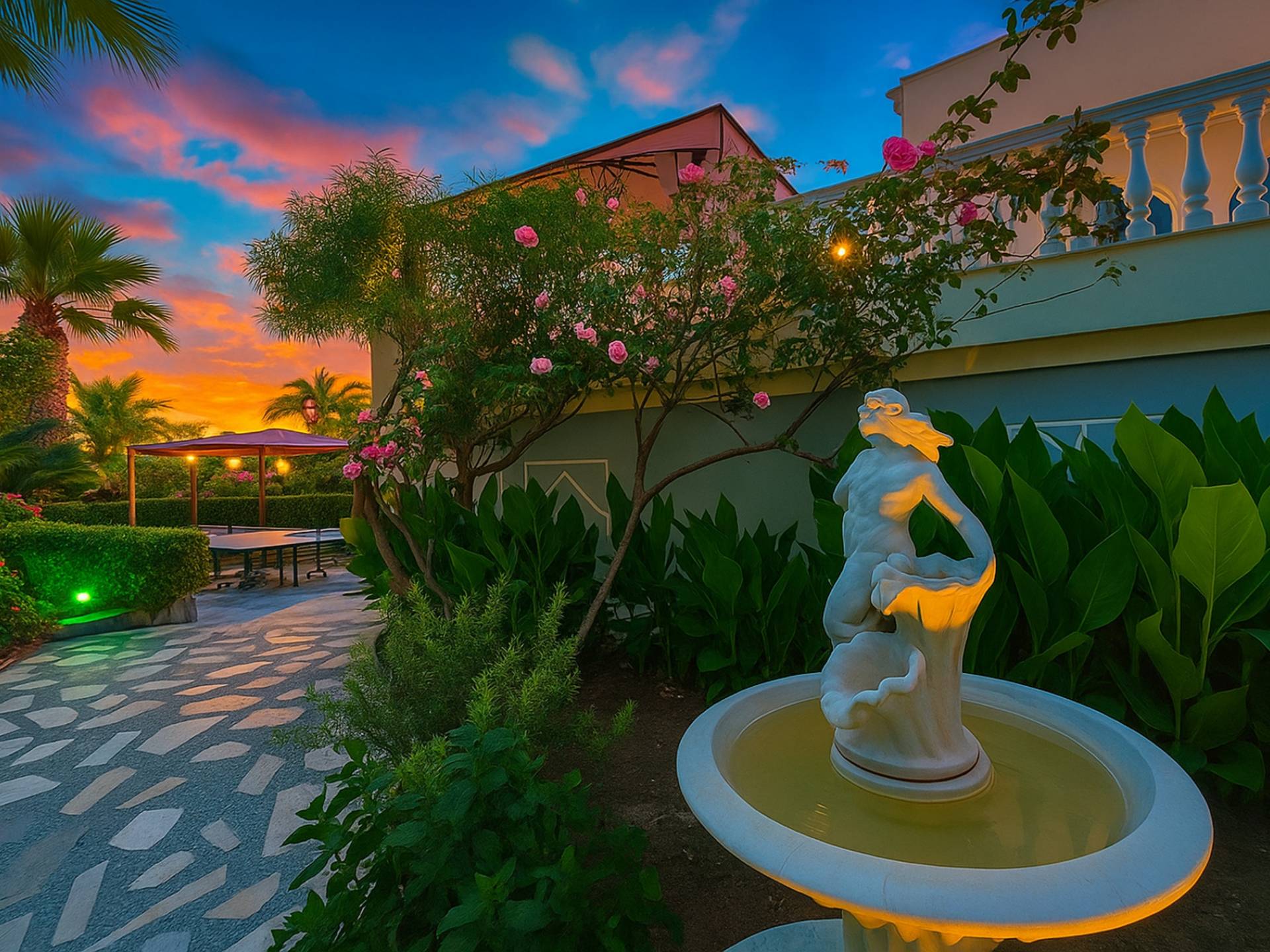 Η Villa Small Paradise Rhodes, ο κήπος, ο χώρος της πισίνας και το τζακούζι, ξεχωρίζουν μετά το ηλιοβασίλεμα με μια λαμπερή λάμψη, δημιουργώντας υπέροχο τοπίο για συναναστροφές, πάρτι, χαλάρωση ή ποτό, ακούγοντας το τρεχούμενο νερό από το σιντριβάνι, και θαυμάζοντας τα εντυπωσιακά μεταβαλλόμενα χρώματα της πισίνας. Το Ταξίδι στα αμέτρητα αστέρια του νυχτερινού ουρανού με το φεγγάρι για να σας κρατήσει συντροφιά μέχρι το ξημέρωμα.