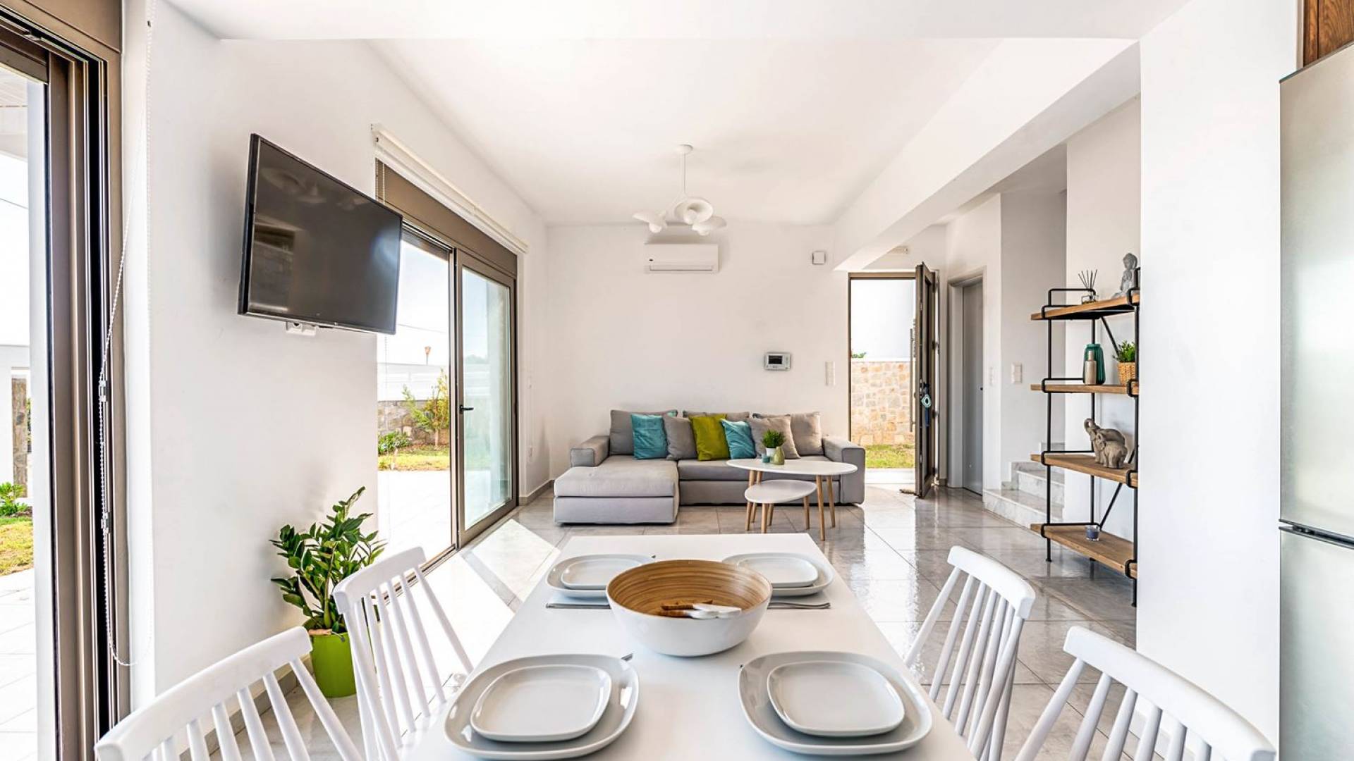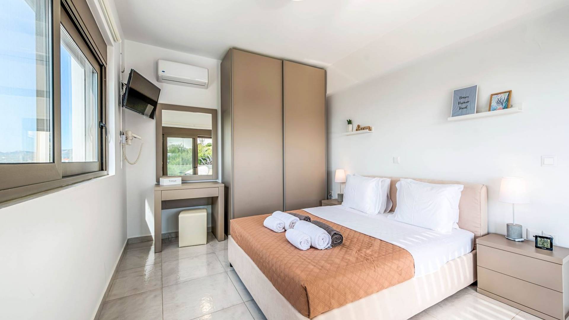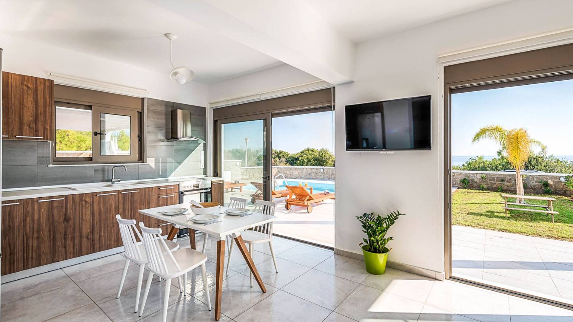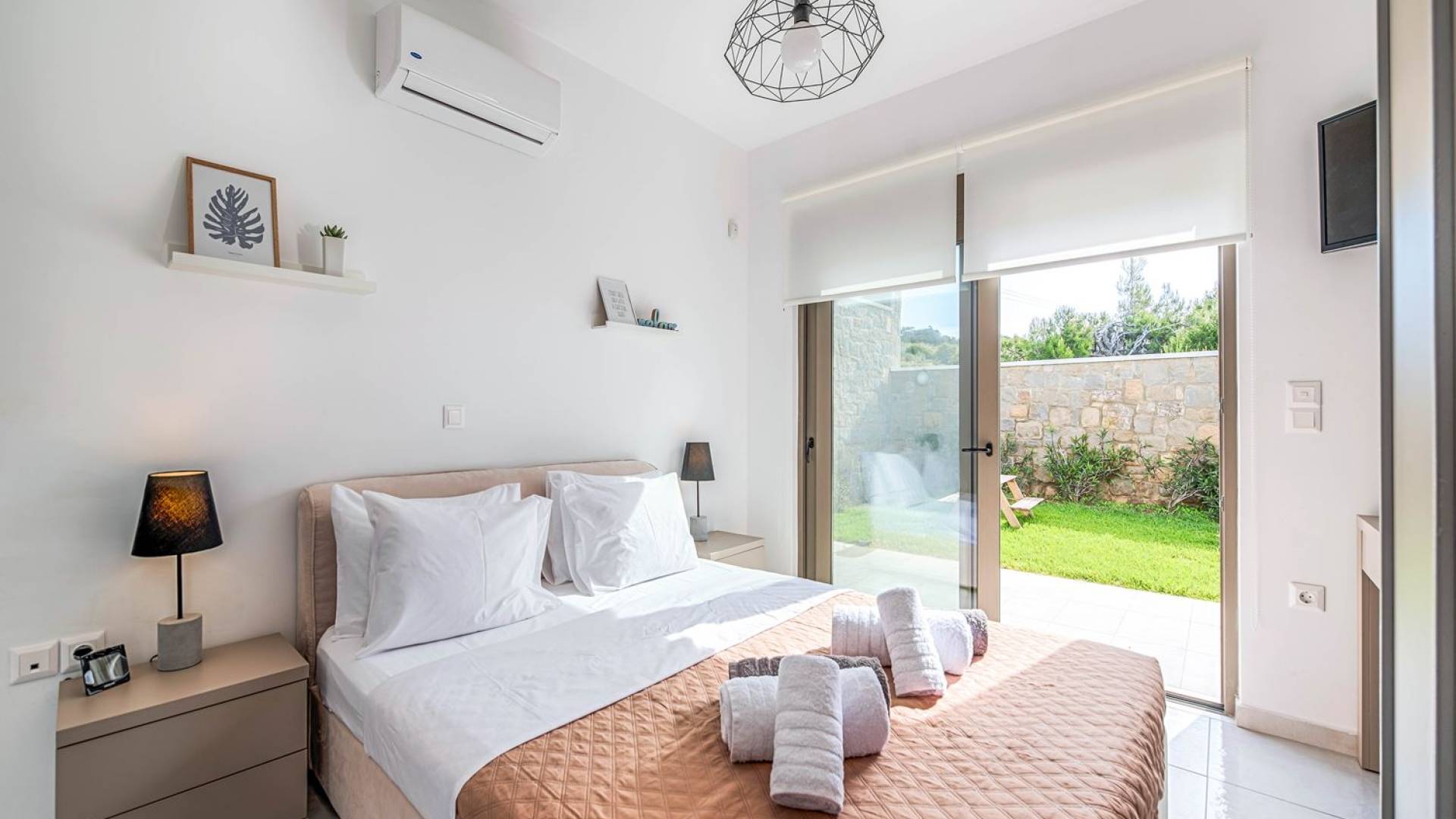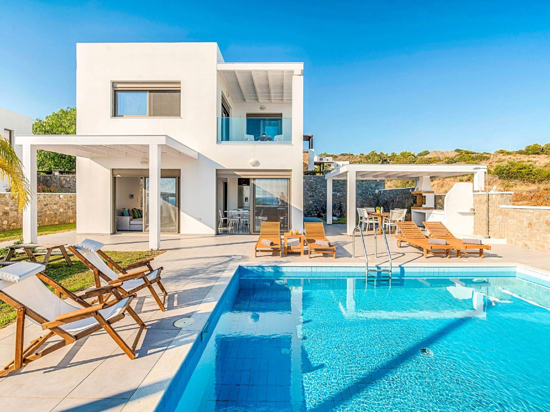 Η βίλα είναι μια ολοκαίνουργια κατασκευή και φιλοξενεί έως και 6 άτομα σε 3 ξεχωριστά υπνοδωμάτια, πλήρως κλιματιζόμενα με άνετα διπλά κρεβάτια. Στο ισόγειο, υπάρχει 1 υπνοδωμάτιο με ιδιωτικό μπάνιο και στον επάνω όροφο, υπάρχουν 2 υπνοδωμάτια με μπαλκόνια με θέα στον κήπο, την πισίνα και την εκπληκτική θέα στη θάλασσα. Η βίλα διαθέτει σαλόνι ενιαίας διαρρύθμισης με καθιστικό, τραπεζαρία, τηλεόραση επίπεδης οθόνης και Wi-Fi. Υπάρχει μια πλήρως εξοπλισμένη κουζίνα που περιλαμβάνει ψυγείο, ηλεκτρική κουζίνα, πλυντήριο πιάτων, ψυγείο κρασιού και μικροσυσκευές.