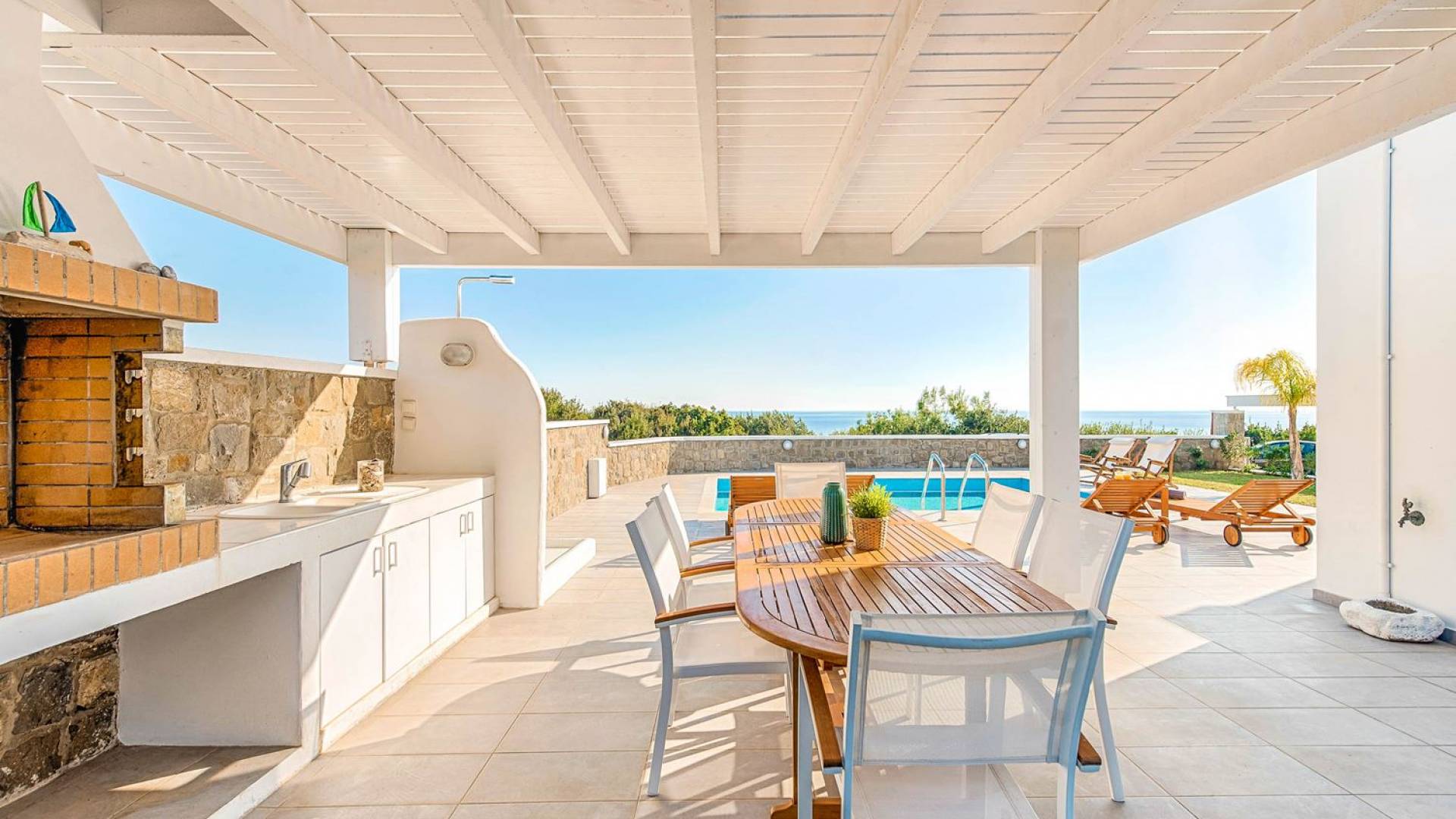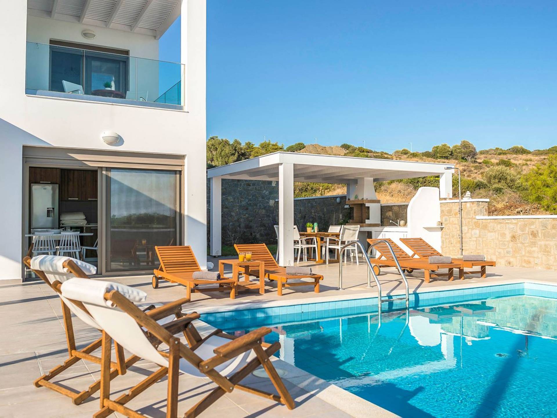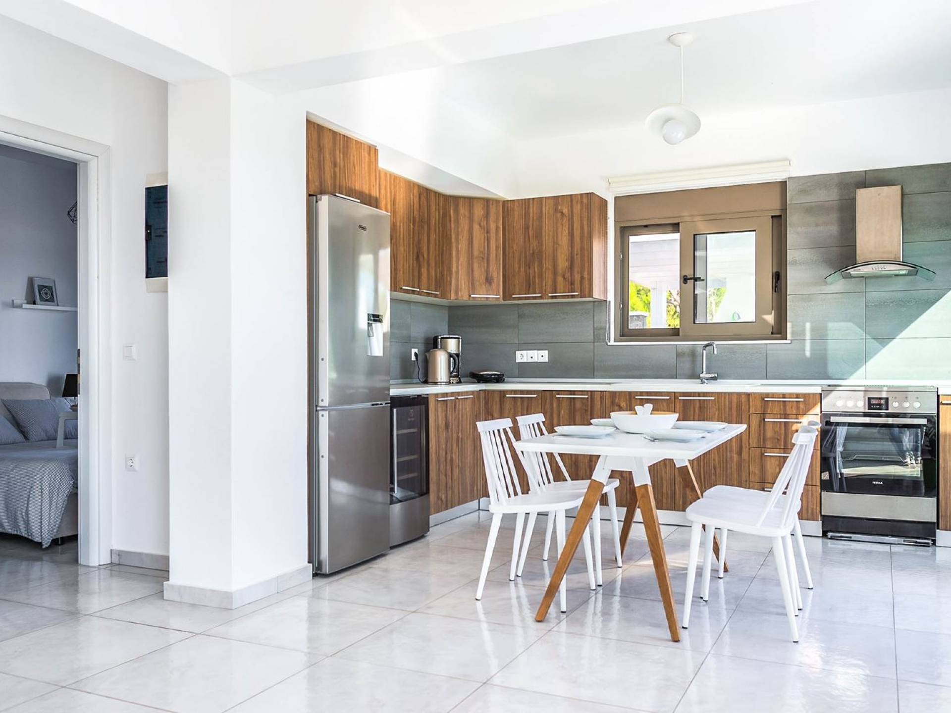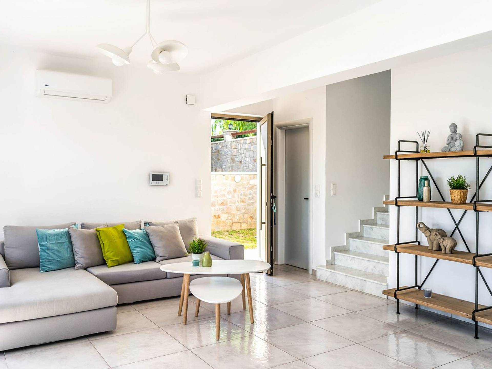 Η βίλα είναι μια ολοκαίνουργια κατασκευή και φιλοξενεί έως και 6 άτομα σε 3 ξεχωριστά υπνοδωμάτια, πλήρως κλιματιζόμενα με άνετα διπλά κρεβάτια. Στο ισόγειο, υπάρχει 1 υπνοδωμάτιο με ιδιωτικό μπάνιο και στον επάνω όροφο, υπάρχουν 2 υπνοδωμάτια με μπαλκόνια με θέα στον κήπο, την πισίνα και την εκπληκτική θέα στη θάλασσα. Η βίλα διαθέτει σαλόνι ενιαίας διαρρύθμισης με καθιστικό, τραπεζαρία, τηλεόραση επίπεδης οθόνης και Wi-Fi. Υπάρχει μια πλήρως εξοπλισμένη κουζίνα που περιλαμβάνει ψυγείο, ηλεκτρική κουζίνα, πλυντήριο πιάτων, ψυγείο κρασιού και μικροσυσκευές.