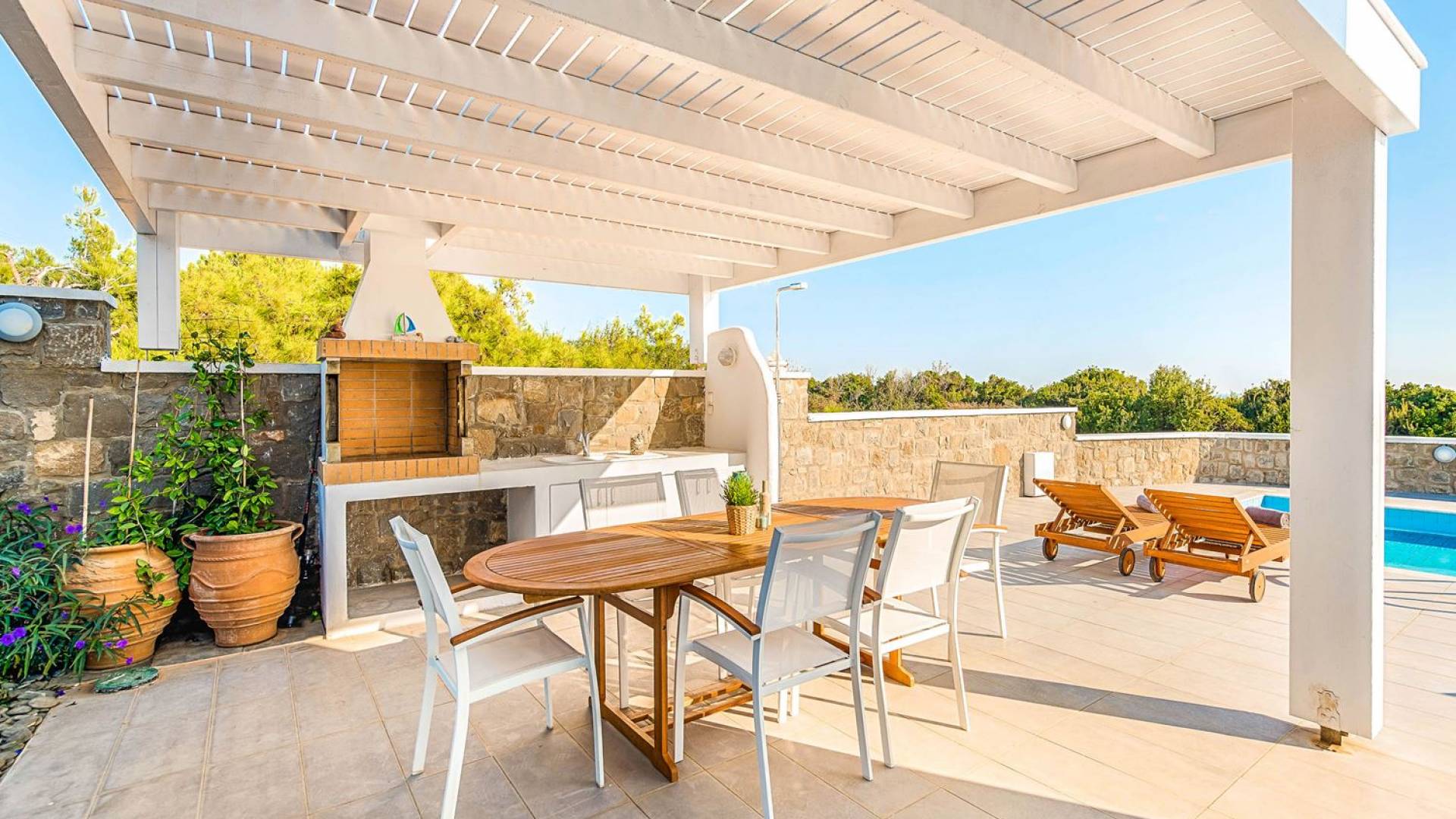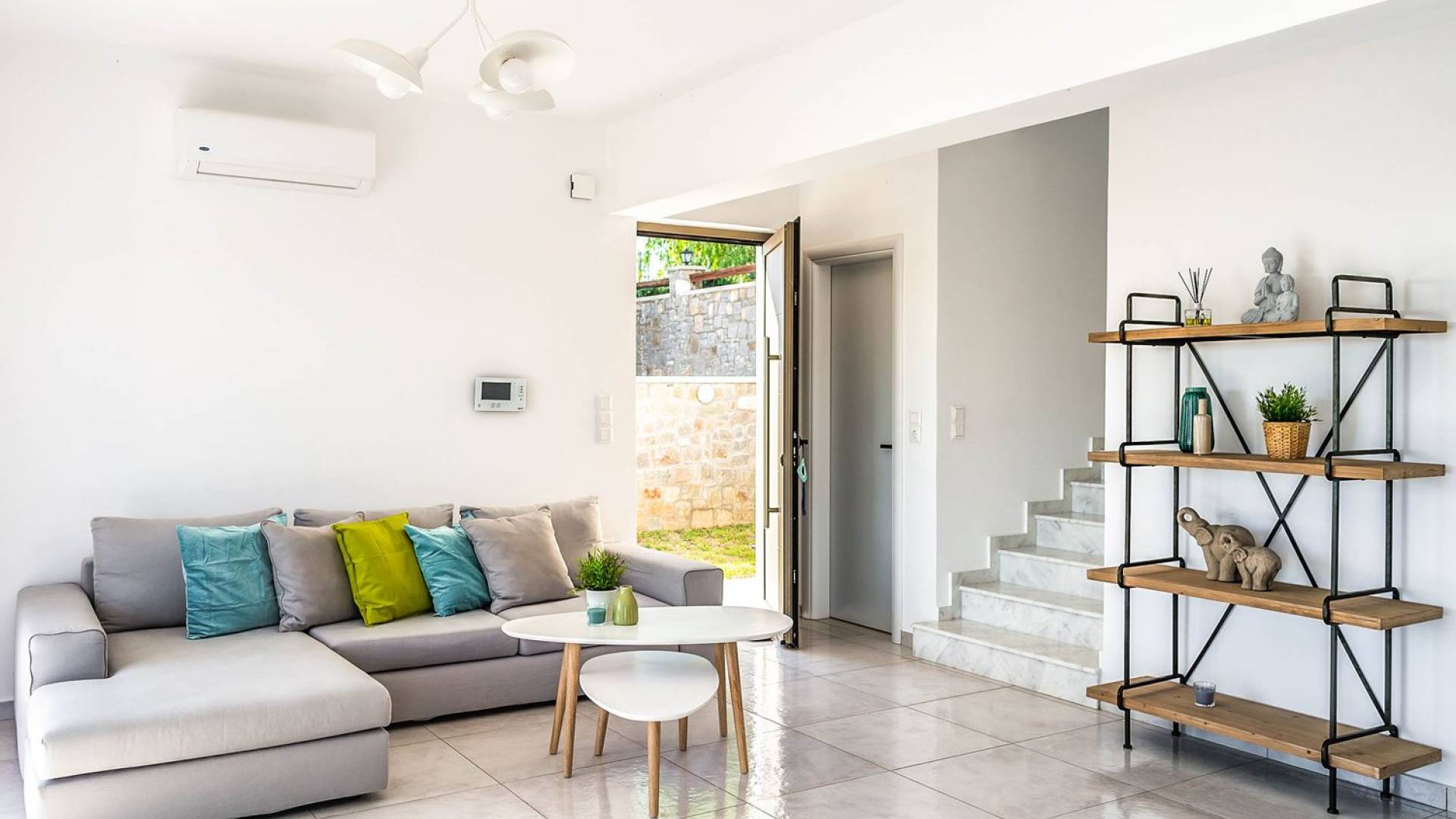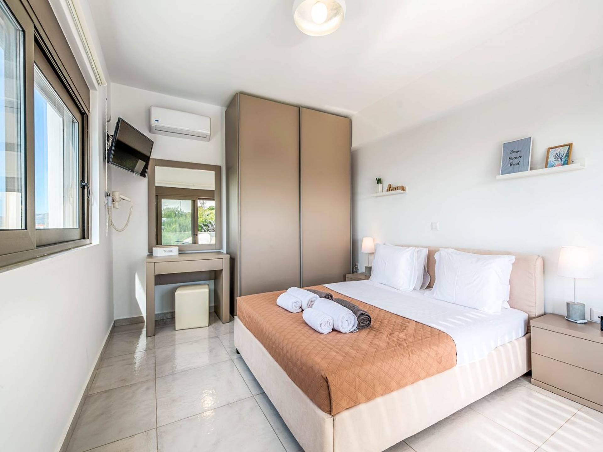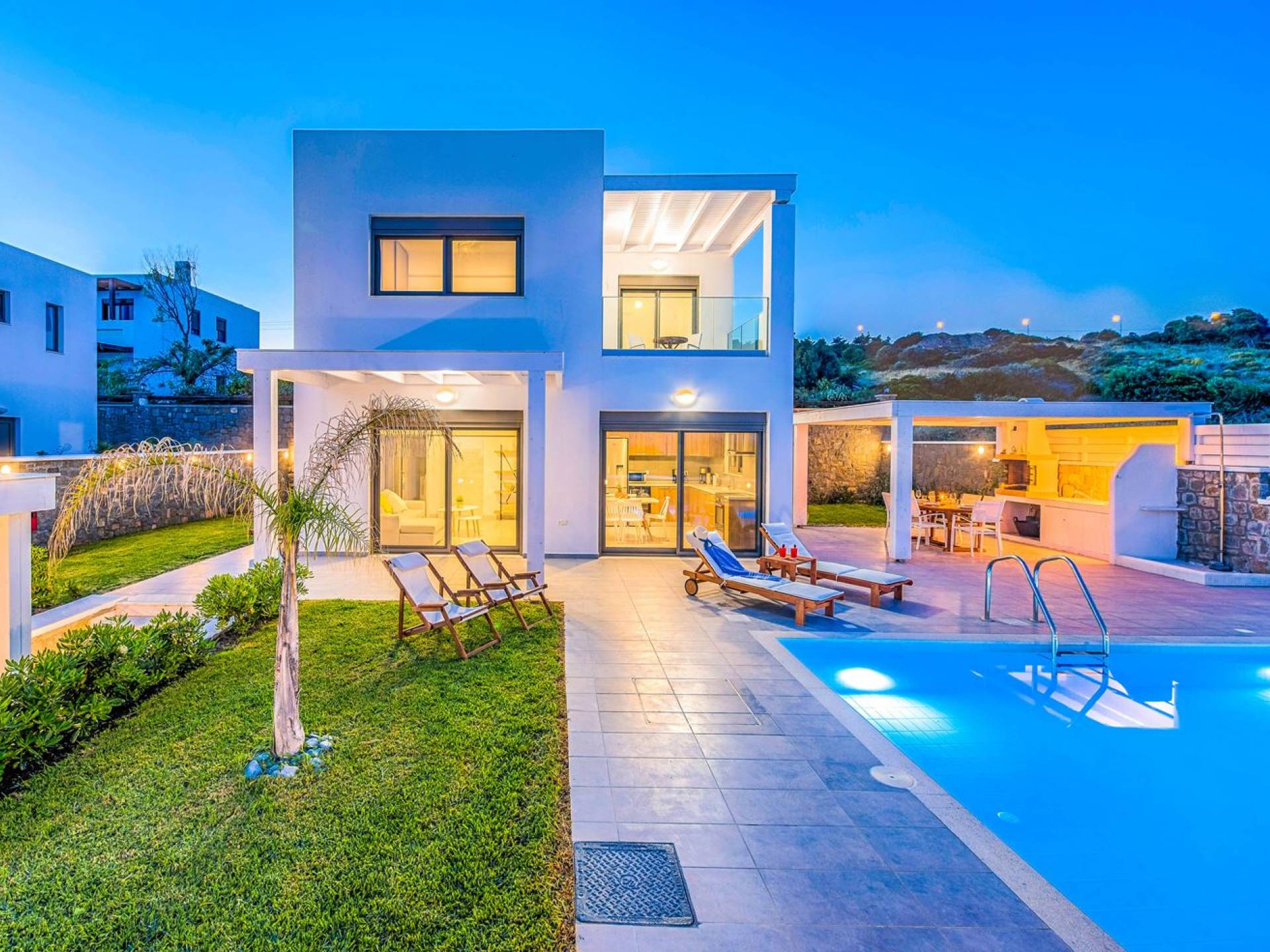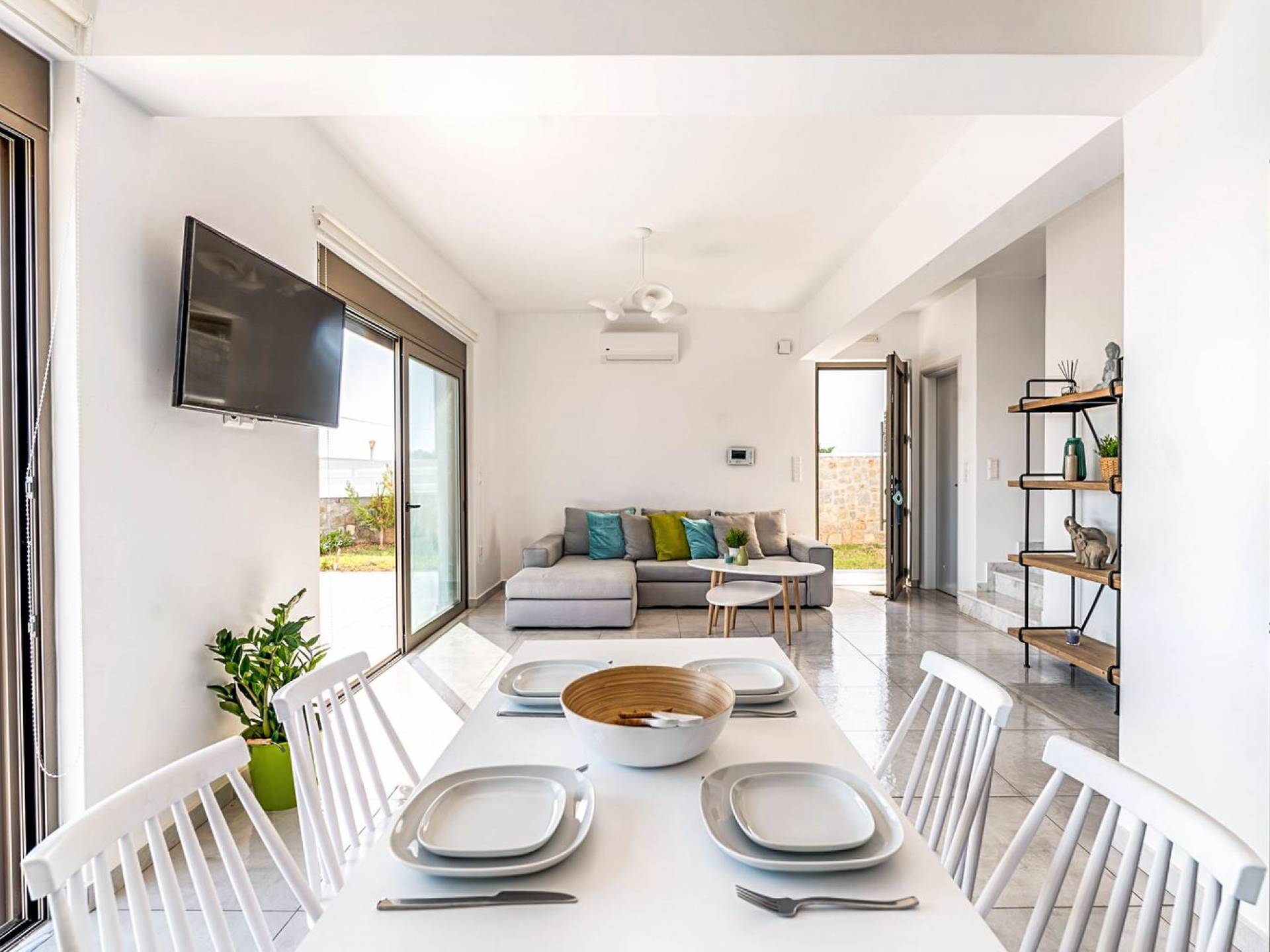 Η βίλα είναι μια ολοκαίνουργια κατασκευή και φιλοξενεί έως και 6 άτομα σε 3 ξεχωριστά υπνοδωμάτια, πλήρως κλιματιζόμενα με άνετα διπλά κρεβάτια. Στο ισόγειο, υπάρχει 1 υπνοδωμάτιο με ιδιωτικό μπάνιο και στον επάνω όροφο, υπάρχουν 2 υπνοδωμάτια με μπαλκόνια με θέα στον κήπο, την πισίνα και την εκπληκτική θέα στη θάλασσα. Η βίλα διαθέτει σαλόνι ενιαίας διαρρύθμισης με καθιστικό, τραπεζαρία, τηλεόραση επίπεδης οθόνης και Wi-Fi. Υπάρχει μια πλήρως εξοπλισμένη κουζίνα που περιλαμβάνει ψυγείο, ηλεκτρική κουζίνα, πλυντήριο πιάτων, ψυγείο κρασιού και μικροσυσκευές.
