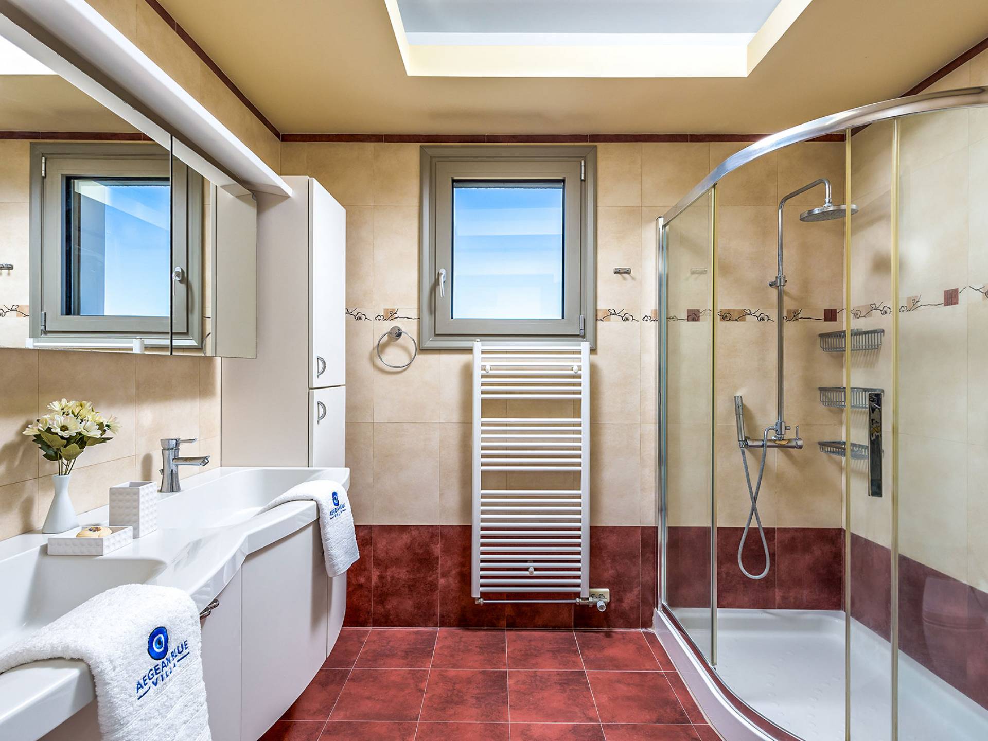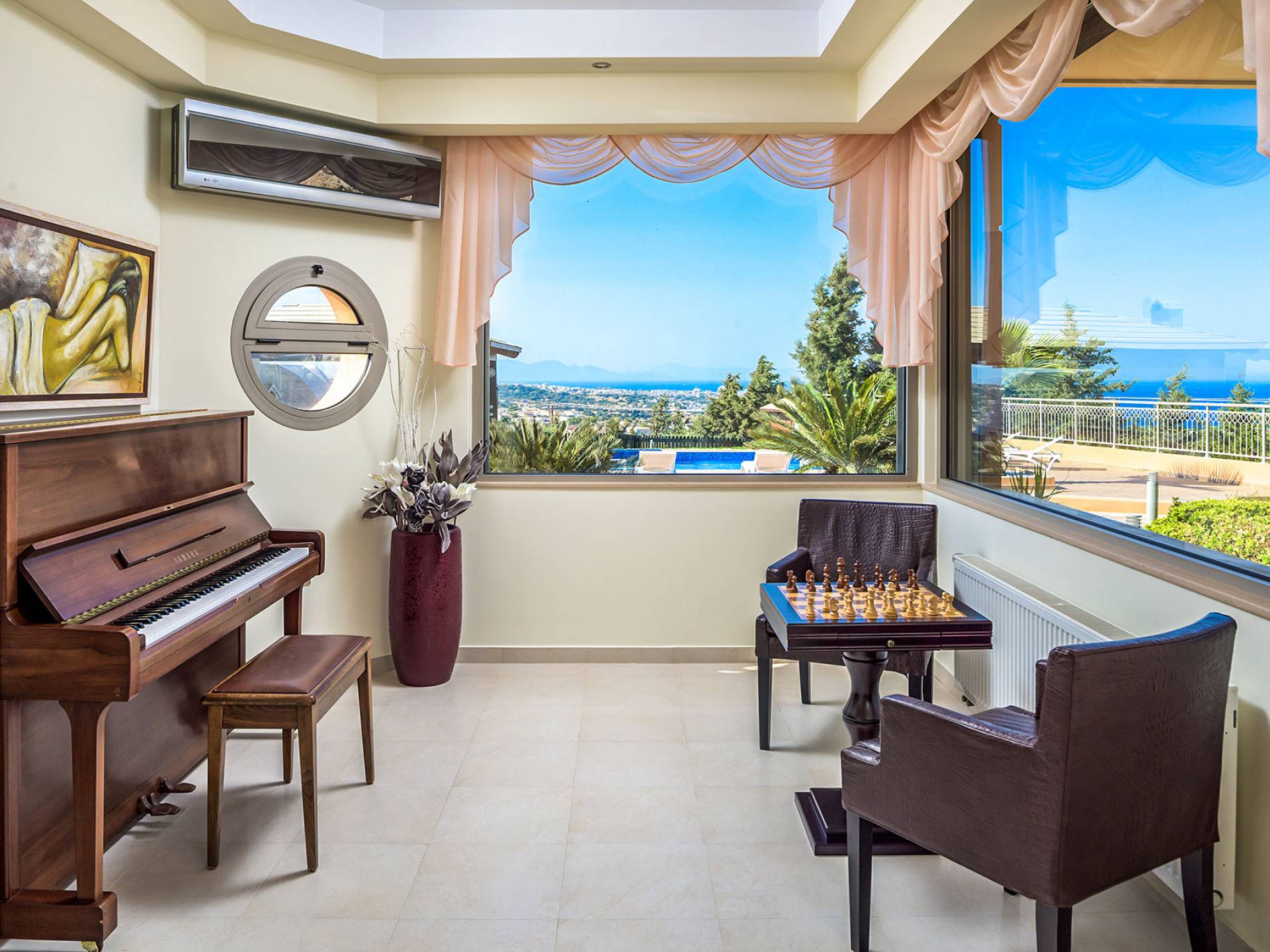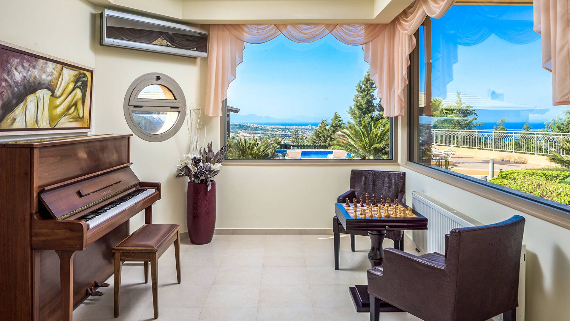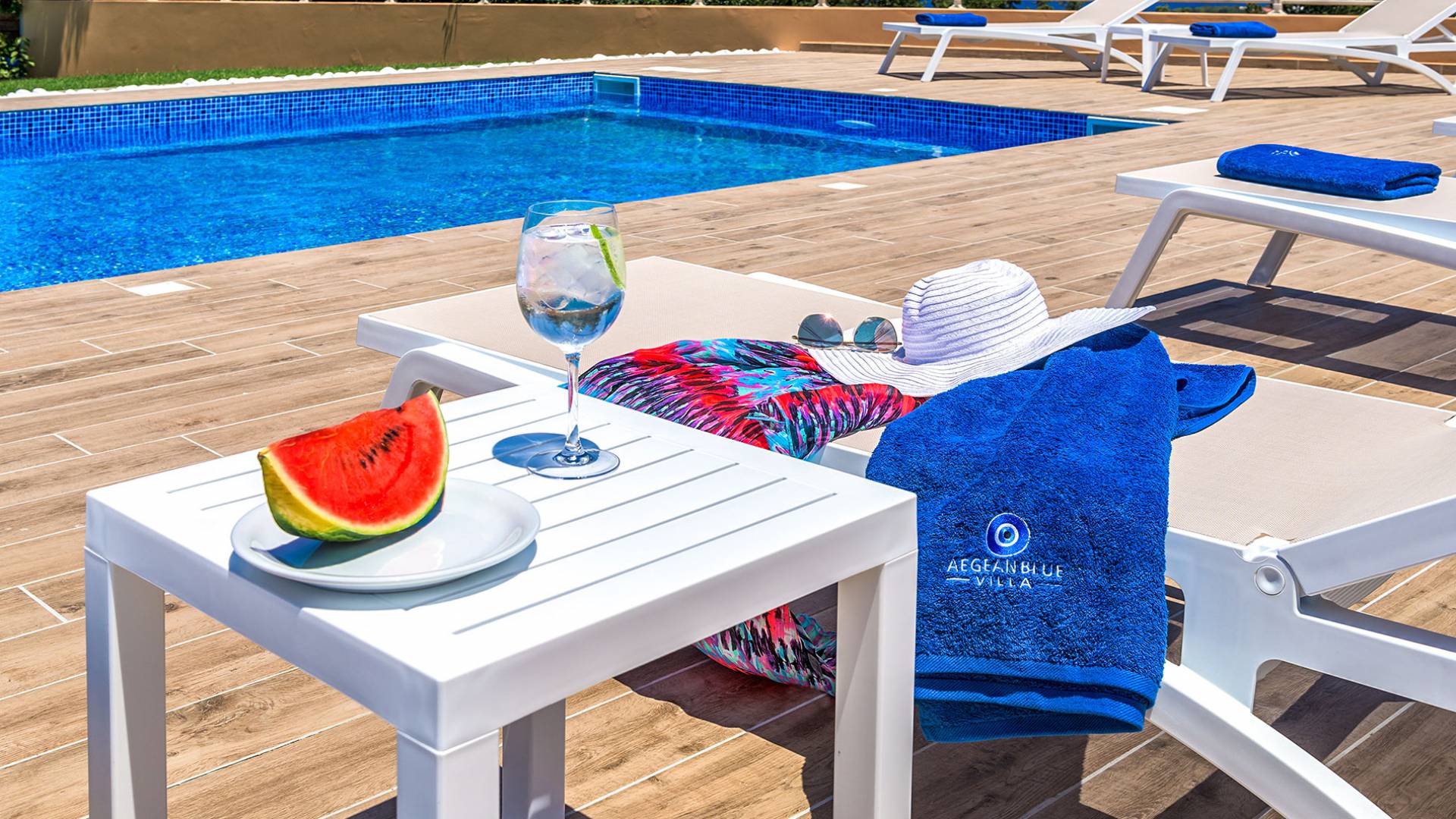 Η Aegean Blue Villa είναι μια κατοικία 300 τ.μ., χωρισμένη σε τρία επίπεδα. Κάθε επίπεδο είναι προσβάσιμο τόσο με τη χρήση του ανελκυστήρα όσο και με τις μαρμάρινες σκάλες. Υπάρχει ένα υπέροχο δωμάτιο στο ισόγειο με θέα στον χώρο της πισίνας, όπου οι επισκέπτες μπορούν να απολαύσουν τη μελωδία του κλασικού πιάνου, καθώς και τη διασκέδαση στο τραπέζι του σκακιού. Τα πάντα της Aegean Blue Villa είναι τελειότητα. Η επίπλωση είναι πολυτελής και μοντέρνα και η βίλα είναι πλήρως εξοπλισμένη με τα υψηλά πρότυπα που αναμένονται για ένα σπίτι υψηλής ποιότητας που προσφέρει διακοπές με δυνατότητα προετοιμασίας γευμάτων.