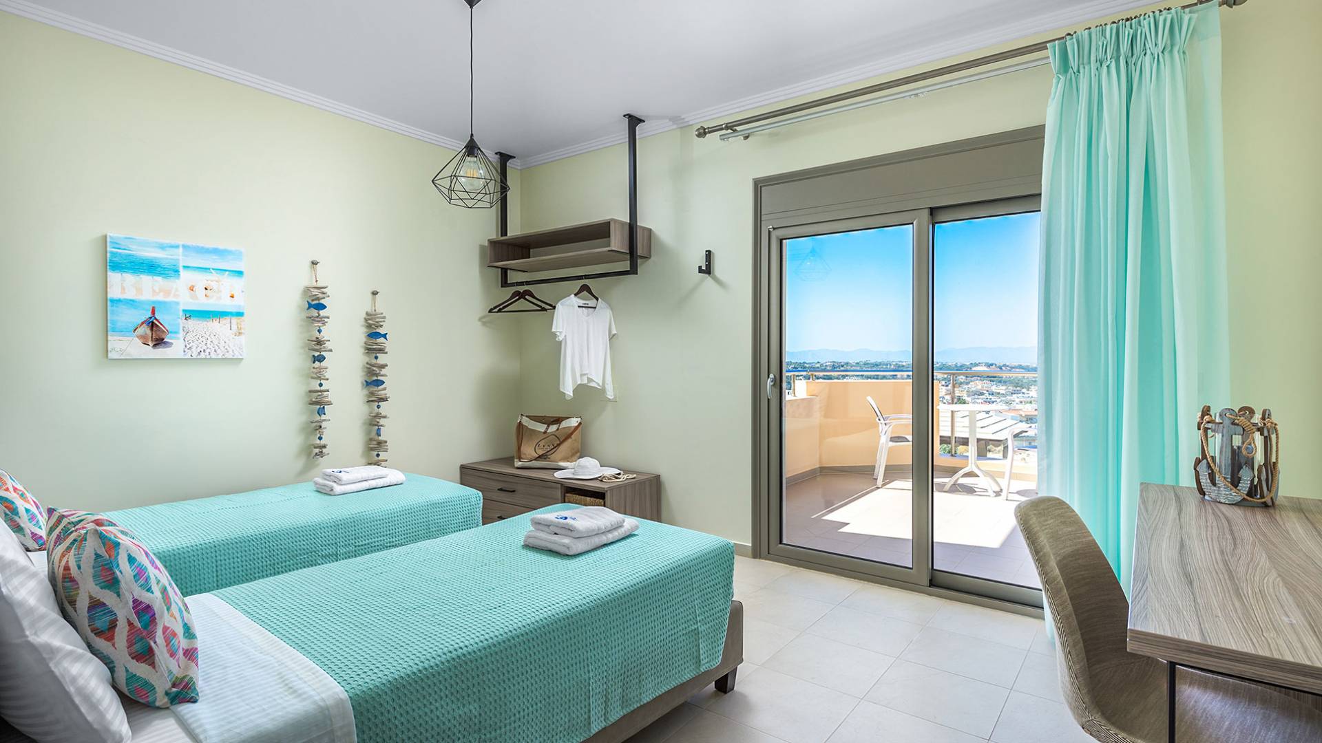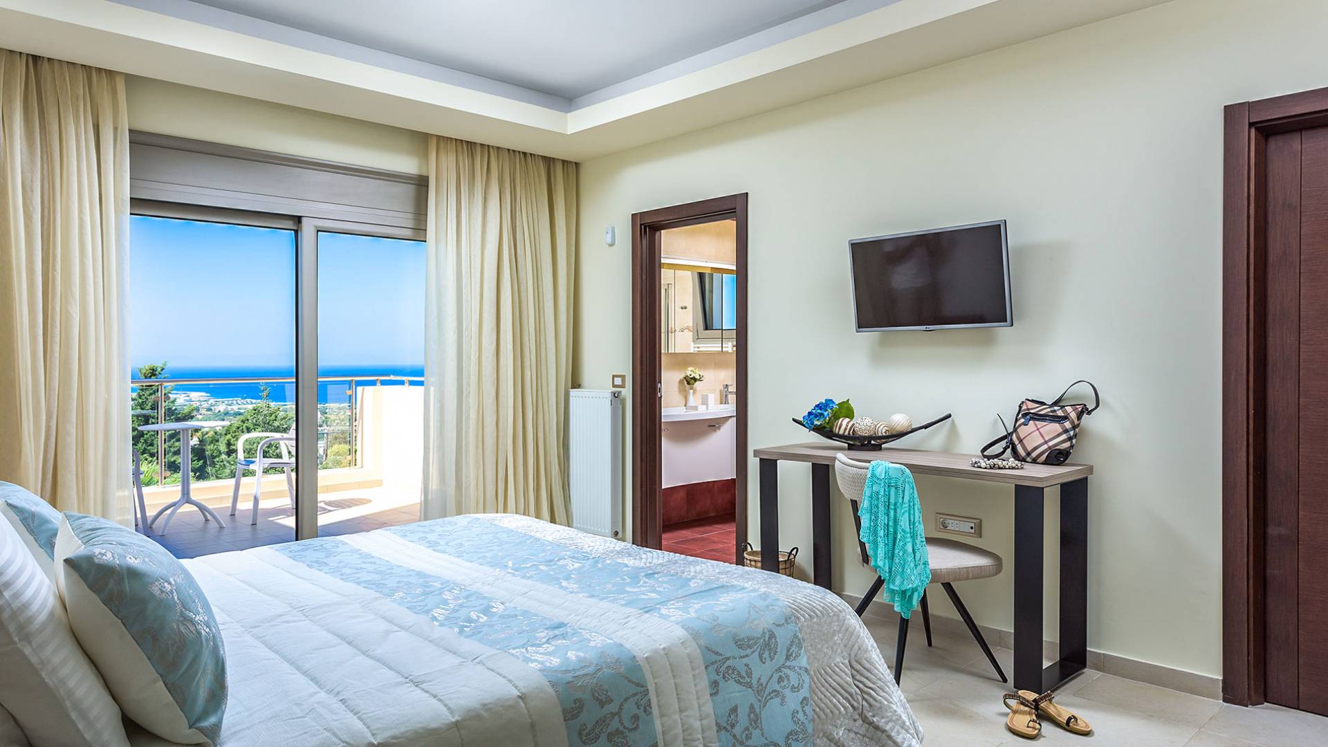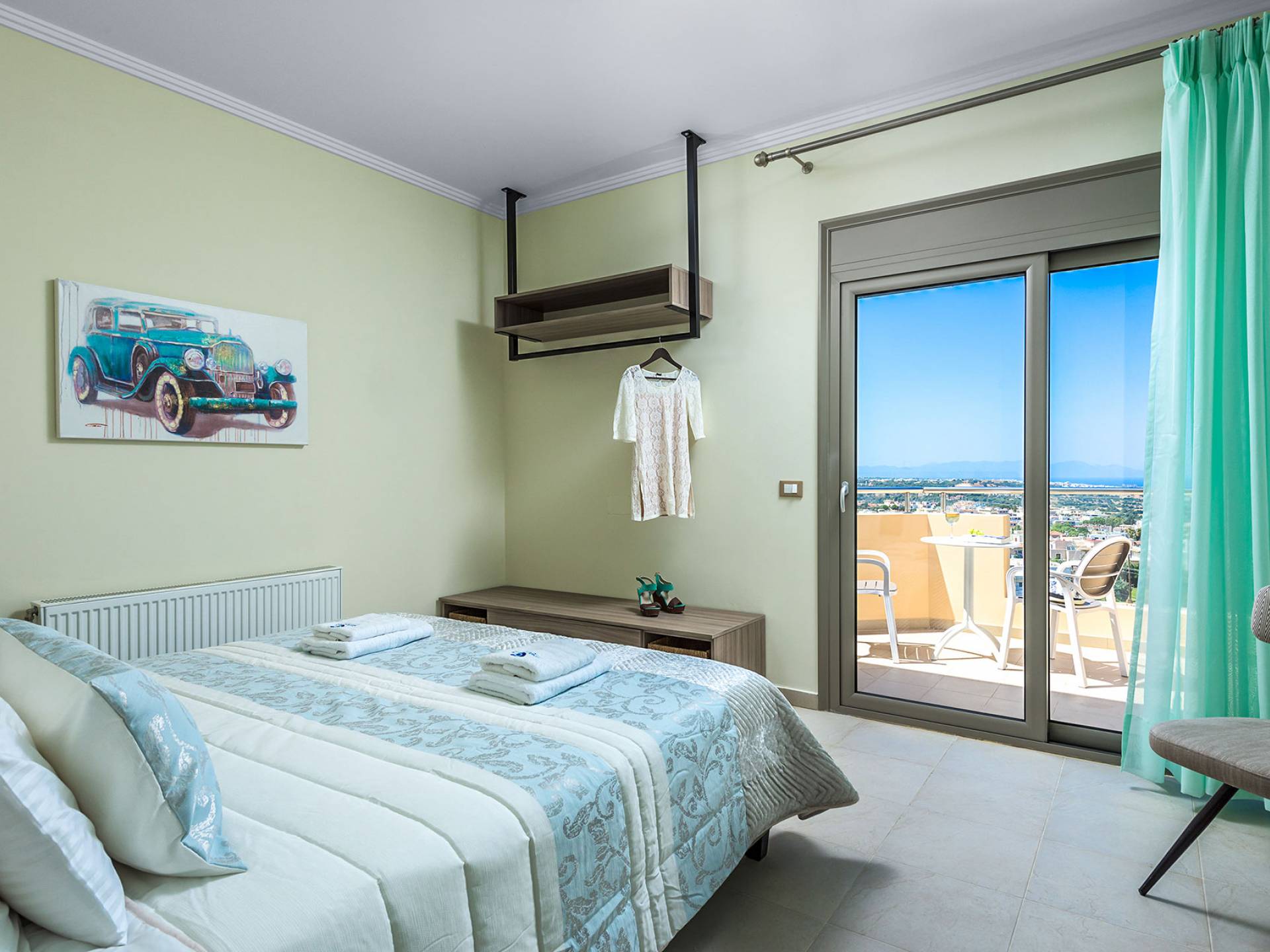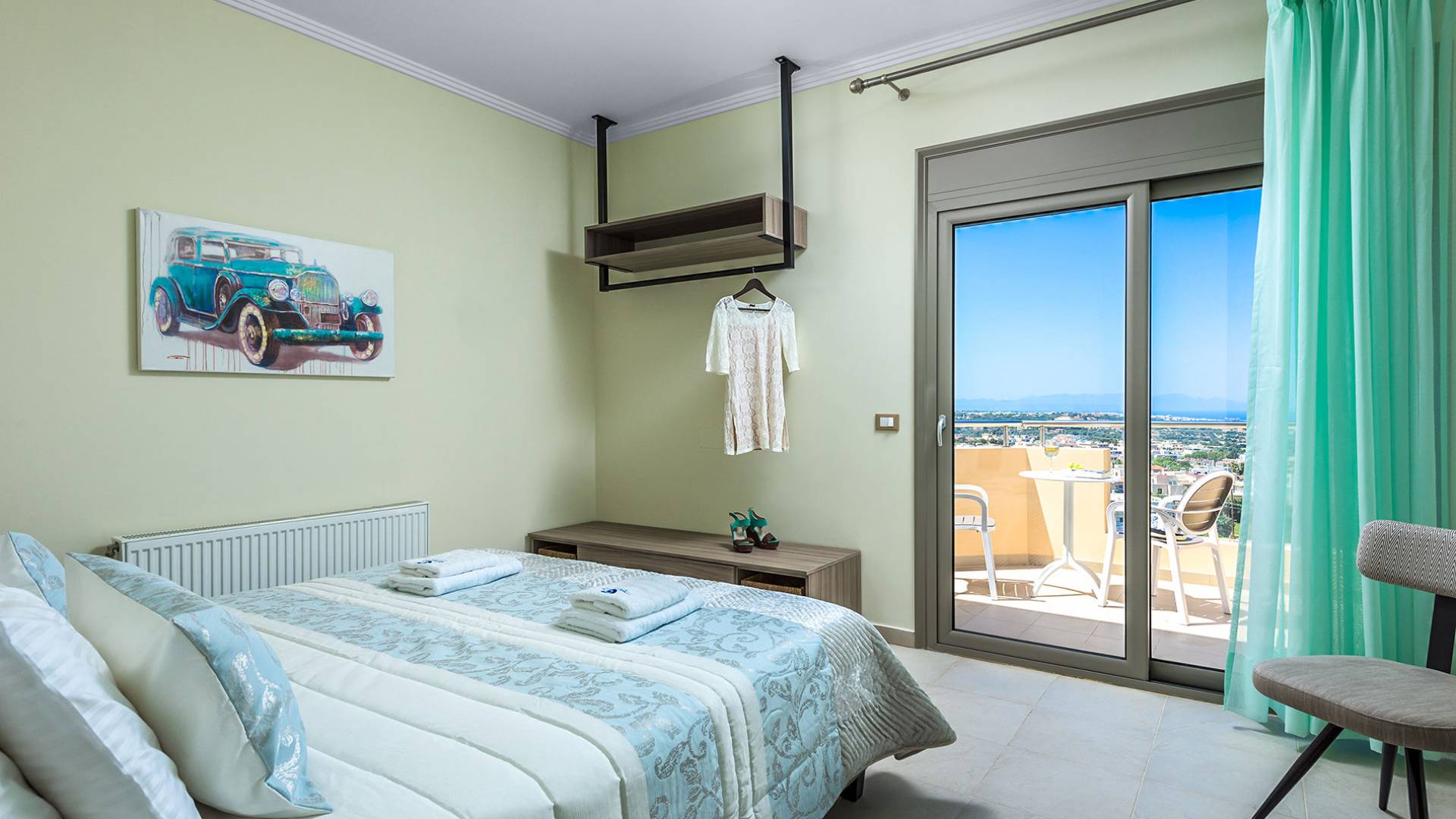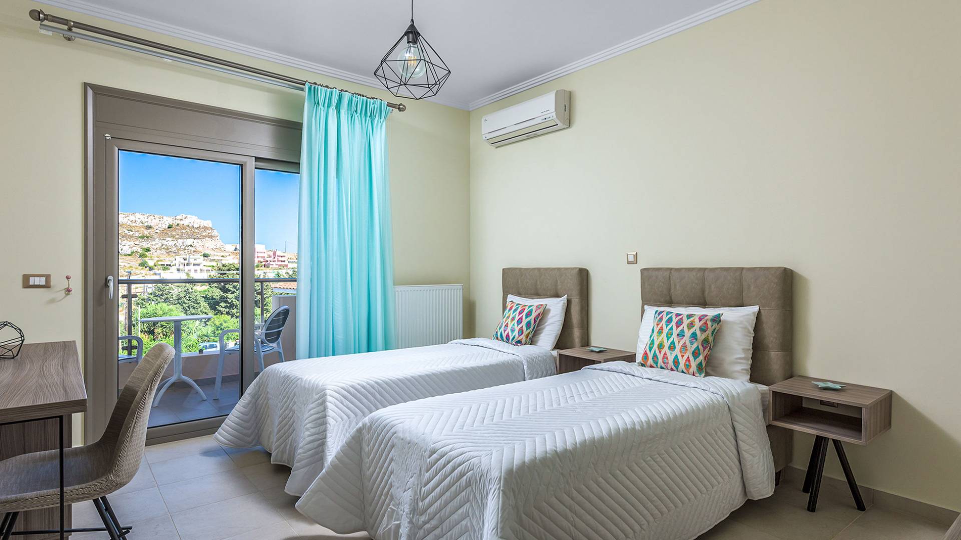 Η Aegean Blue Villa φιλοξενεί 8 άτομα και αποτελείται από 4 ευρύχωρα υπνοδωμάτια, στο πρώτο και στο δεύτερο επίπεδο, όλα με πολυτελείς εγκαταστάσεις και κλιματισμό, συμπεριλαμβανομένων ορθοπεδικών οικολογικών στρωμάτων και επιλεγμένων μαξιλαριών. Κάθε δωμάτιο διαθέτει ιδιωτική βεράντα με πανοραμική θέα στους γύρω λόφους, την πόλη και το λιμάνι, καθώς και στο Αιγαίο Πέλαγος. Προσφέρονται λευκά είδη και πετσέτες για την εξυπηρέτησή σας.