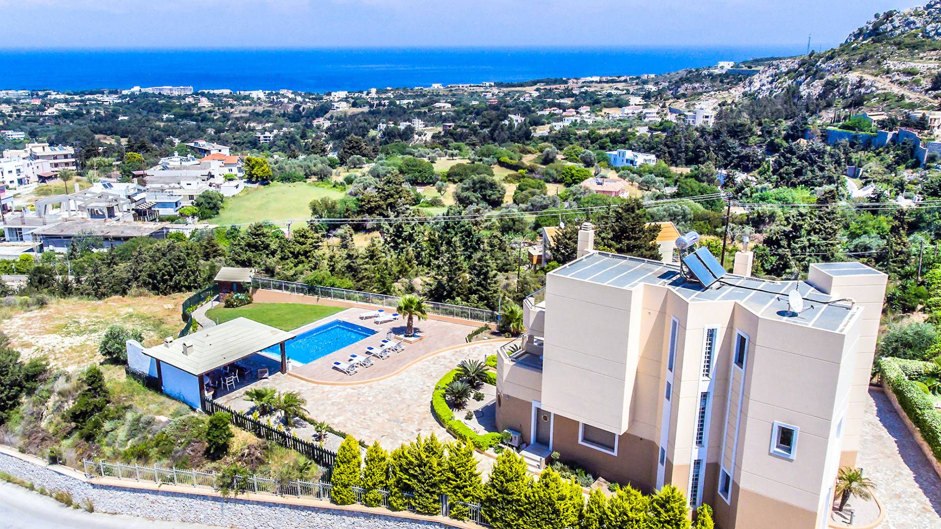 Το Aegean Blue Villa Rhodes είναι μια πολυτελής βίλα που ενοικιάζεται με 4 υπνοδωμάτια και ιδιωτική πισίνα. Το Aegean Blue, που βρίσκεται στην Κοσκινού, ένα παραδοσιακό χωριό, στα προάστια της πόλης της Ρόδου είναι ένα παράθυρο προς το Αιγαίο Πέλαγος. Αυτή η εξοχική κατοικία έχει κατασκευαστεί με τα υψηλότερα πρότυπα ασφαλείας και οι προδιαγραφές έχει σχεδιαστεί για να αξιοποιεί στο έπακρο το όμορφο μεσογειακό φως. Αυτή η πολυτελής βίλα διακρίνεται για την προνομιακή της θέση, αλλά αρκετά ψηλή για να επωφεληθεί από το αεράκι του βουνού