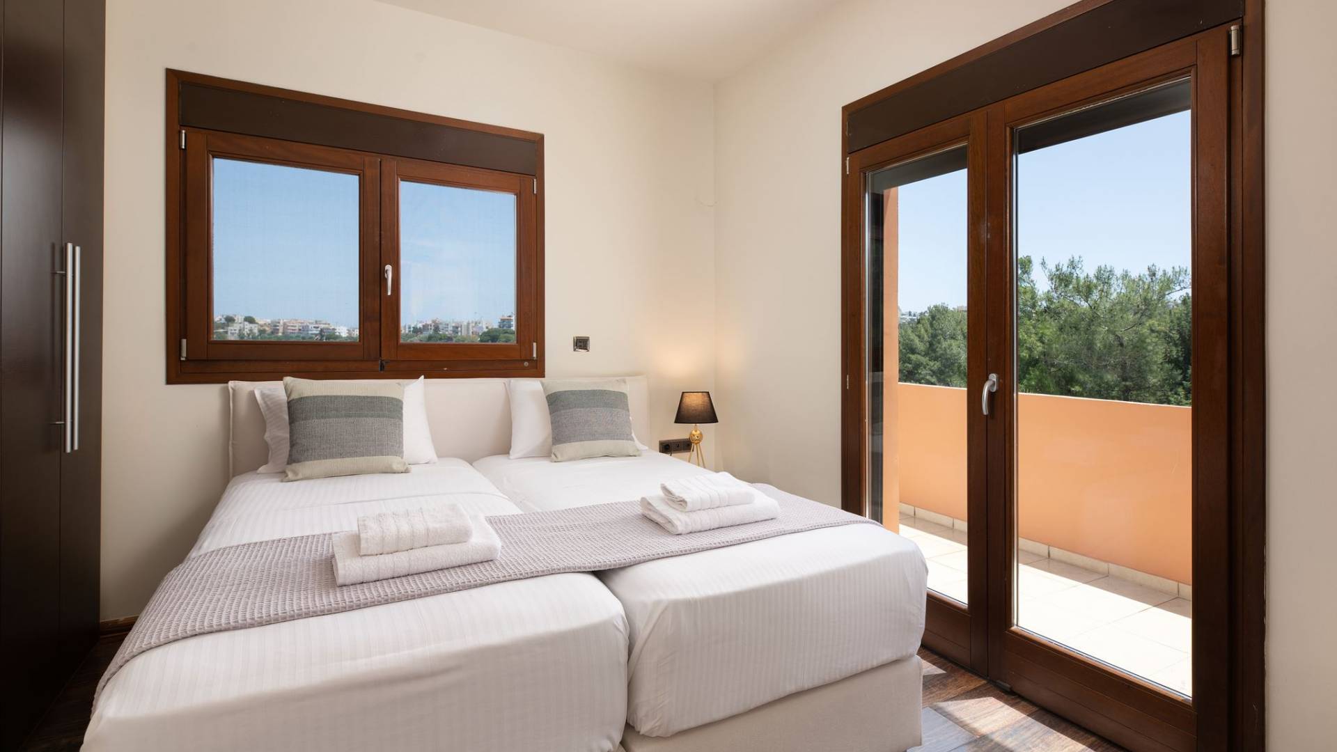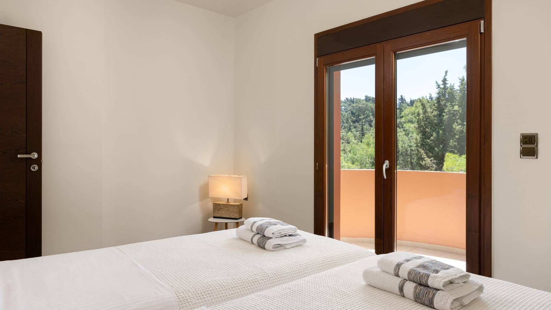 Τα υπνοδωμάτια είναι προσβάσιμα μέσω μιας χειροποίητης σκάλας από το σαλόνι. Υπάρχει ένα διπλό υπνοδωμάτιο με ντους ντους και ντουλάπα, καθώς και δύο επιπλέον διπλά υπνοδωμάτια που μοιράζονται ένα ξεχωριστό μπάνιο με μπανιέρα. Όλα τα υπνοδωμάτια προσφέρουν εκπληκτική θέα στην ύπαιθρο και είναι προσεκτικά επιπλωμένα.